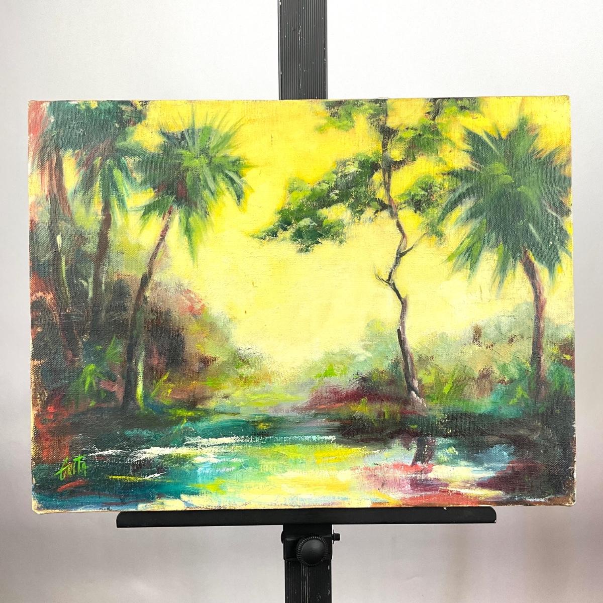 142 Original Signed Guita Oil on Canvas Jungle Landscape