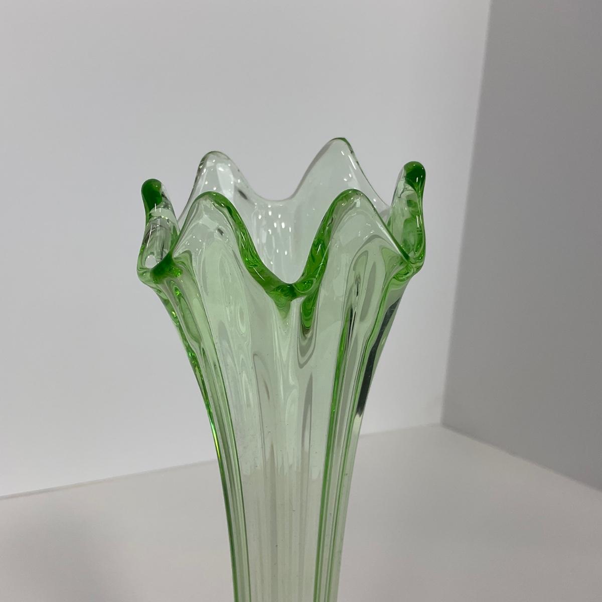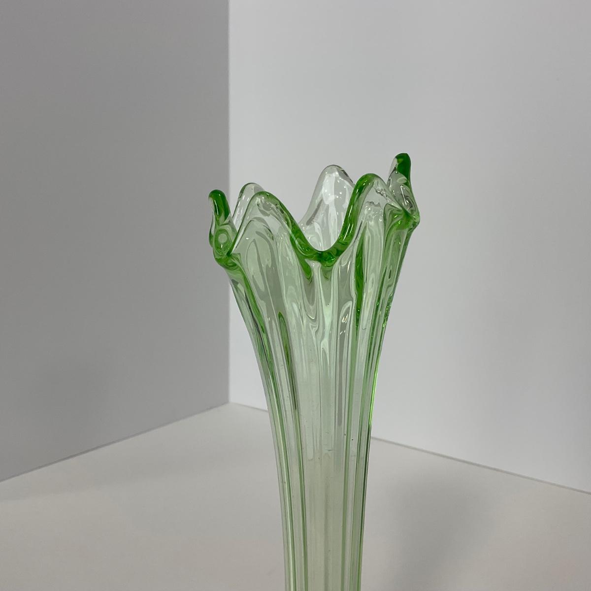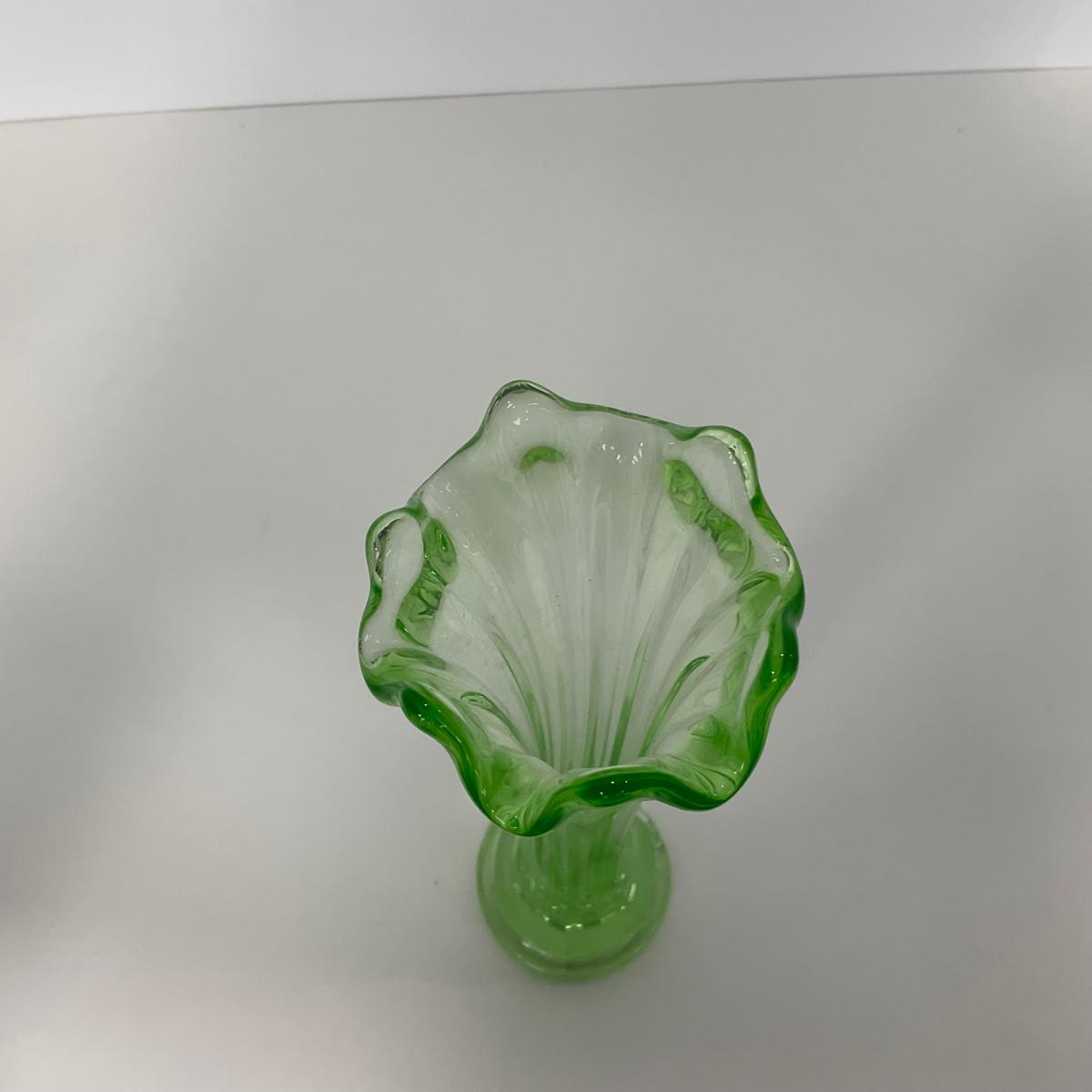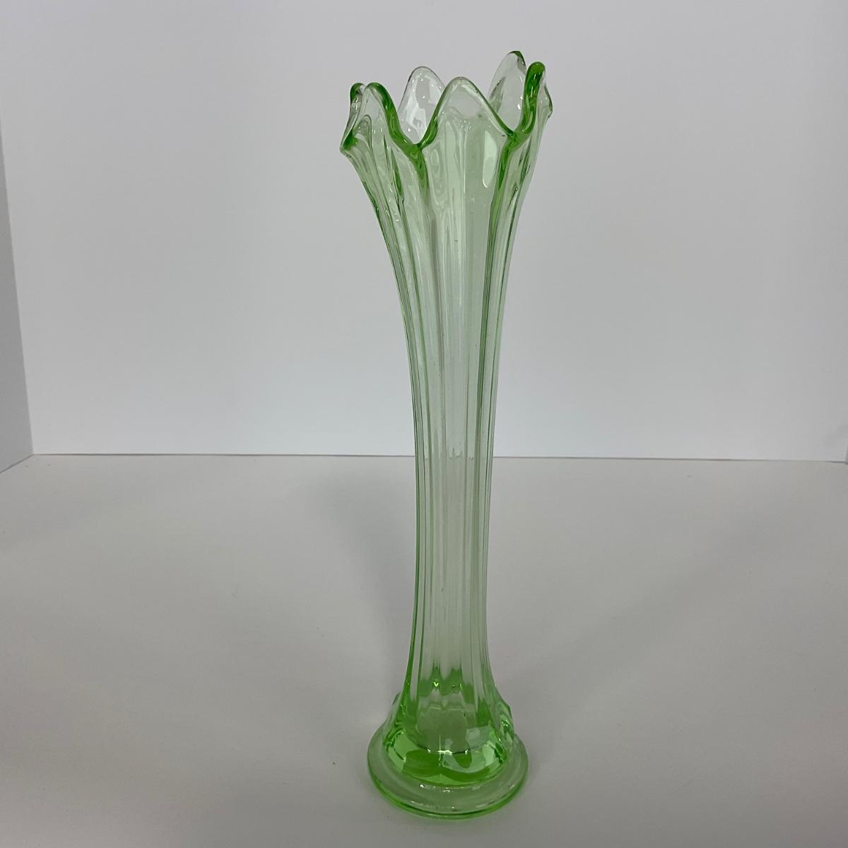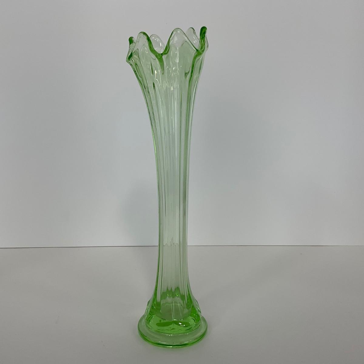 -142- URANIUM | Green Mid Century Stretch Vase