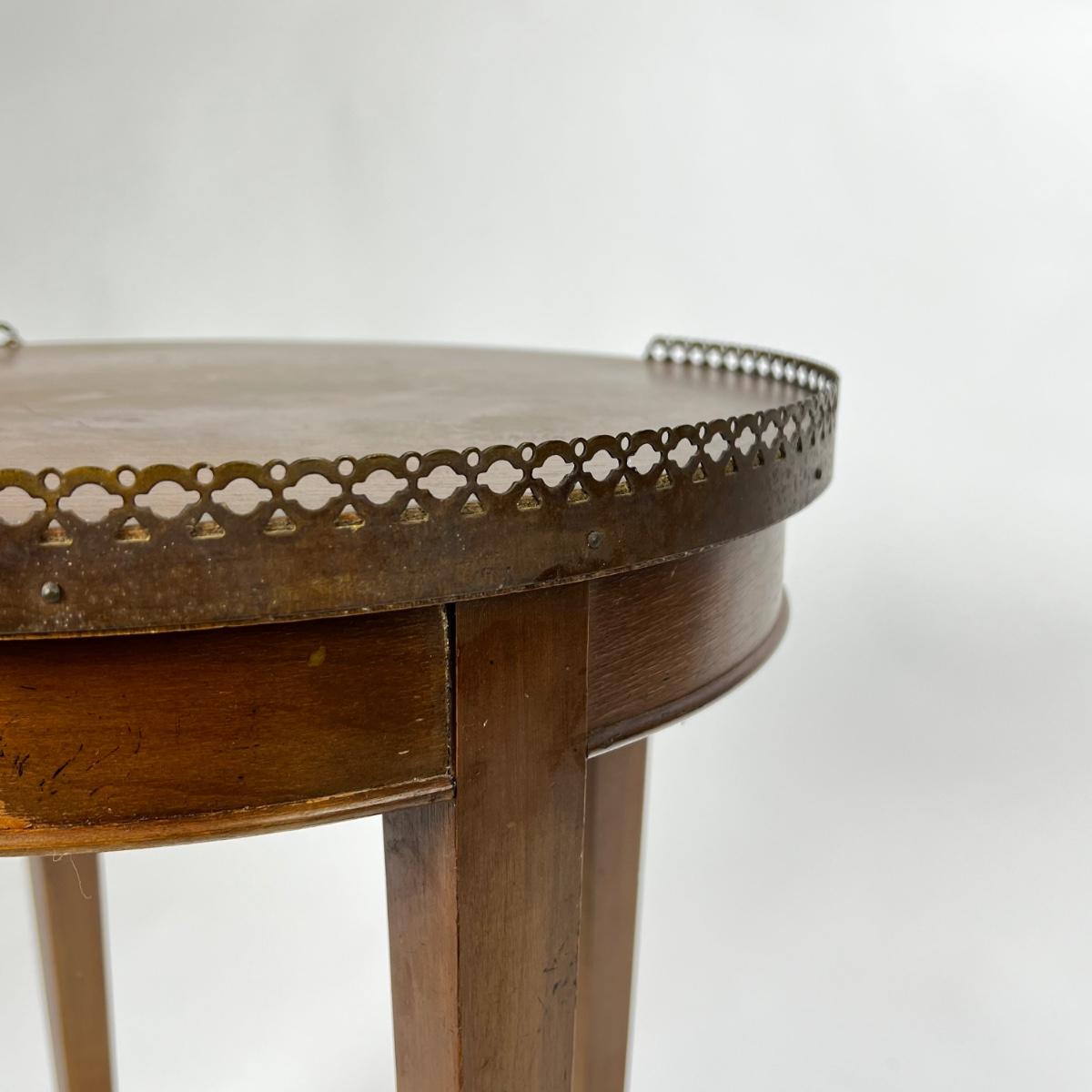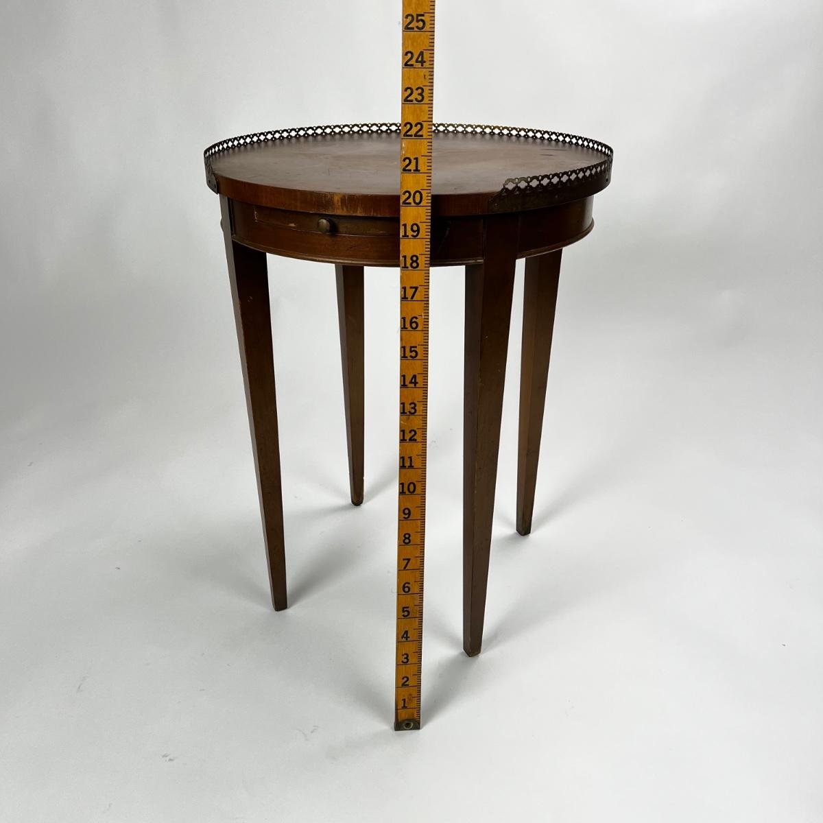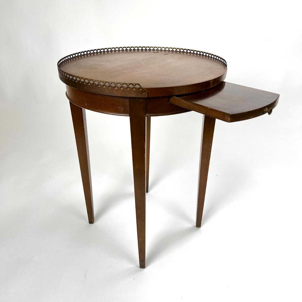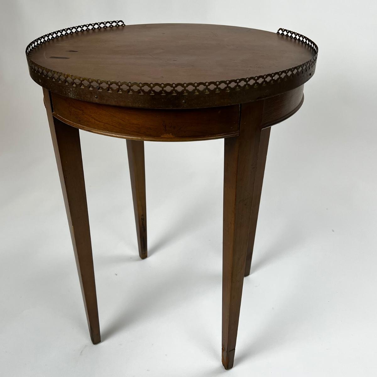 Antique Round Galley Top End Table. Table has one pull out shelf