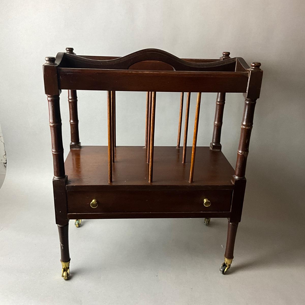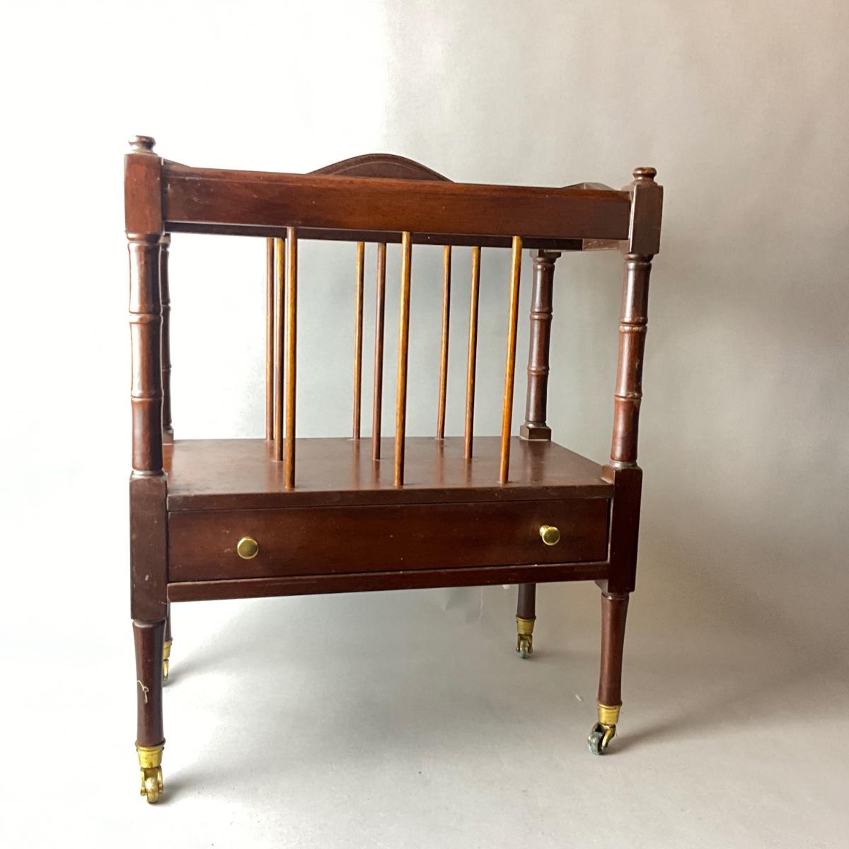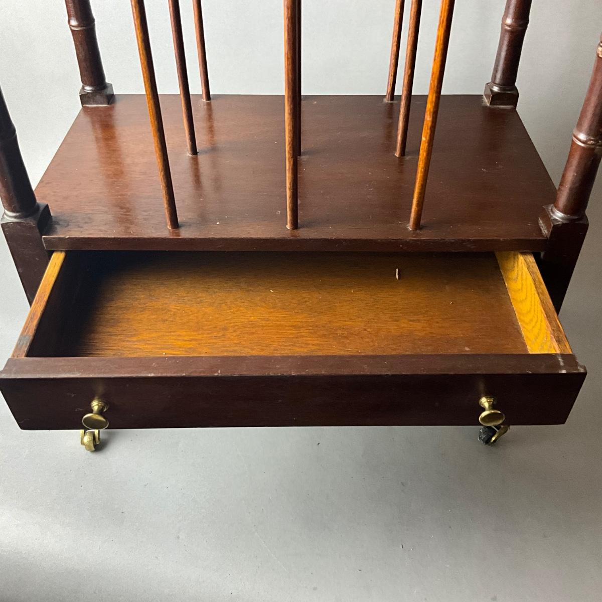 1429 Mahogany Single Drawer Canterbury on Wheels