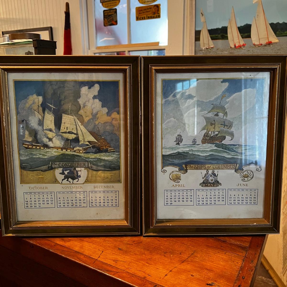 1429 Pair of Vintage Calendar Nautical Framed Prints