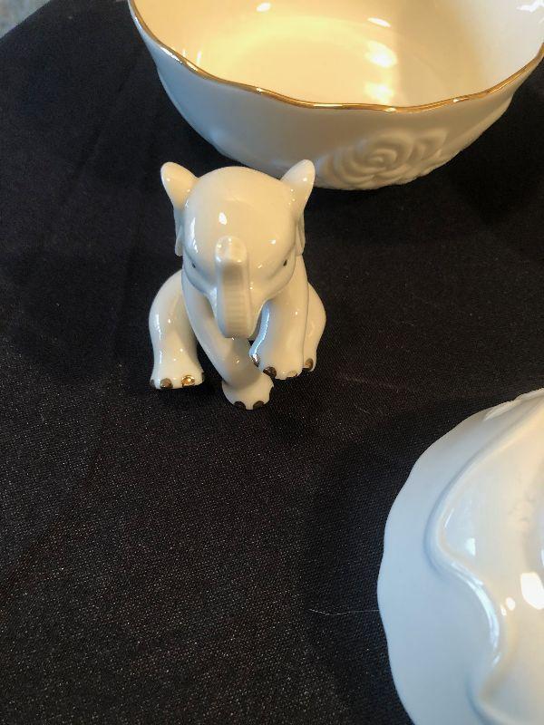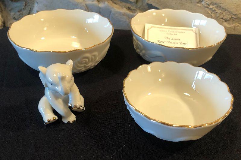 3 Rose Bowls Plus a small elephant 24 karat Trim
