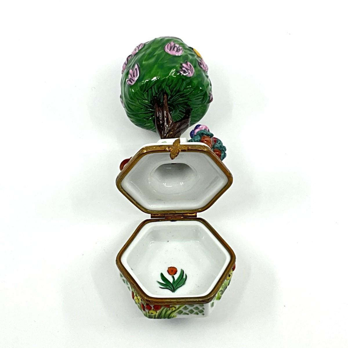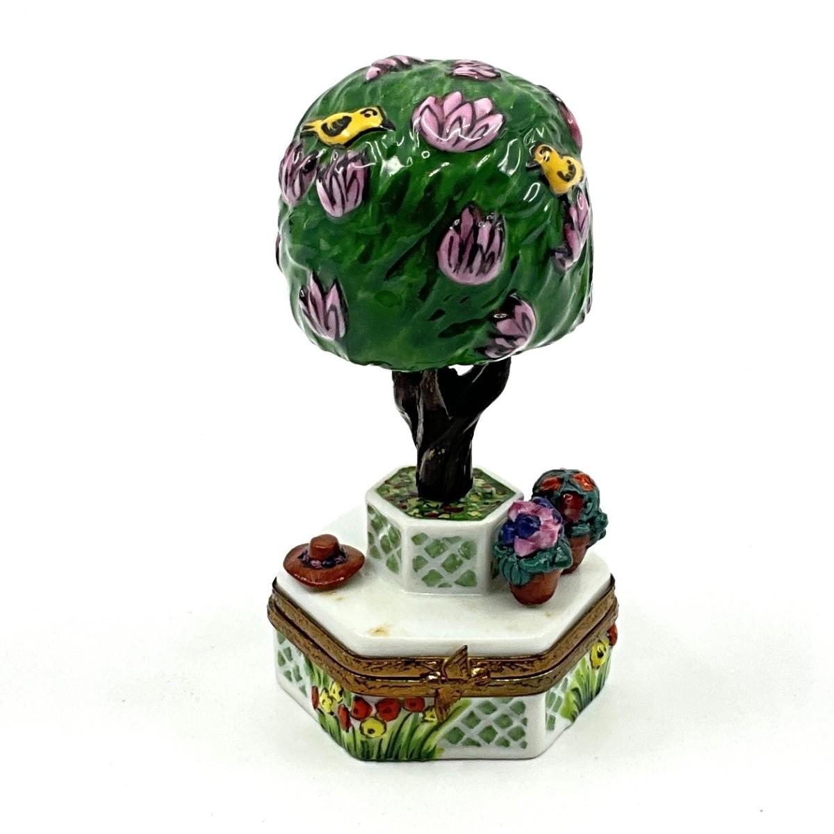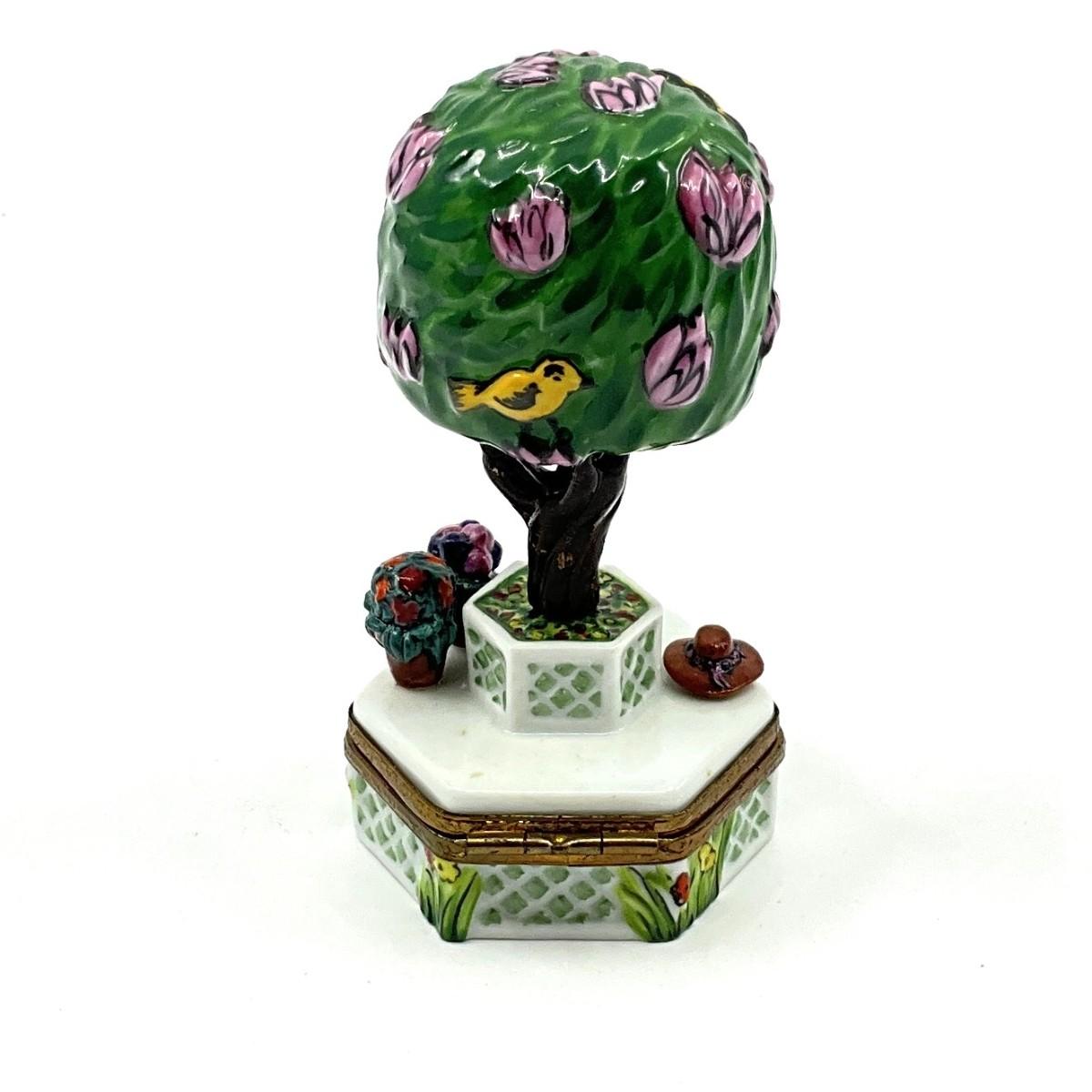 143 Blue Barron Limoges France Deint Main V.F. Tree with Flowers and Birds Porcelain Box