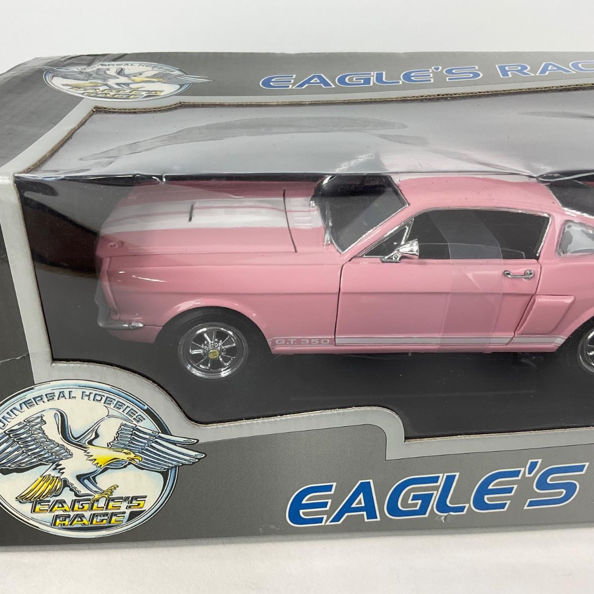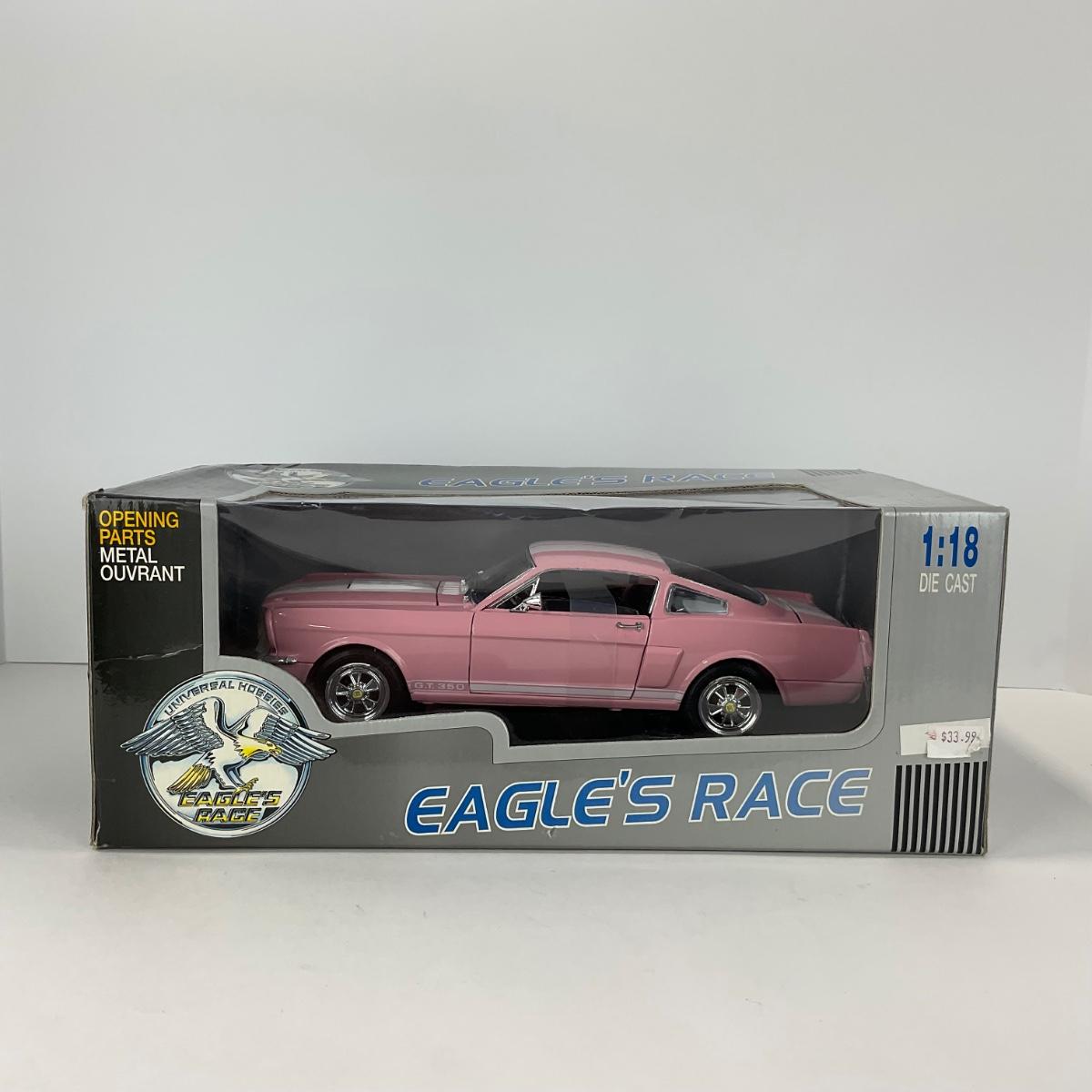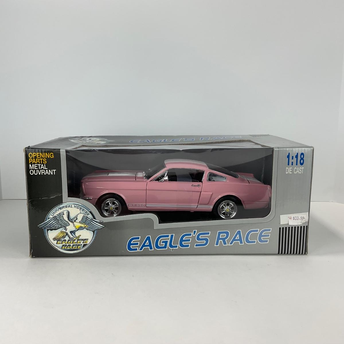 One vintage universal hobbies eagles race 1966 ford mustang fastback pink car in box, 1:18 scale. Box is 7 inches by 13 inches. Please see photos for details and condition. ::: Shipping is available on this lot. If you require shipping you must let us know at the close of the auction. We will coordinate with you after the item has been won. Shipping fees will include insurance up to or exceeding the value of all items being mailed. If you have any questions regarding this lot please contact the auctioneer either via this website, by direct email or by phone. PICK UP TIMES and other important information can be found in the TERMS and DESCRIPTION of the auction. Please take a look for pertinent information. Thanks!