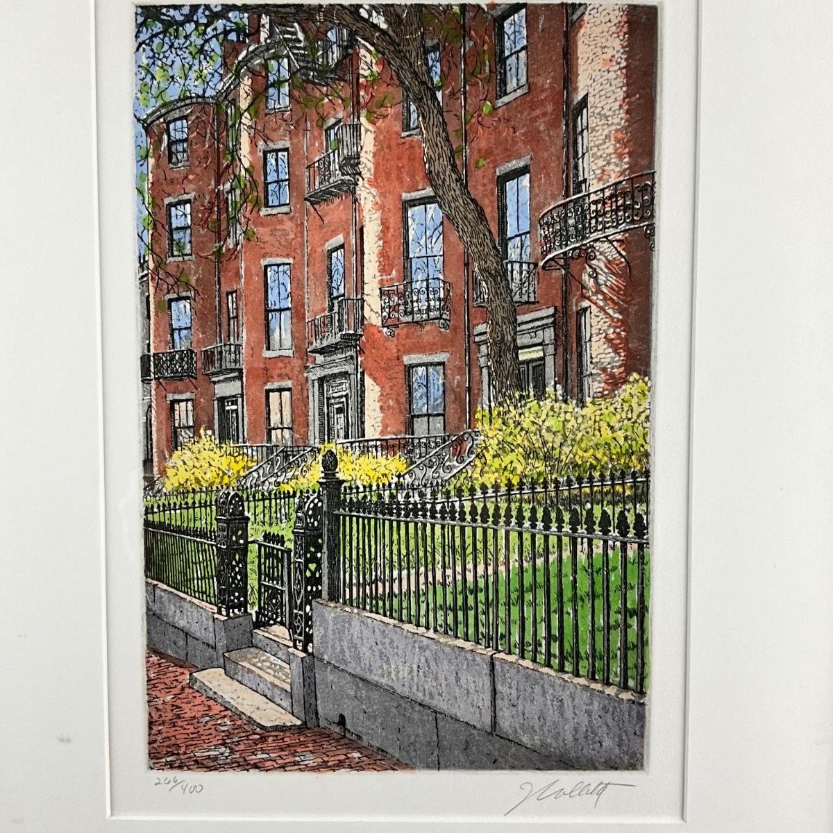 045 City Scene With Yellow Forsythia Signed and Numbered Engraving by John Collett