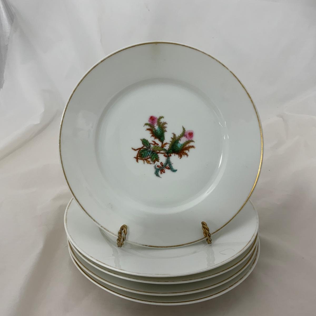 Five beautiful Haviland Rose Plates, circa 1870. All in exceptional condition, no cracks or chips that I could find. Please see photos for details and condition. ::: Shipping is NOT available on this lot. If you have any questions regarding this lot please contact the auctioneer either via this website, by direct email or by phone. PICK UP TIMES and other important information can be found in the TERMS and DESCRIPTION of the auction. Please take a look for pertinent information. Thanks!