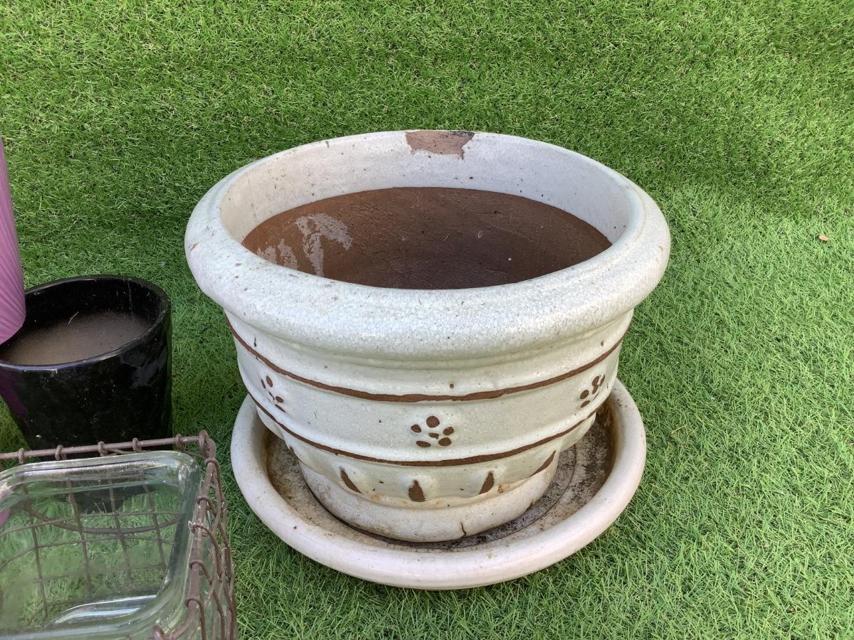 White pot measures 9" high x 12" diameter