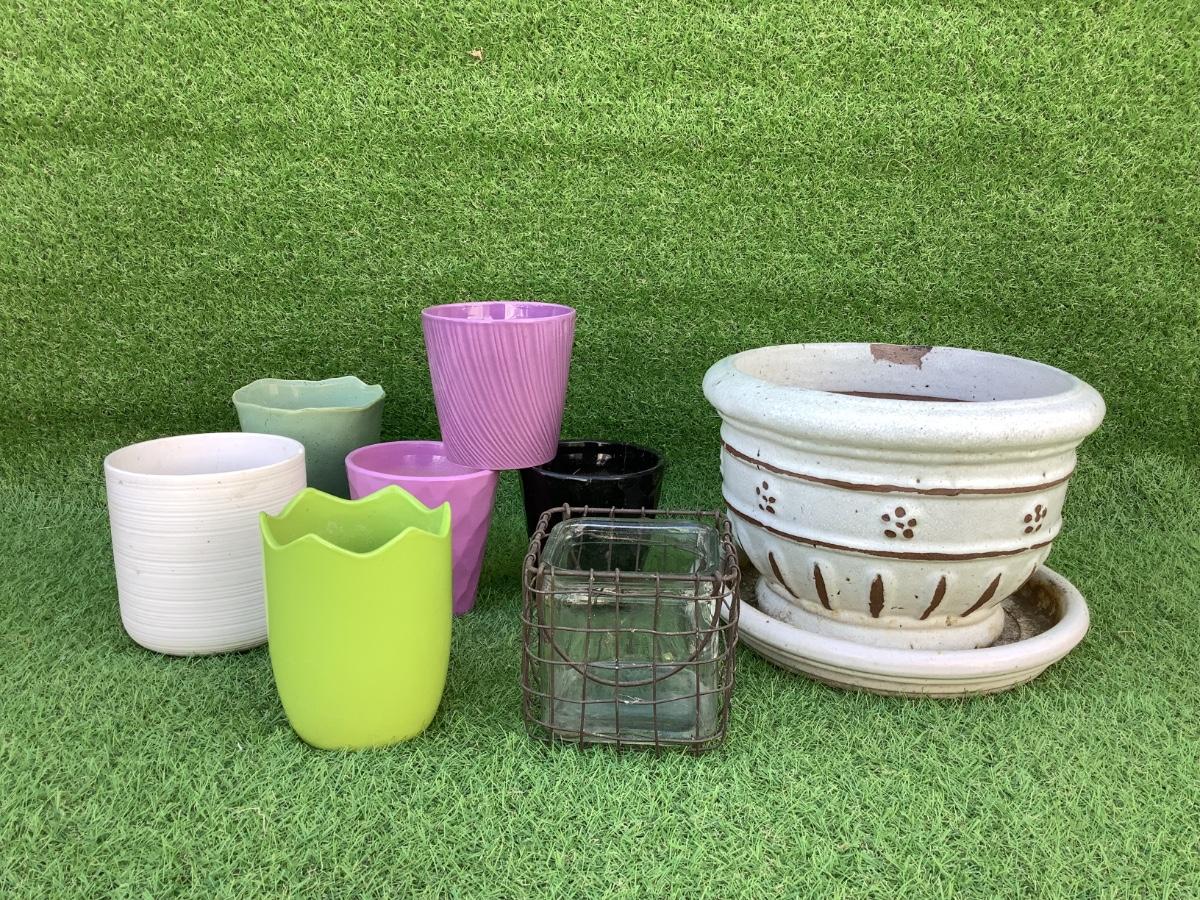 143 Lot of Small Orchid Pts with Large White Glazed Terracotta Pot with Saucer