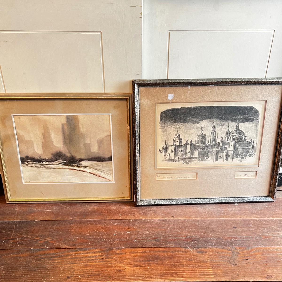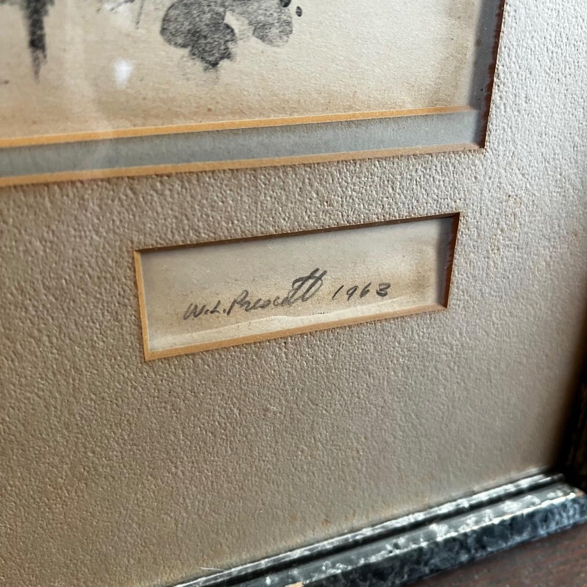 1431 Framed Signed and Numbered Etching by W.L. Prescott with Original Watercolor