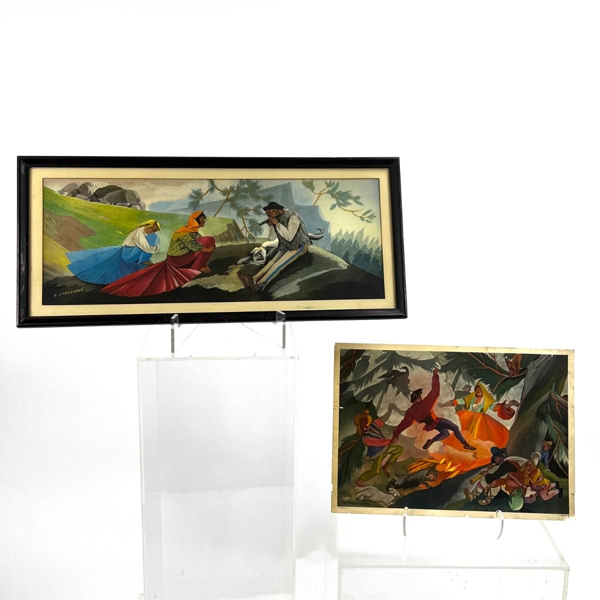 Pair of Colored Prints by Polish Artist Zofia Stryjenska.
