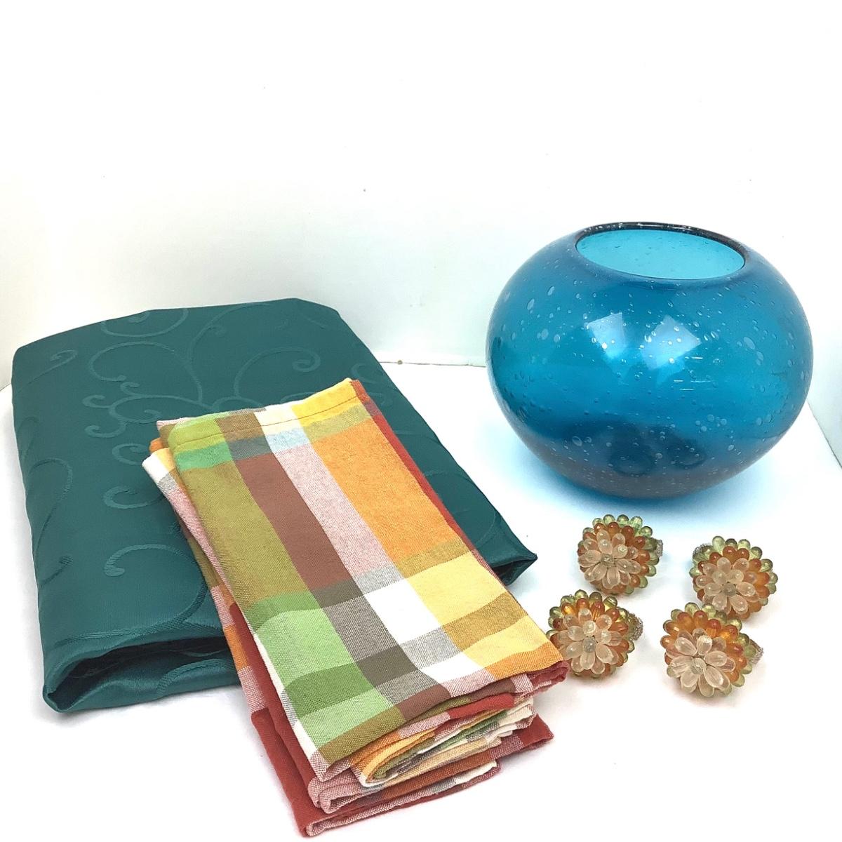 Plaid Napkins x 4 with Beaded Napkin Rings