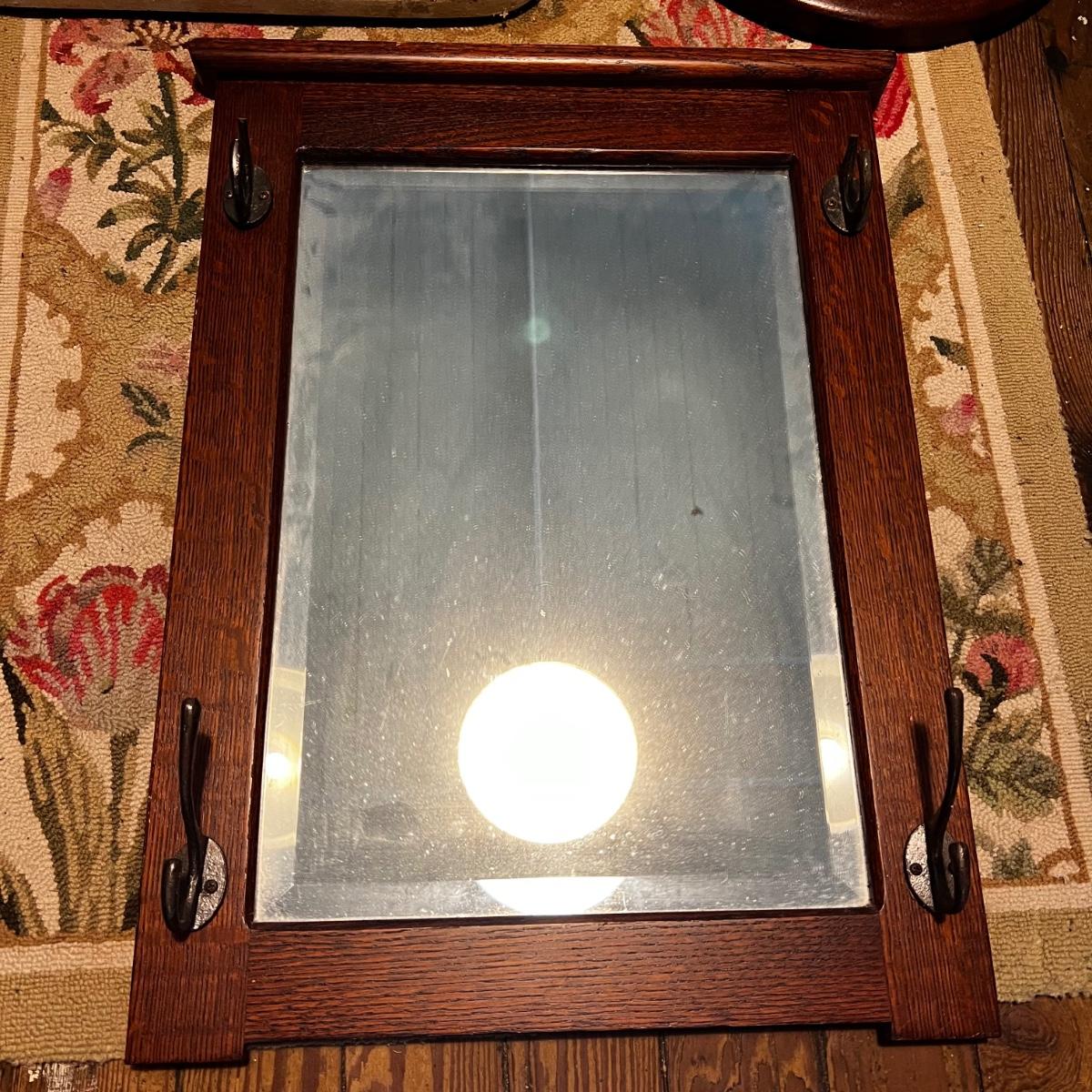 one oak with broken hooks and two beveled mirrors one painted white measuring 18"wide x 22" high