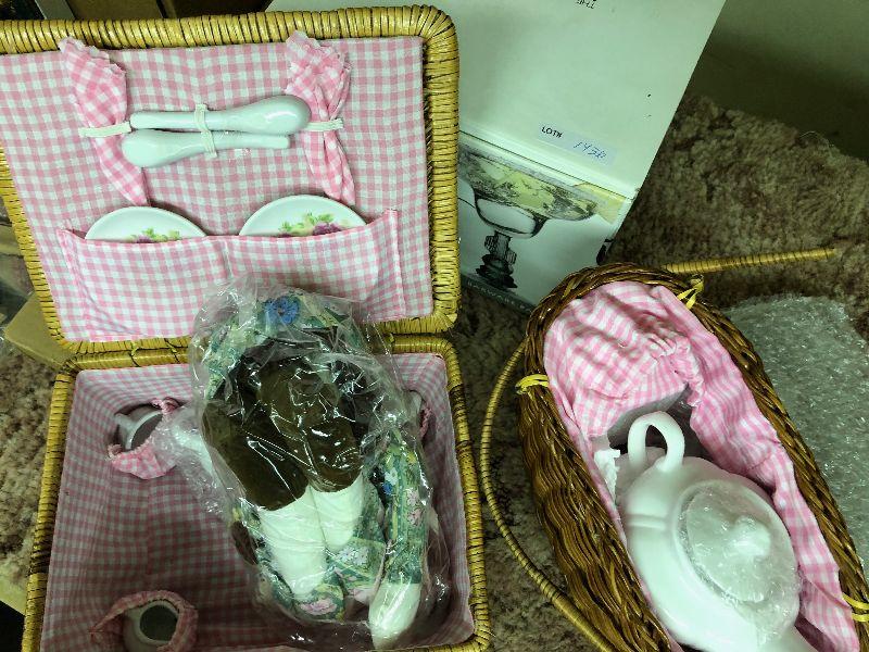 #1439B 2 Picnic Doll Tea Sets in wicker baskets