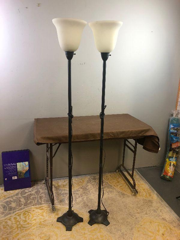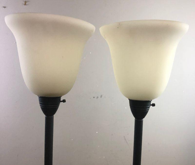 Good Working Condition with Frosted Glass shade 71" Tall Black Metal Base