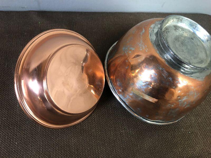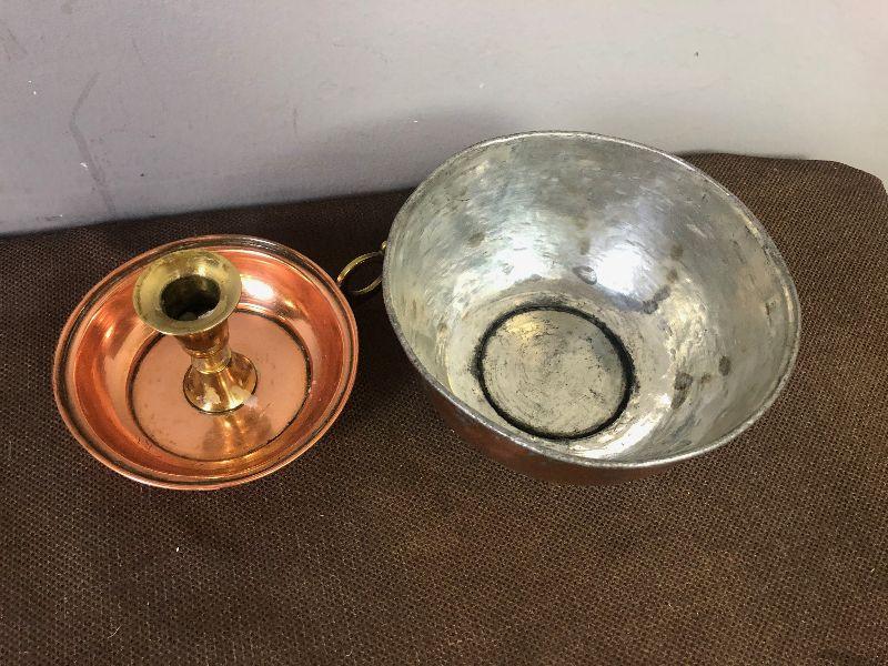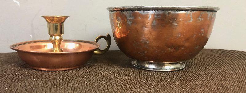 #144 Hand crafted Copper candle stick and bowl