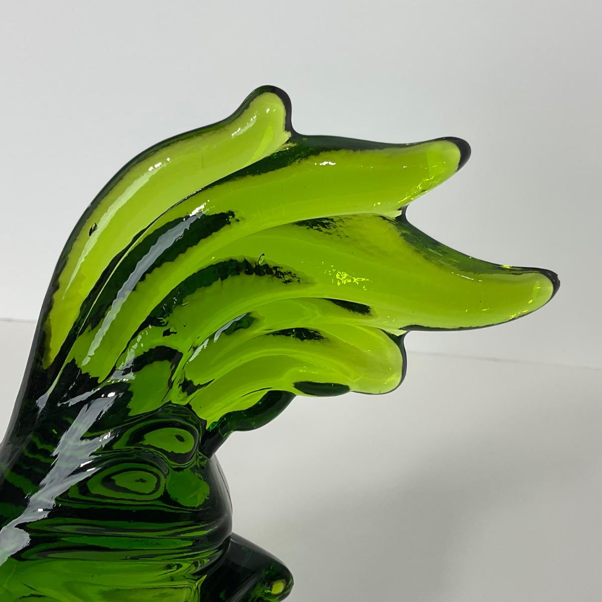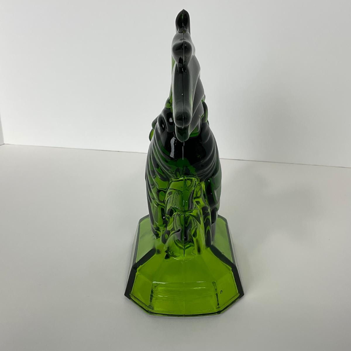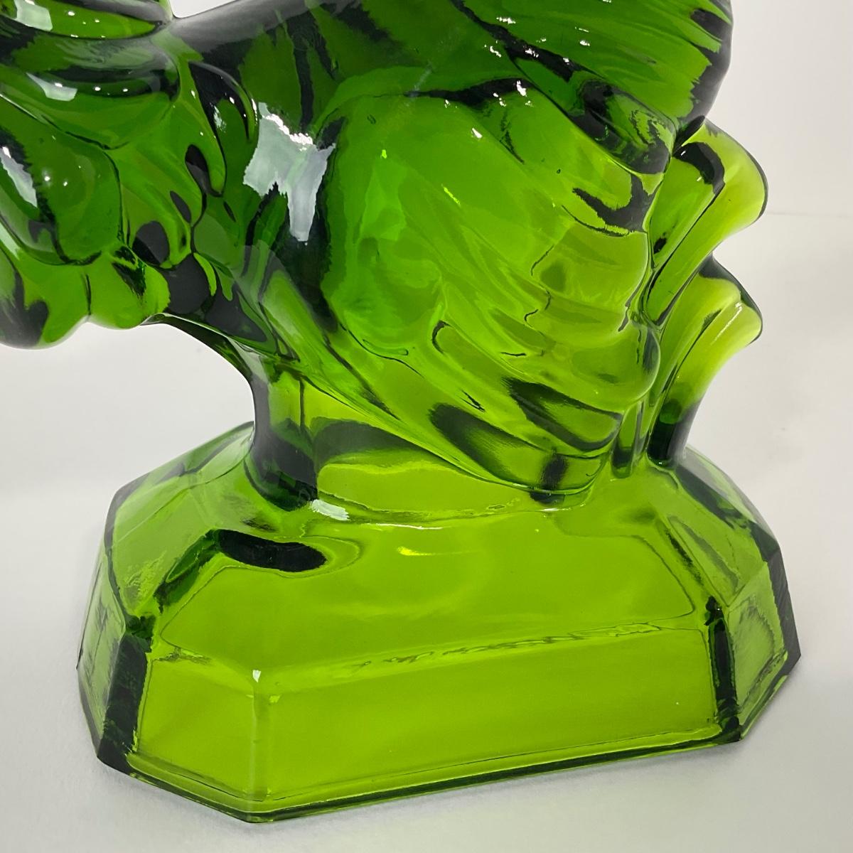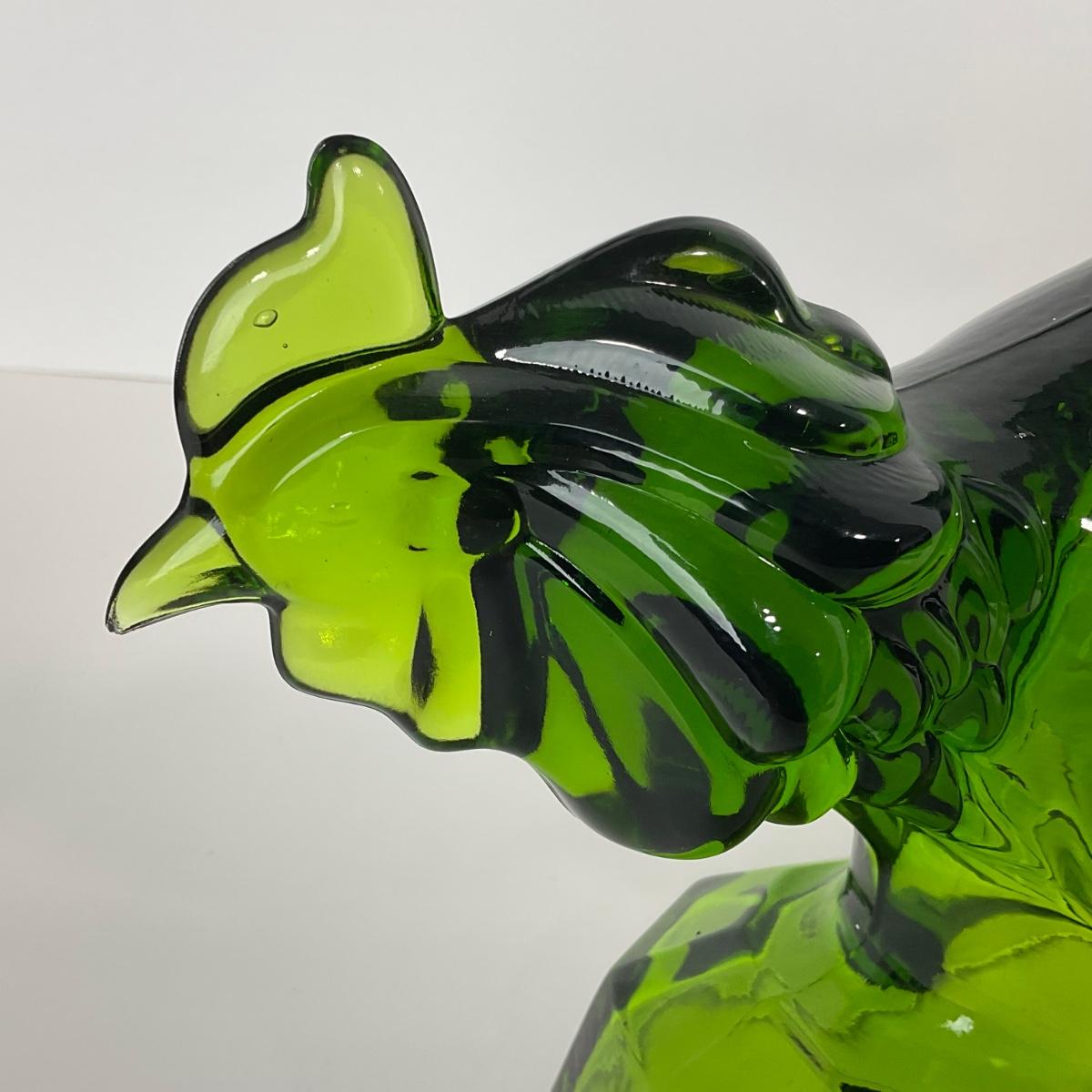 One green LE Smith glass rooster This piece has no damage, and appears to be in great shape with no visable chips, cracks, or broken pieces. 8 1/2 inches tall by 10 inches wide. Please see photos for details and condition. Any condition statement is given as a courtesy to a client, is an opinion, and should not be treated as a statement of fact. Reference to condition written, oral or within a condition report shall not be regarded as a full account of condition and may not include all defects, alterations, or restorations. Absence of a condition report does not imply a lot is flawless or lacking imperfections or damage. Katherine’s Auction & Appraisal Service shall have no responsibility for any error or omission. Returns shall not be accepted on the basis of condition. ::: Shipping is available on this lot. If you require shipping you must let us know at the close of the auction. We will coordinate with you after the item has been won. Shipping fees will include insurance up to or exceeding the value of all items being mailed. If you have any questions regarding this lot please contact the auctioneer either via this website, by direct email or by phone. PICK UP TIMES and other important information can be found in the TERMS and DESCRIPTION of the auction. Please take a look for pertinent information. Thanks!