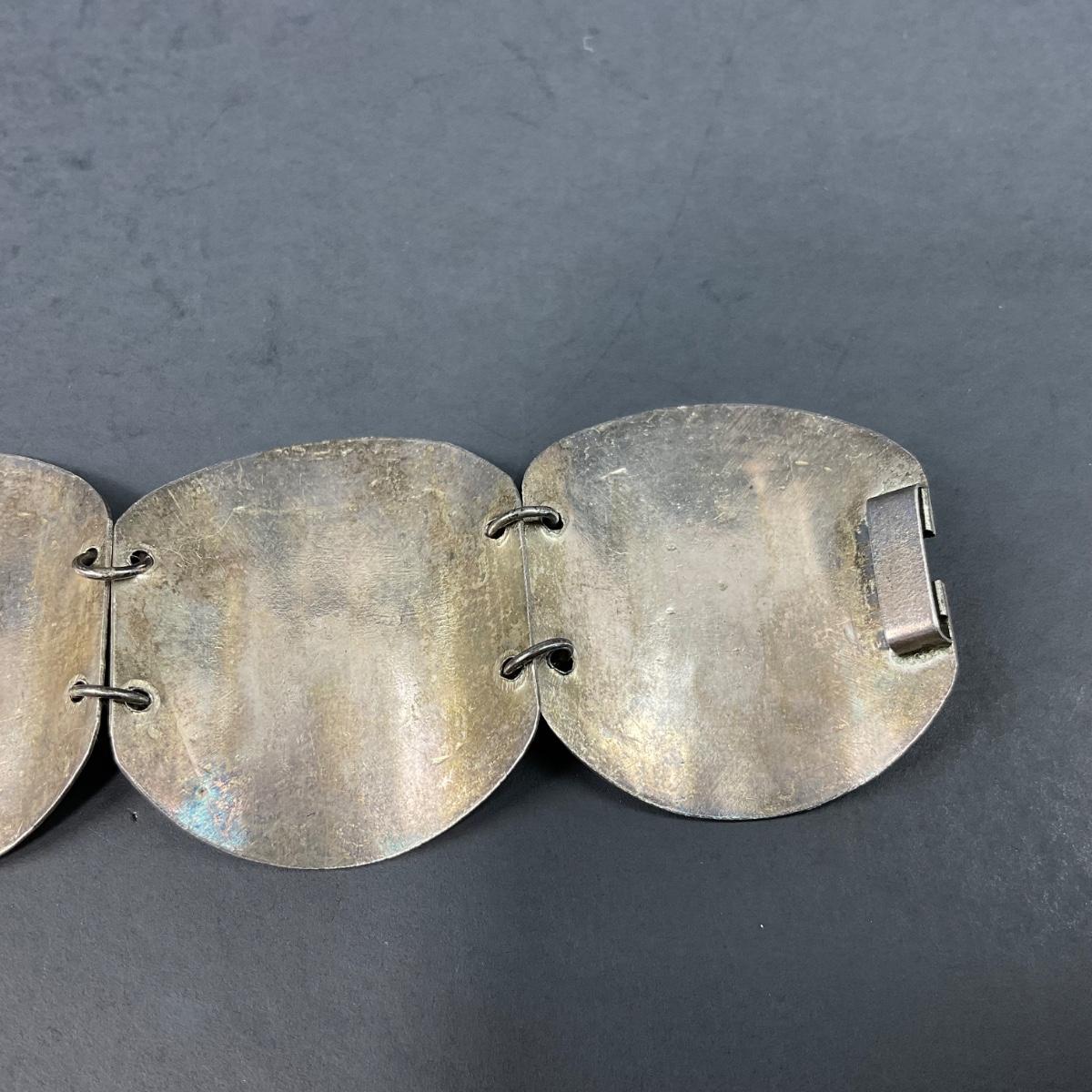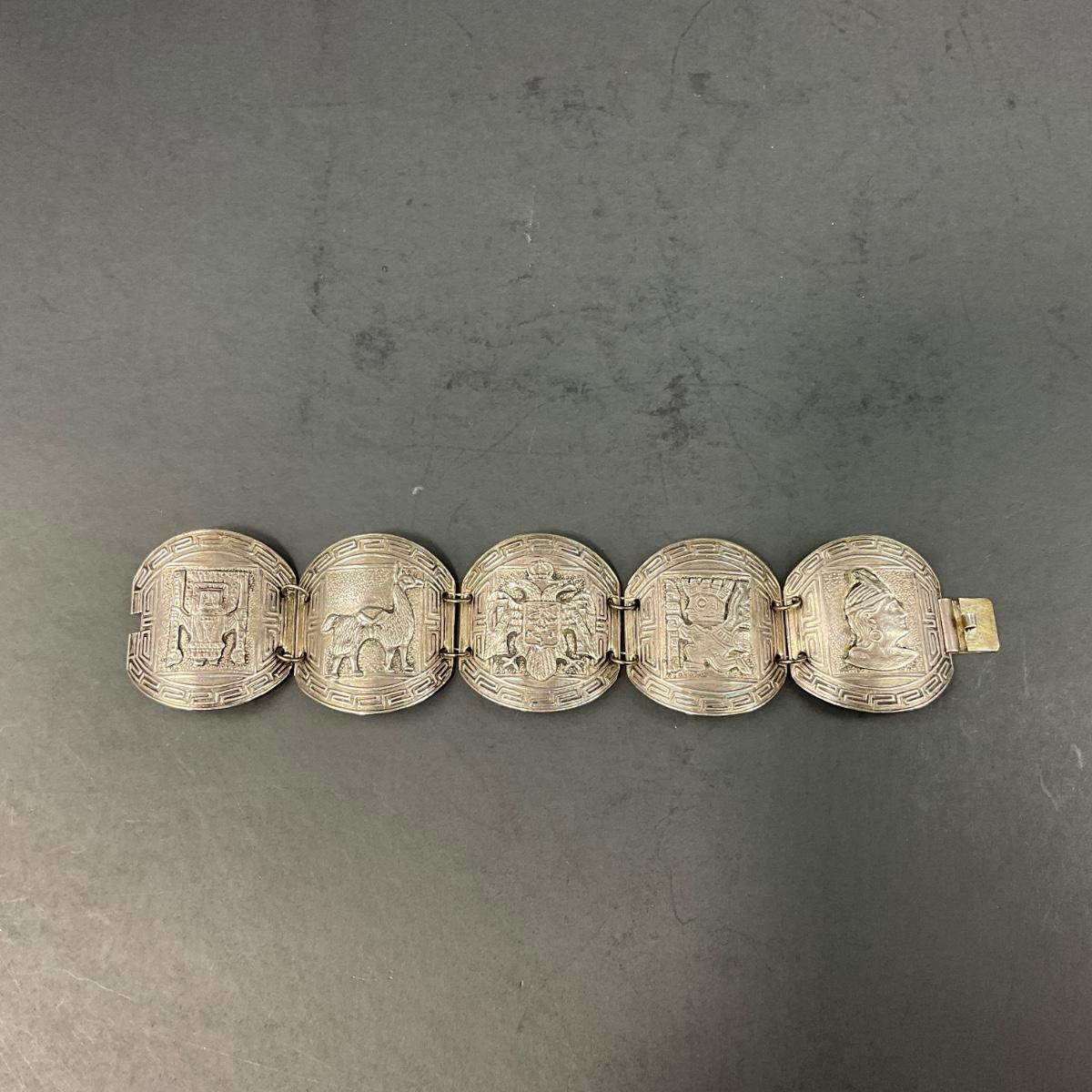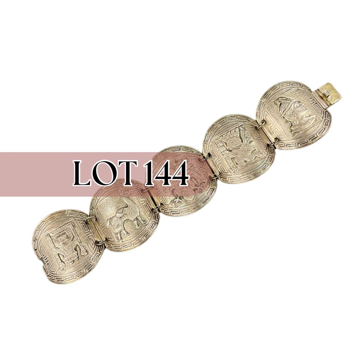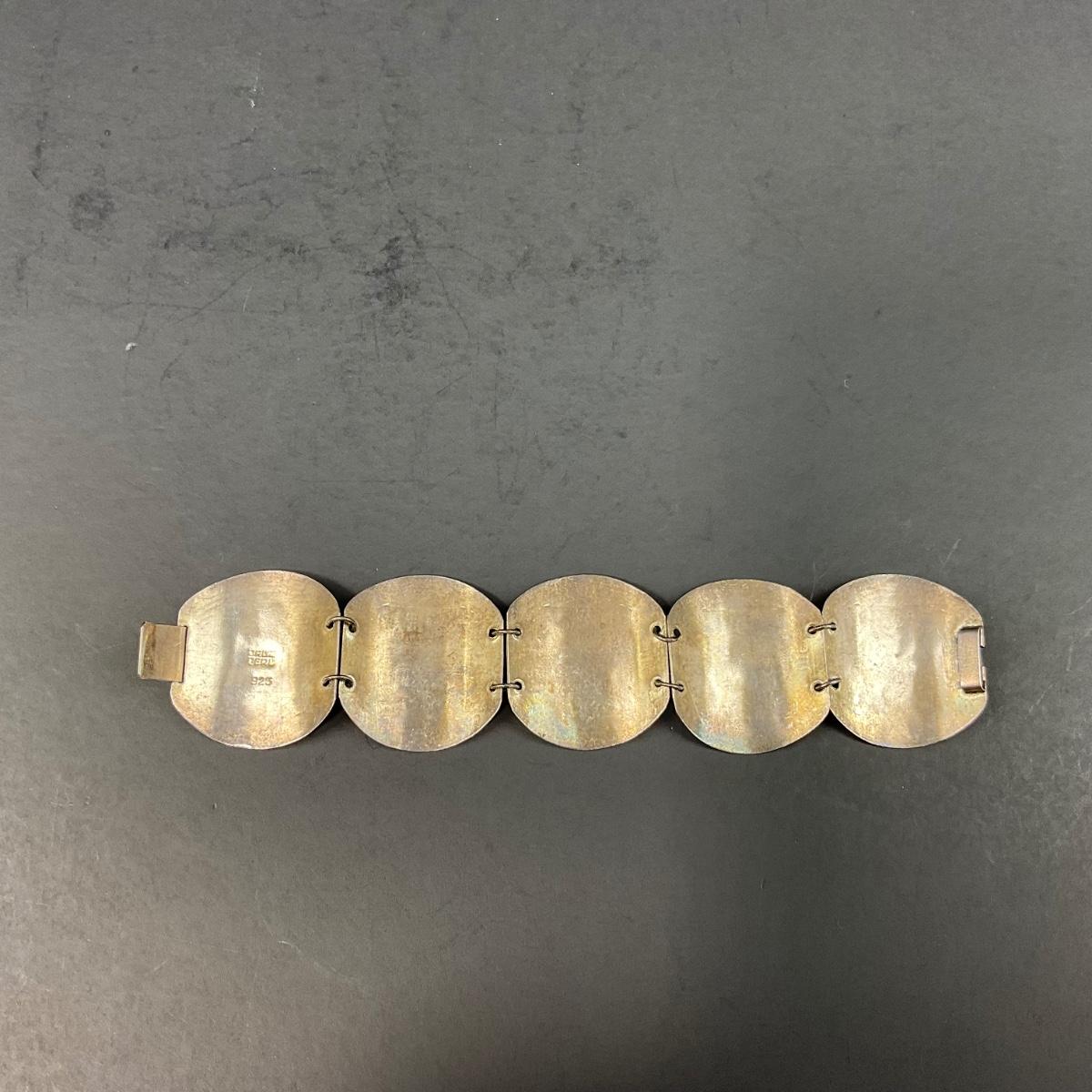 One vintage 925 Mexico marked silver bracelet. This piece does have some scuffs, scratches, marks, or slight damage, but otherwise appears to be in great shape. Please see photos for details and condition. Any condition statement is given as a courtesy to a client, is an opinion, and should not be treated as a statement of fact. Reference to condition written, oral or within a condition report shall not be regarded as a full account of condition and may not include all defects, alterations, or restorations. Absence of a condition report does not imply a lot is flawless or lacking imperfections or damage. Katherine’s Auction & Appraisal Service shall have no responsibility for any error or omission. Returns shall not be accepted on the basis of condition. ::: Shipping is available on this lot. If you require shipping you must let us know at the close of the auction. We will coordinate with you after the item has been won. Shipping fees will include insurance up to or exceeding the value of all items being mailed. If you have any questions regarding this lot please contact the auctioneer either via this website, by direct email or by phone. PICK UP TIMES and other important information can be found in the TERMS and DESCRIPTION of the auction. Please take a look for pertinent information. Thanks!