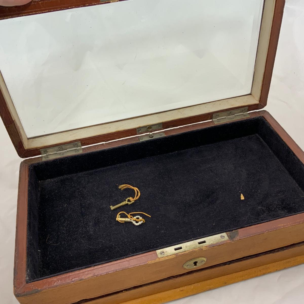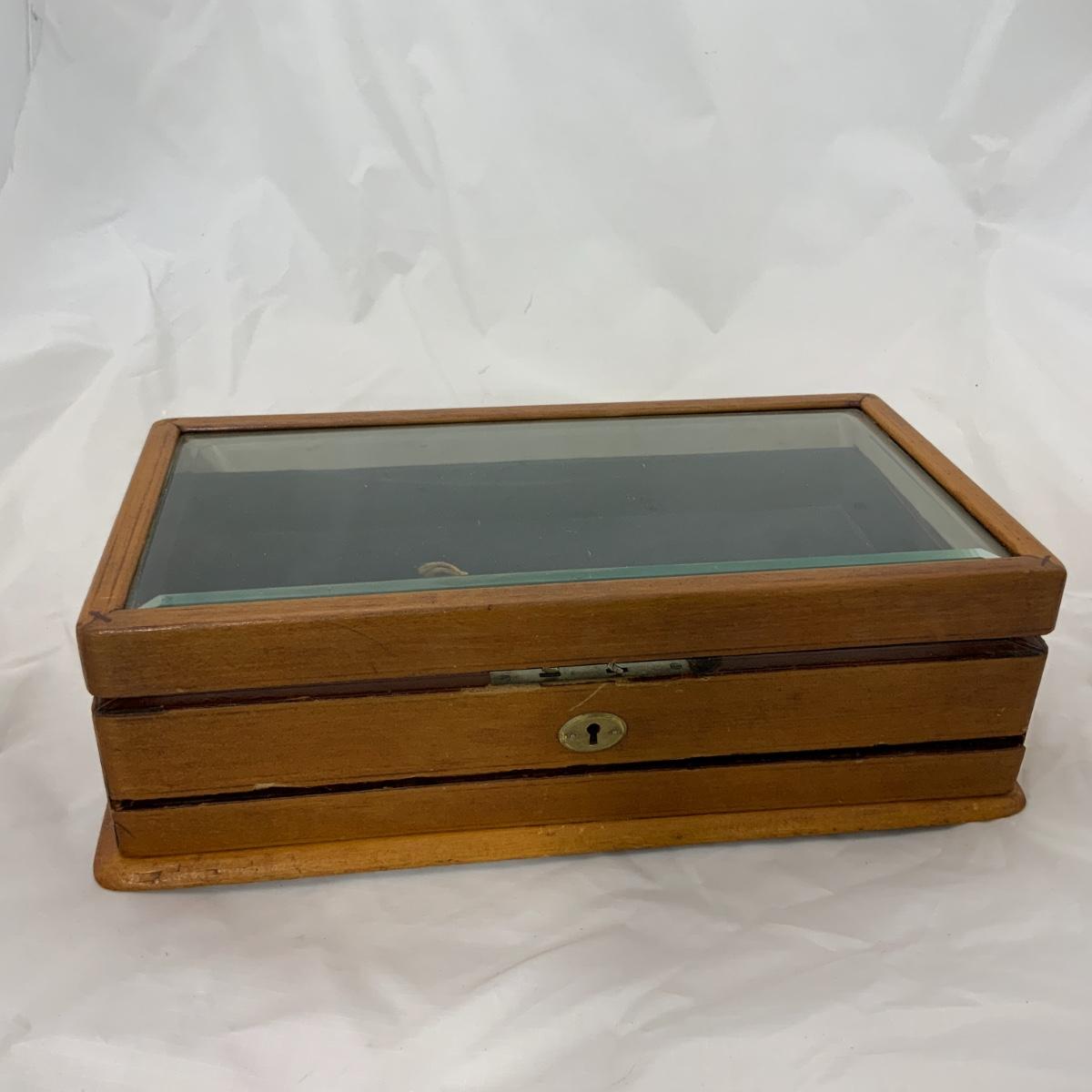 From the Estate of Peter and Alice Radovanovich: Two Wood Storage Boxes. Both come with keys, but neither of them lock. Which, when you think about it, is a really good philosophy for life. Glass top box measures 13x7x4. Wood top box measures 11.75x8x4. Please see photos for details and condition. ::: Shipping is NOT available on this lot. If you have any questions regarding this lot please contact the auctioneer either via this website, by direct email or by phone. PICK UP TIMES and other important information can be found in the TERMS and DESCRIPTION of the auction. Please take a look for pertinent information. Thanks!