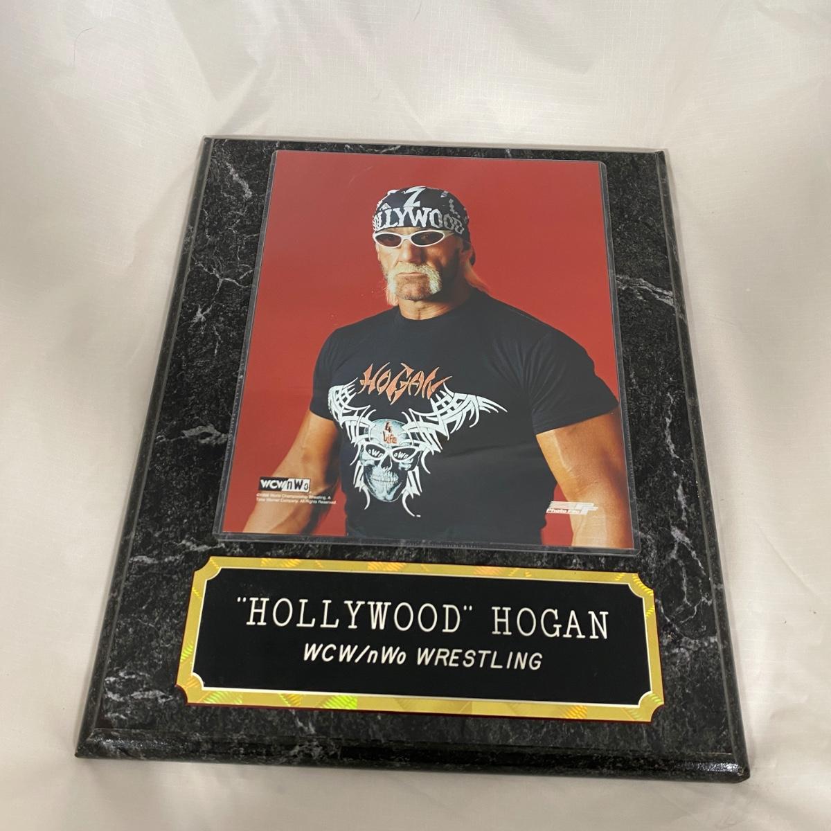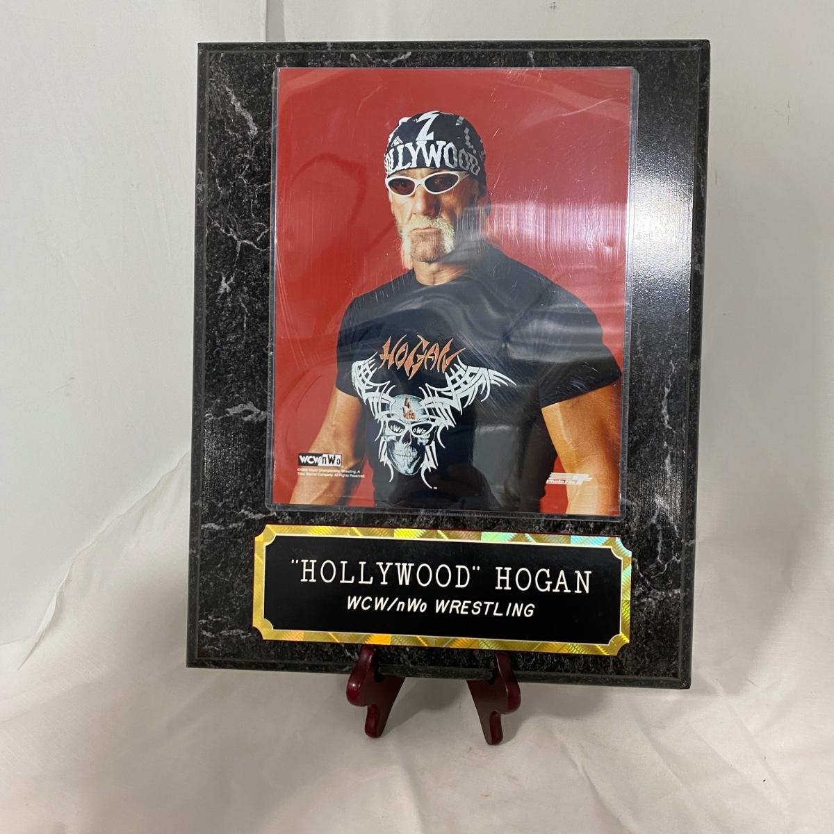 12 inches by 15 inches plaque of “Hollywood” Hogan WCW/nWO Wrestling. Please see photos for details and condition. ::: Shipping is available on this lot. If you require shipping you must let us know at the close of the auction. We will coordinate with you after the item has been won. Shipping fees will include insurance up to or exceeding the value of all items being mailed. If you have any questions regarding this lot please contact the auctioneer either via this website, by direct email or by phone. PICK UP TIMES and other important information can be found in the TERMS and DESCRIPTION of the auction. Please take a look for pertinent information. Thanks!