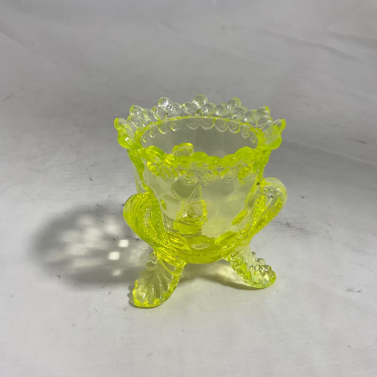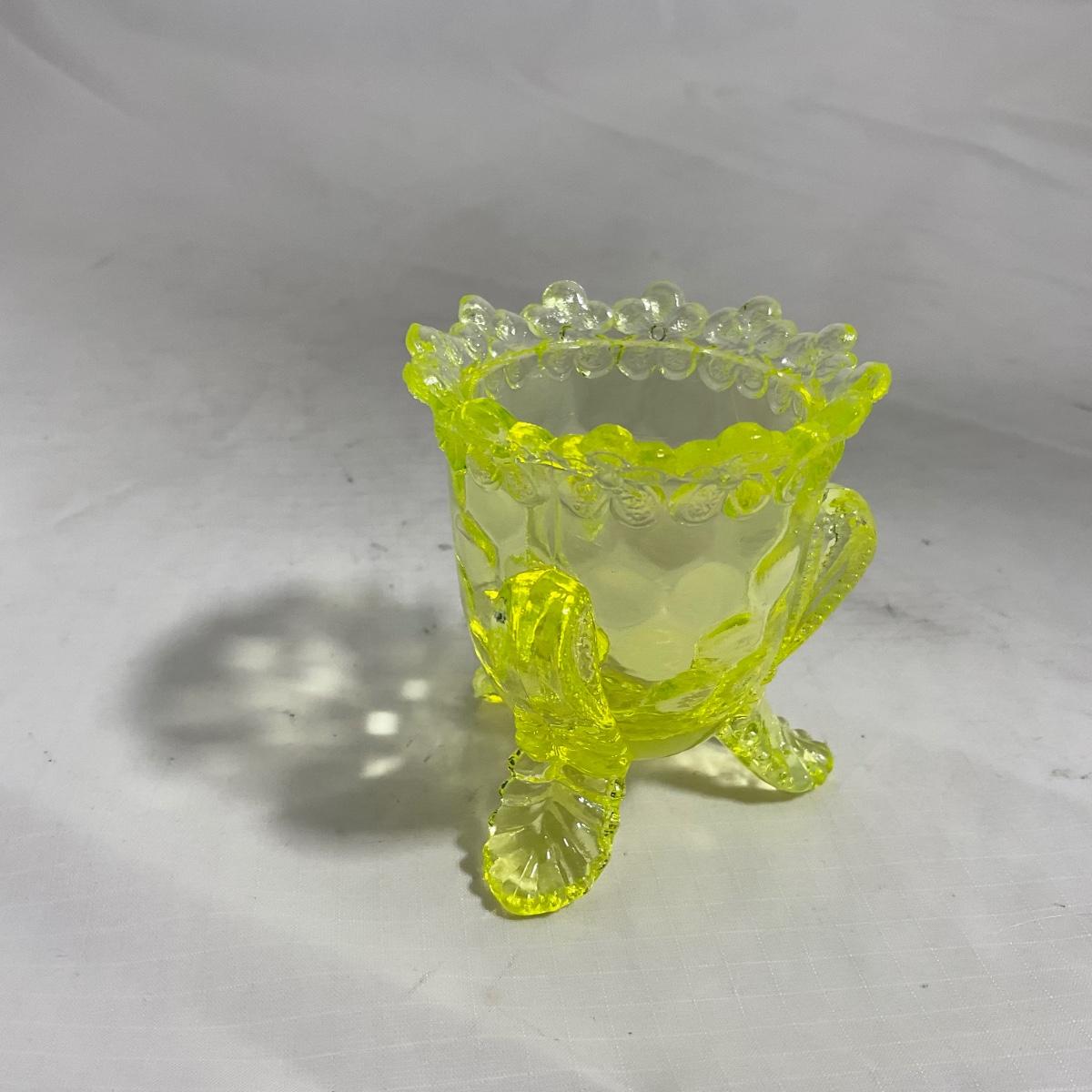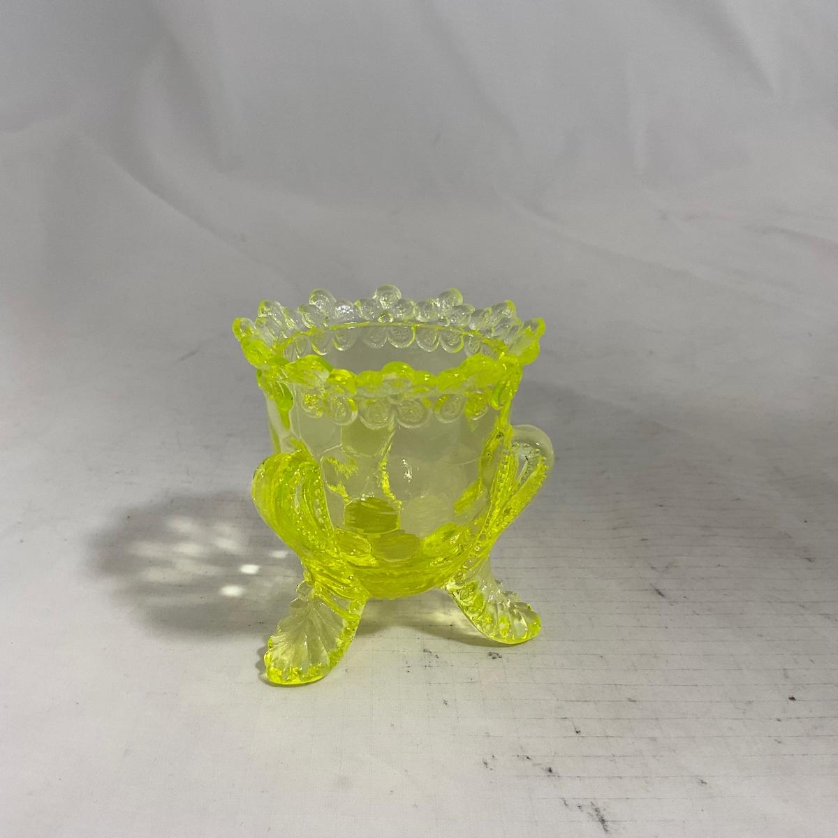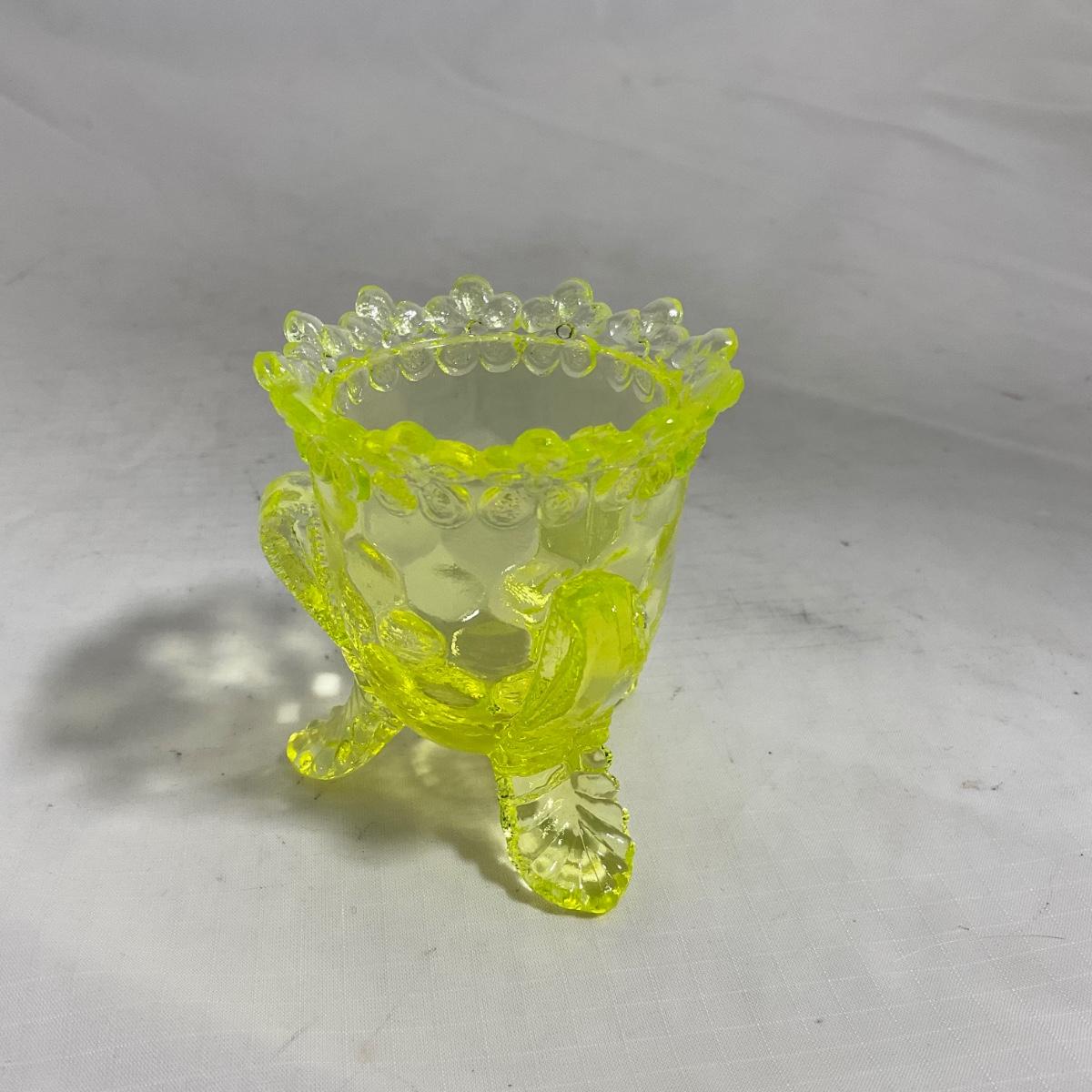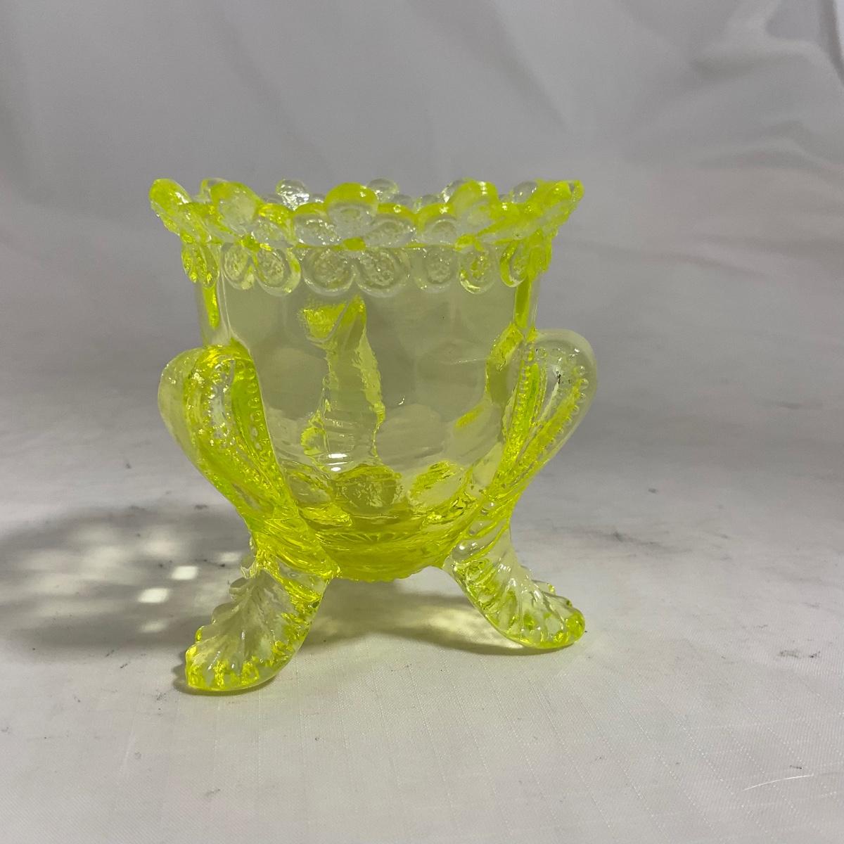 -144- Yellow Vaseline | Uranium Glass | Toothpick Holder