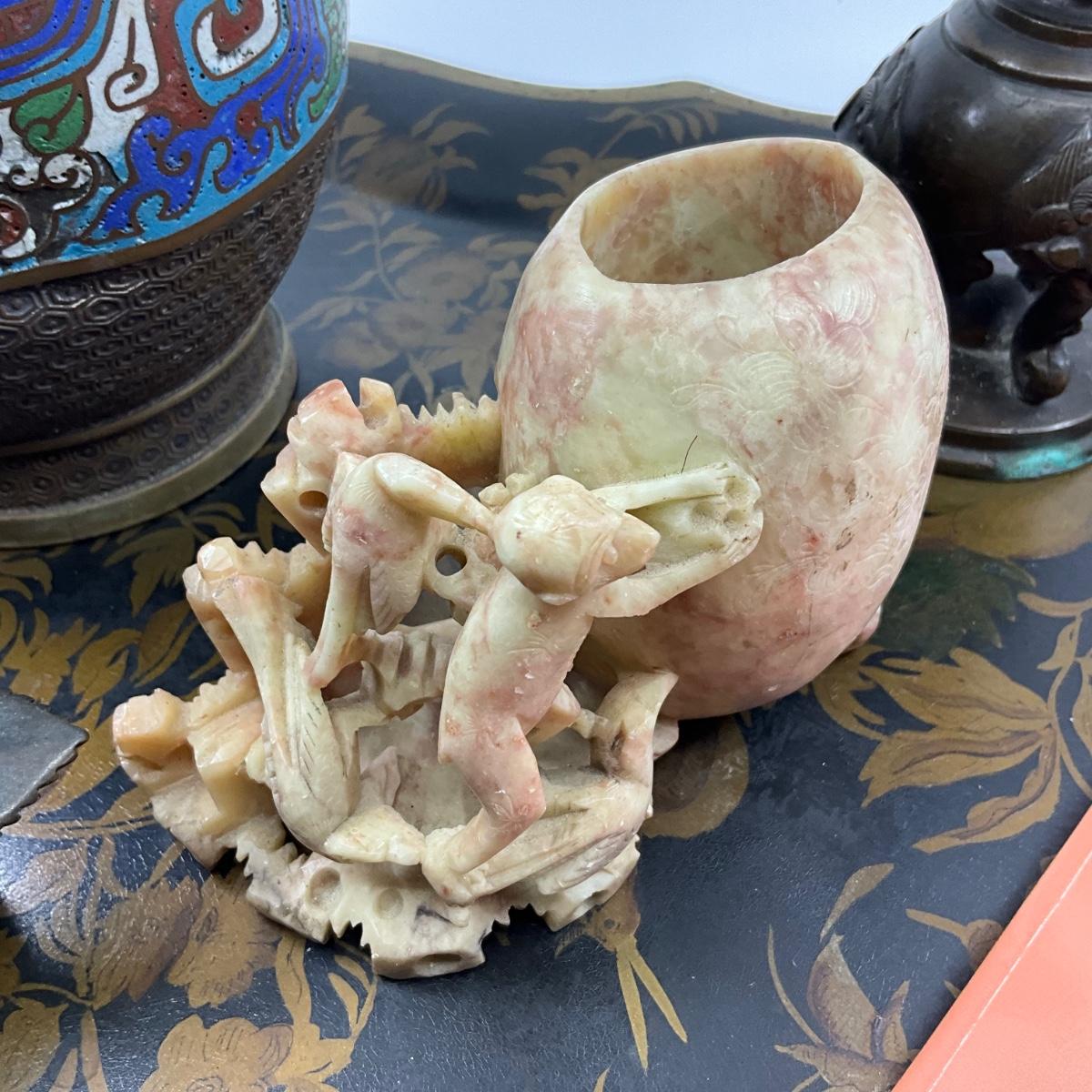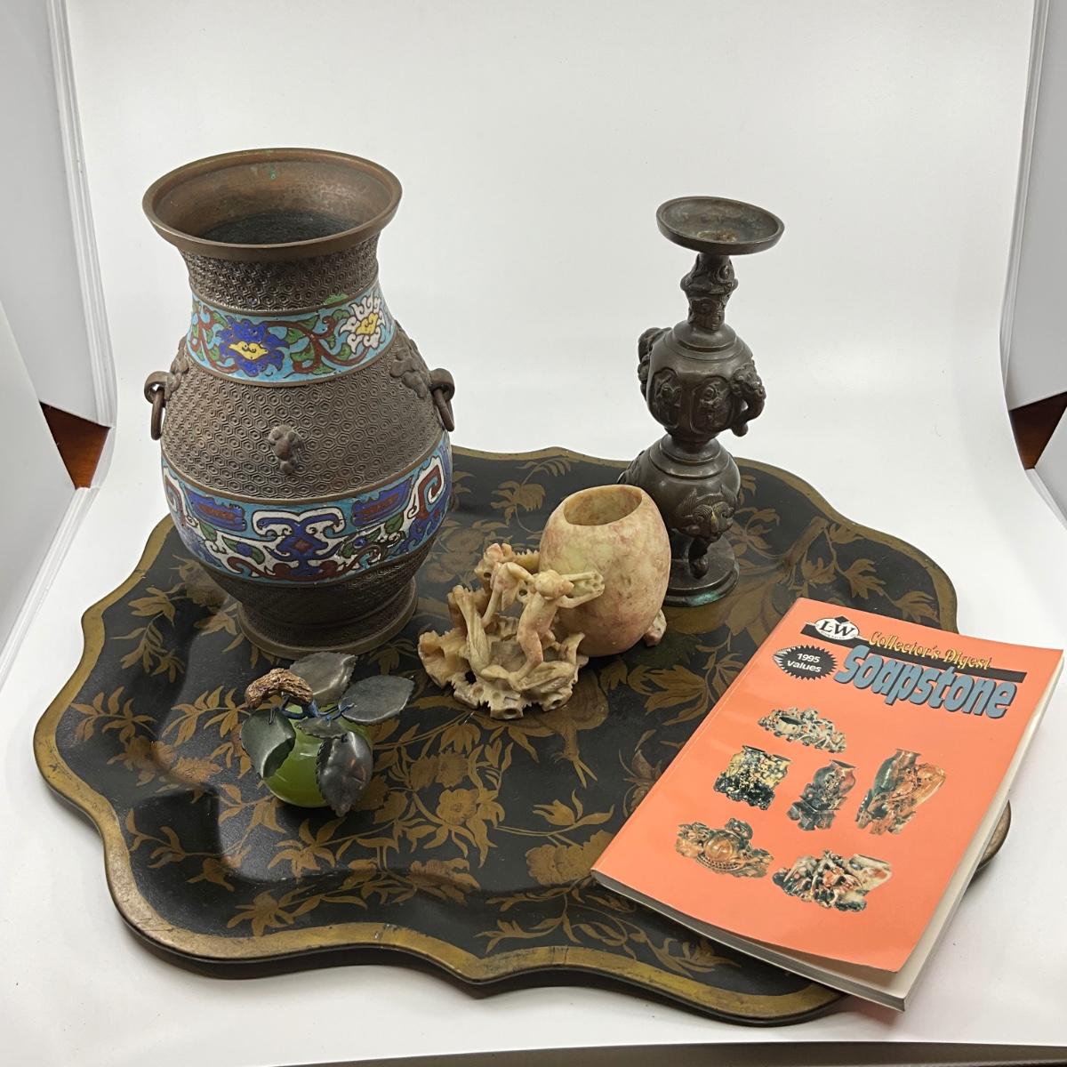 1445 Lot of Asian Decor , Soapstone, Cloisonne