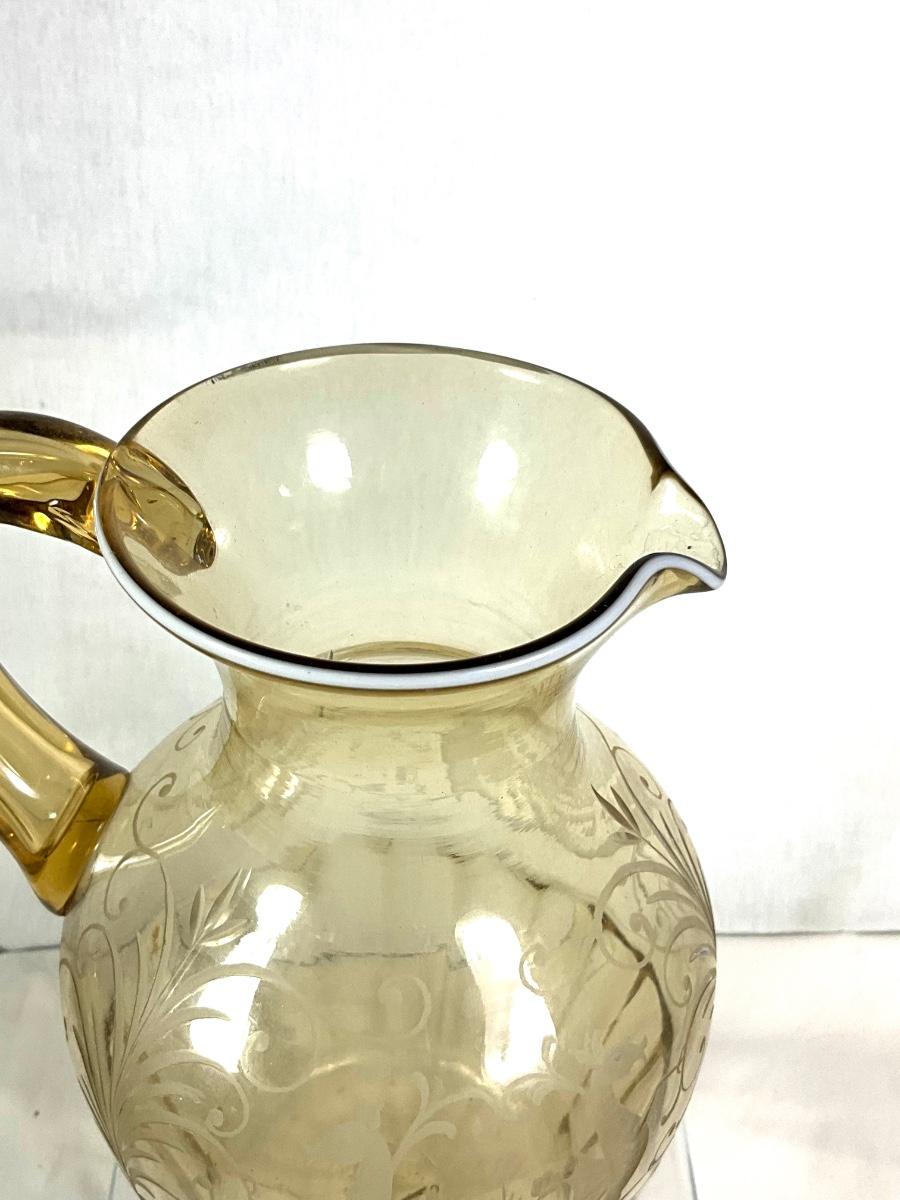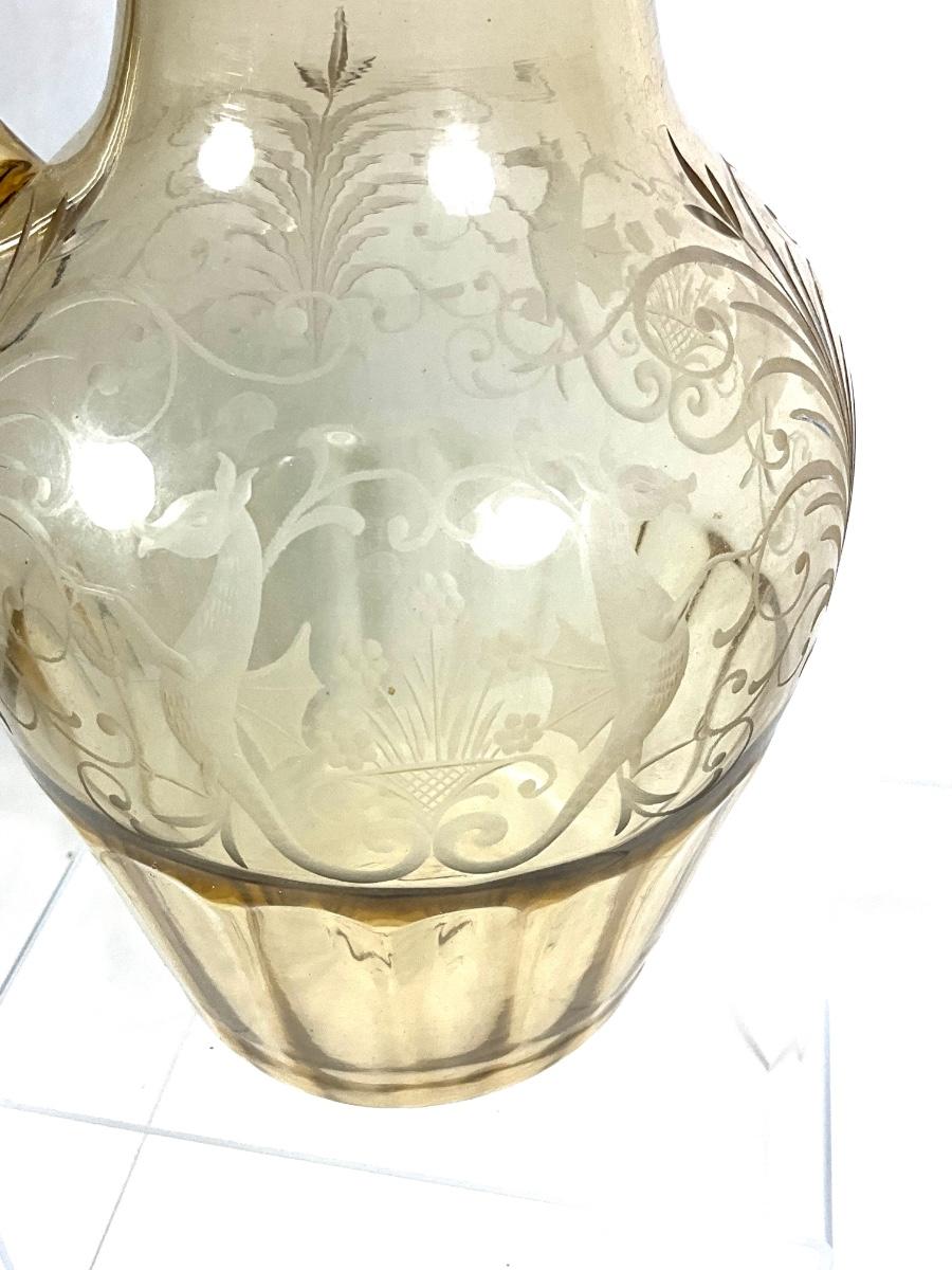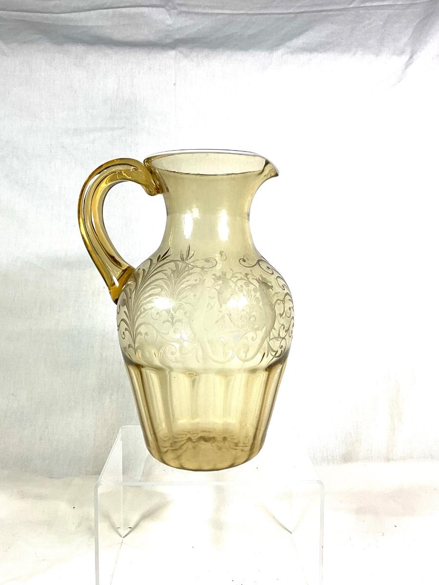 1446 Antique Cut Glass Pitcher with Mid Evil Seahorse with Wings