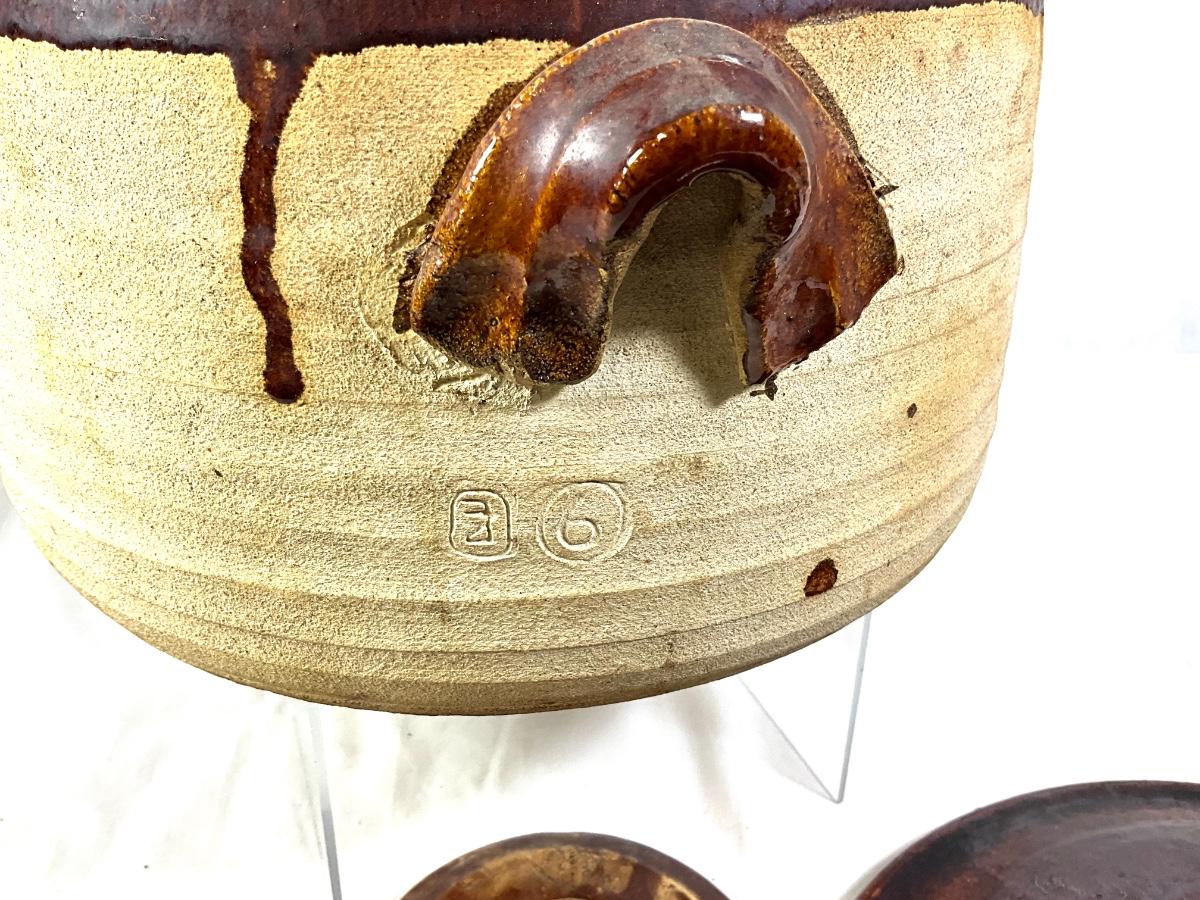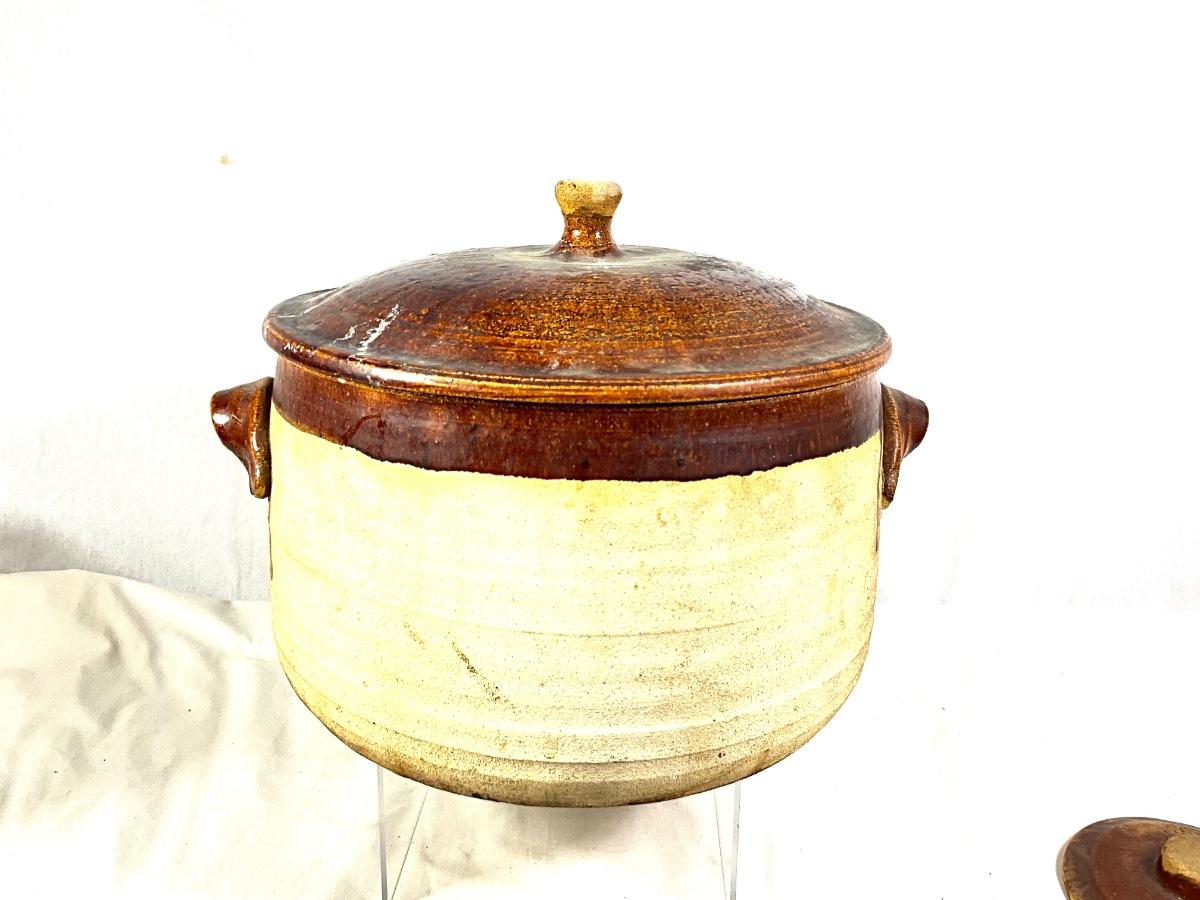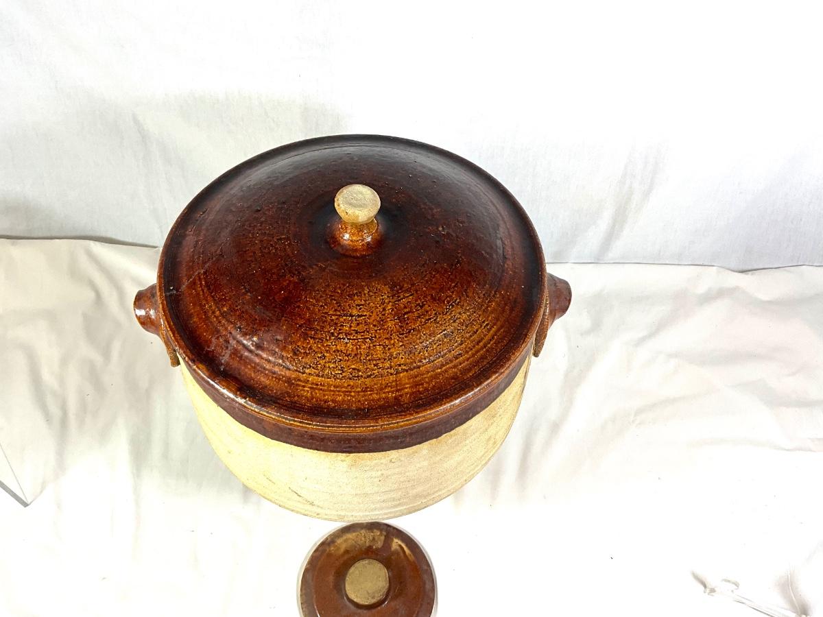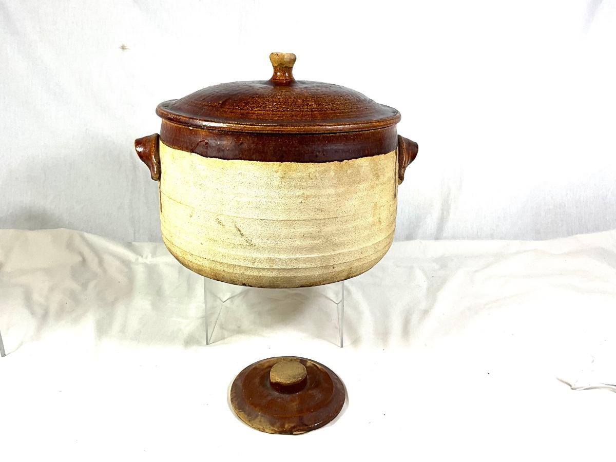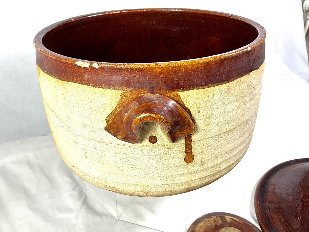 1447 Vintage Beige & Brown Glazed Santa Barbara Crock