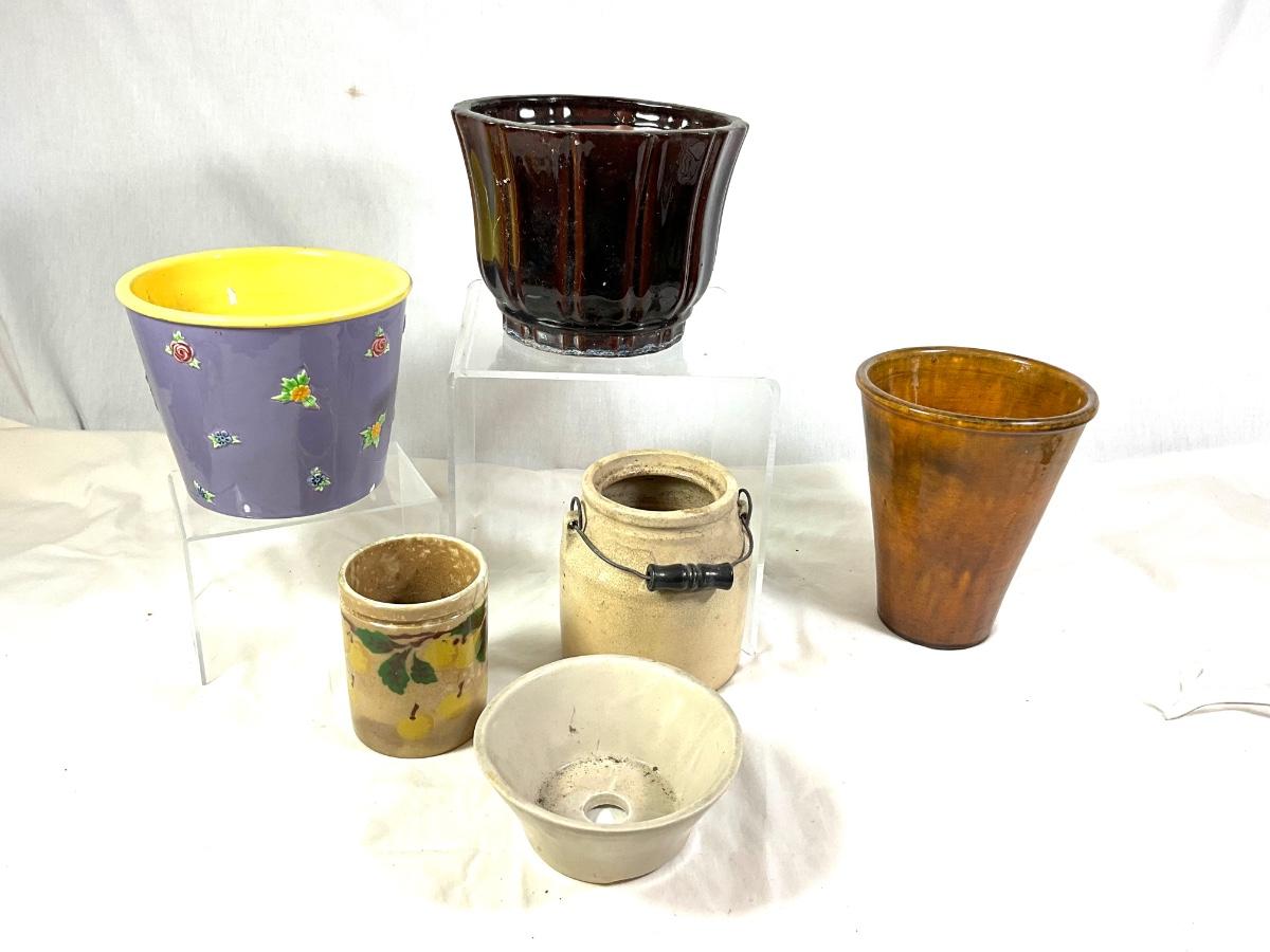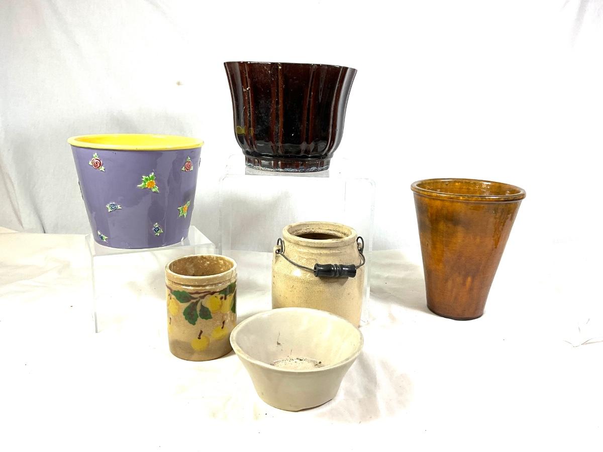 1449 Lot of Vintage Flower Pots, Vase, and Crock