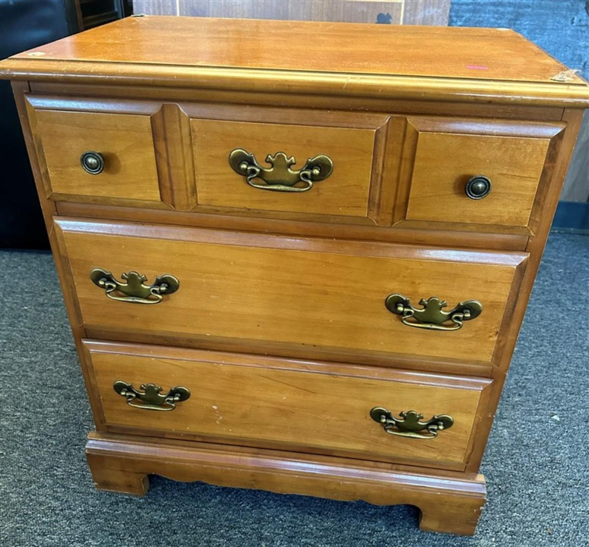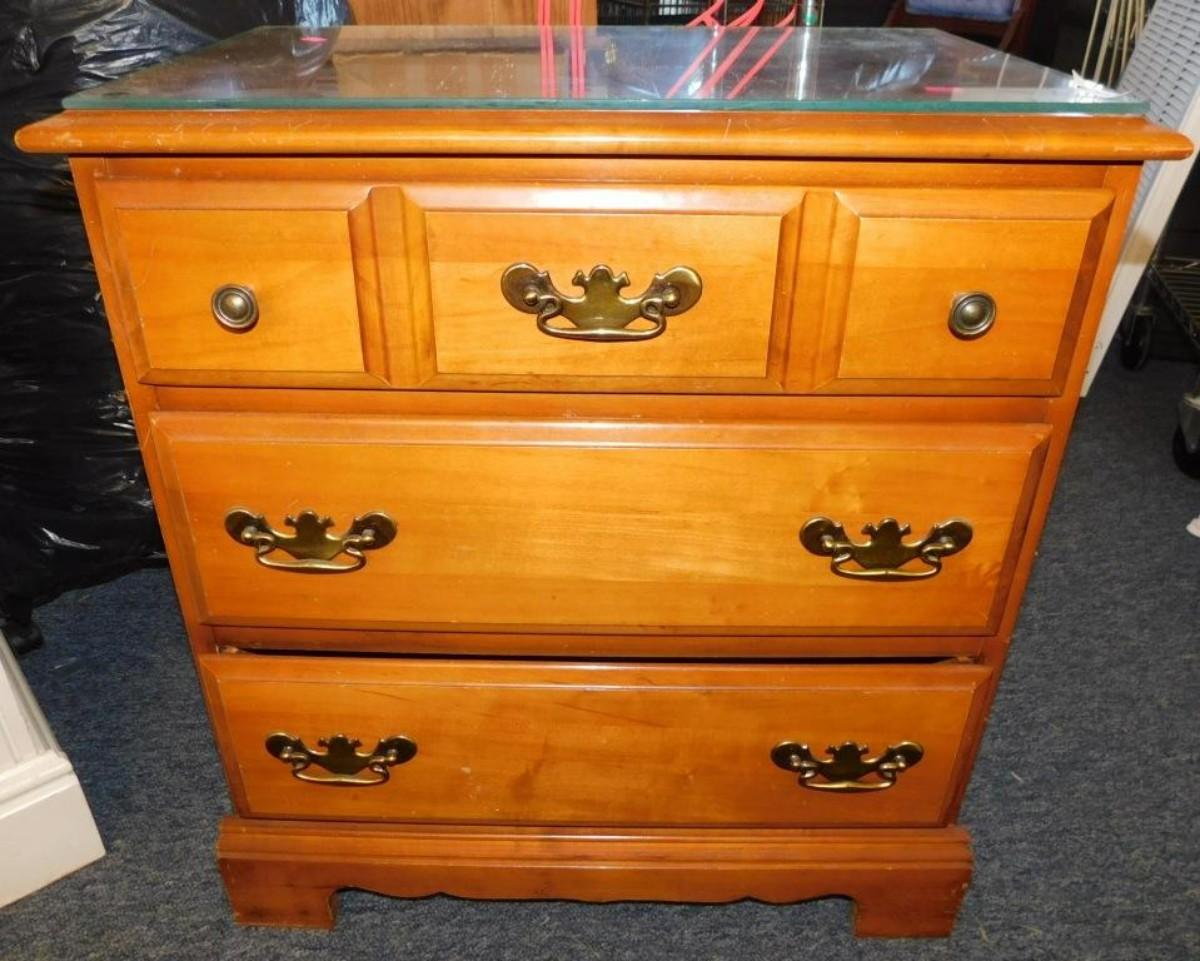 144A Side Table 3 Drawers Brown with Glass on Top 24 x 15 x 26