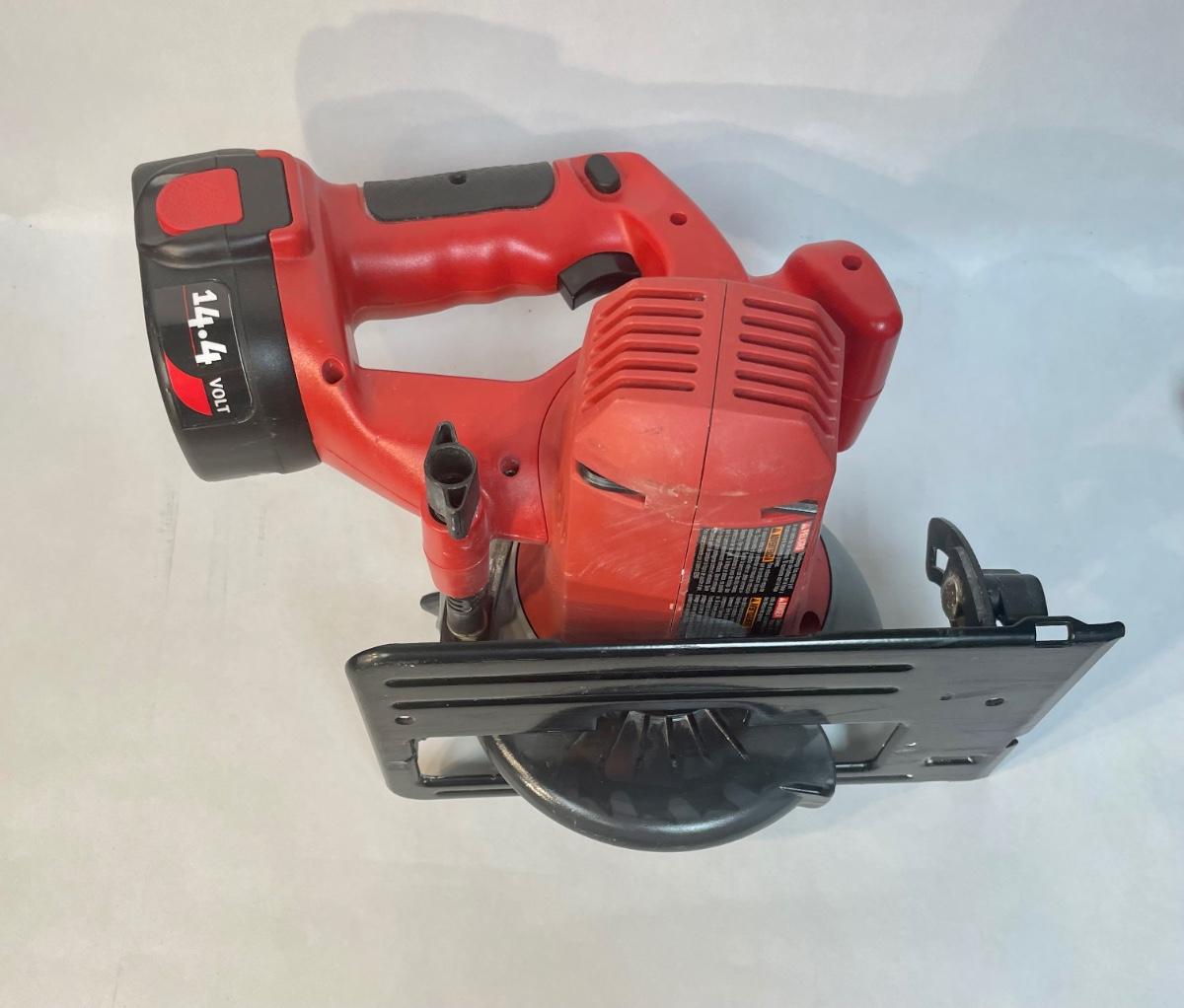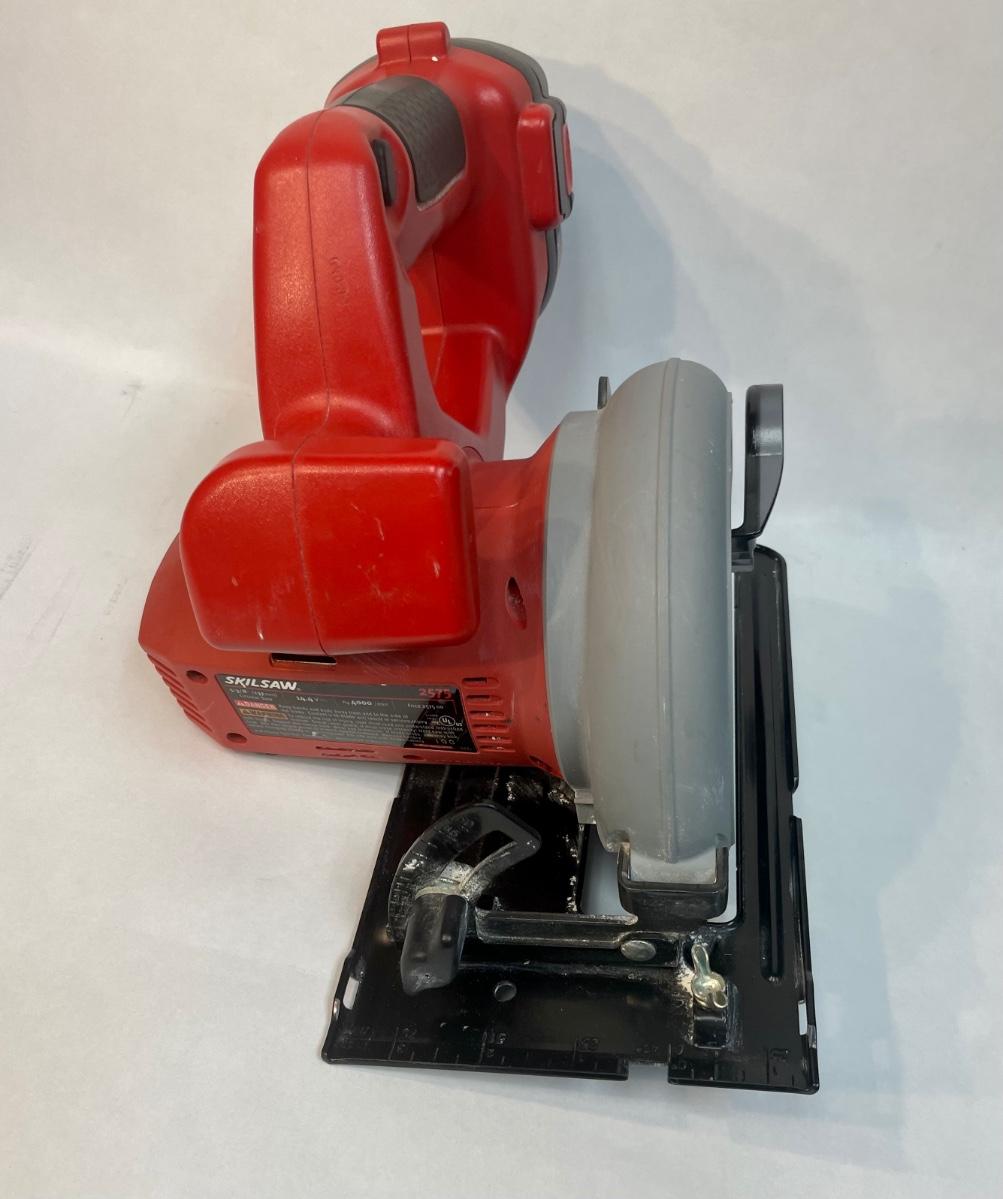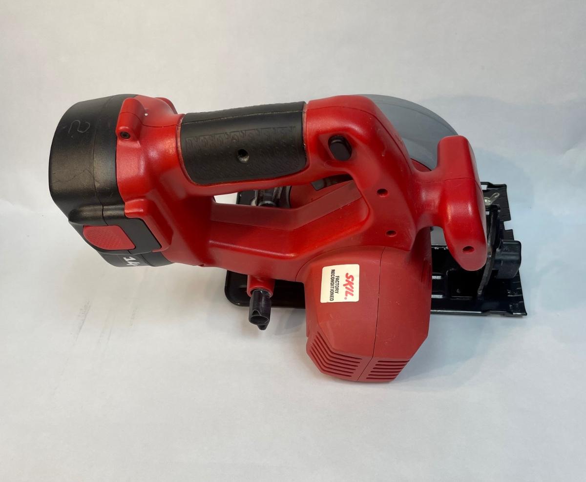 Saw is in very good used condition. Uses a 5 3/8" blade.. Model 2575. Works well. NOTE: battery charger unit is heat-damaged, does not work. This can be replaced, or the battery can be charged in a compatible Skil 14.4v charger.