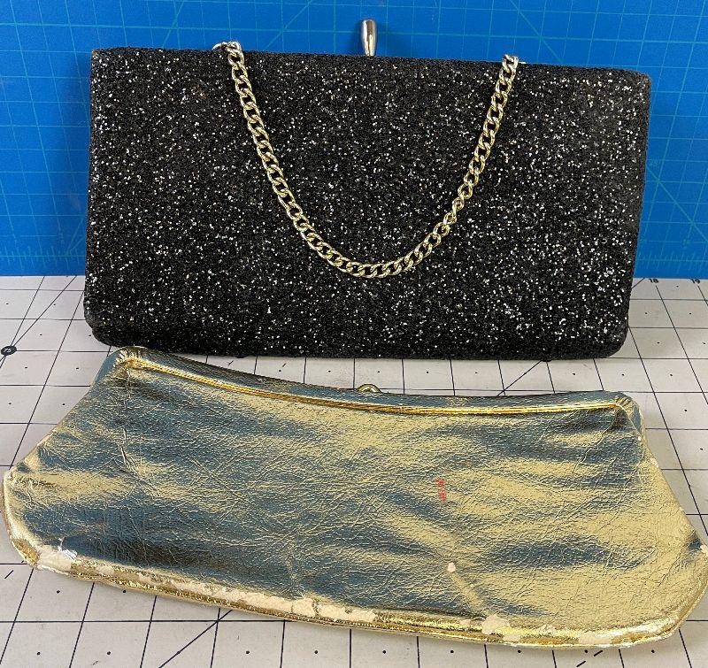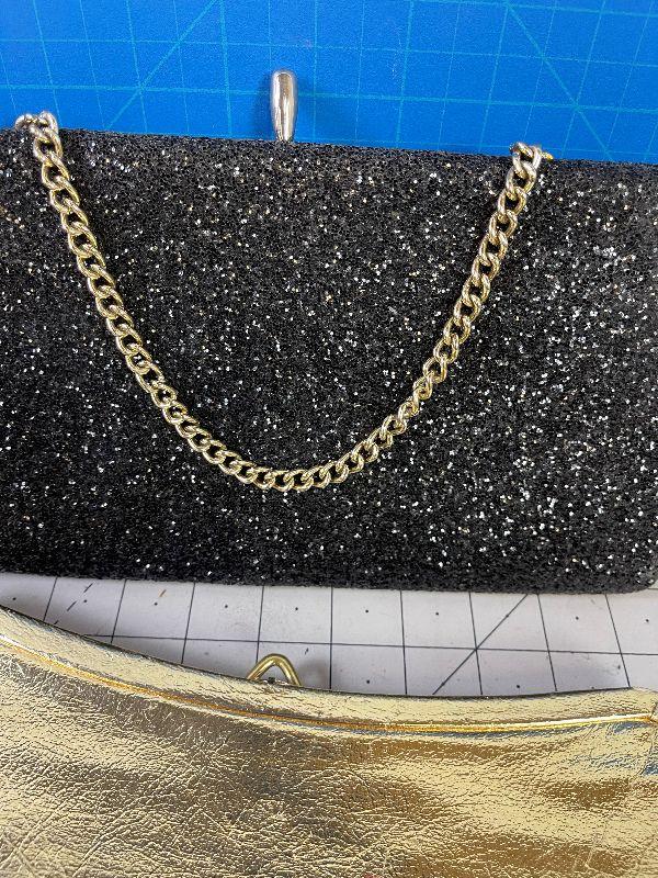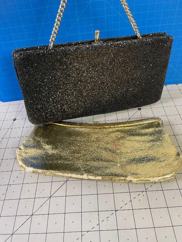 #145 3rd set Evening Bags in Black and Gold Fabric