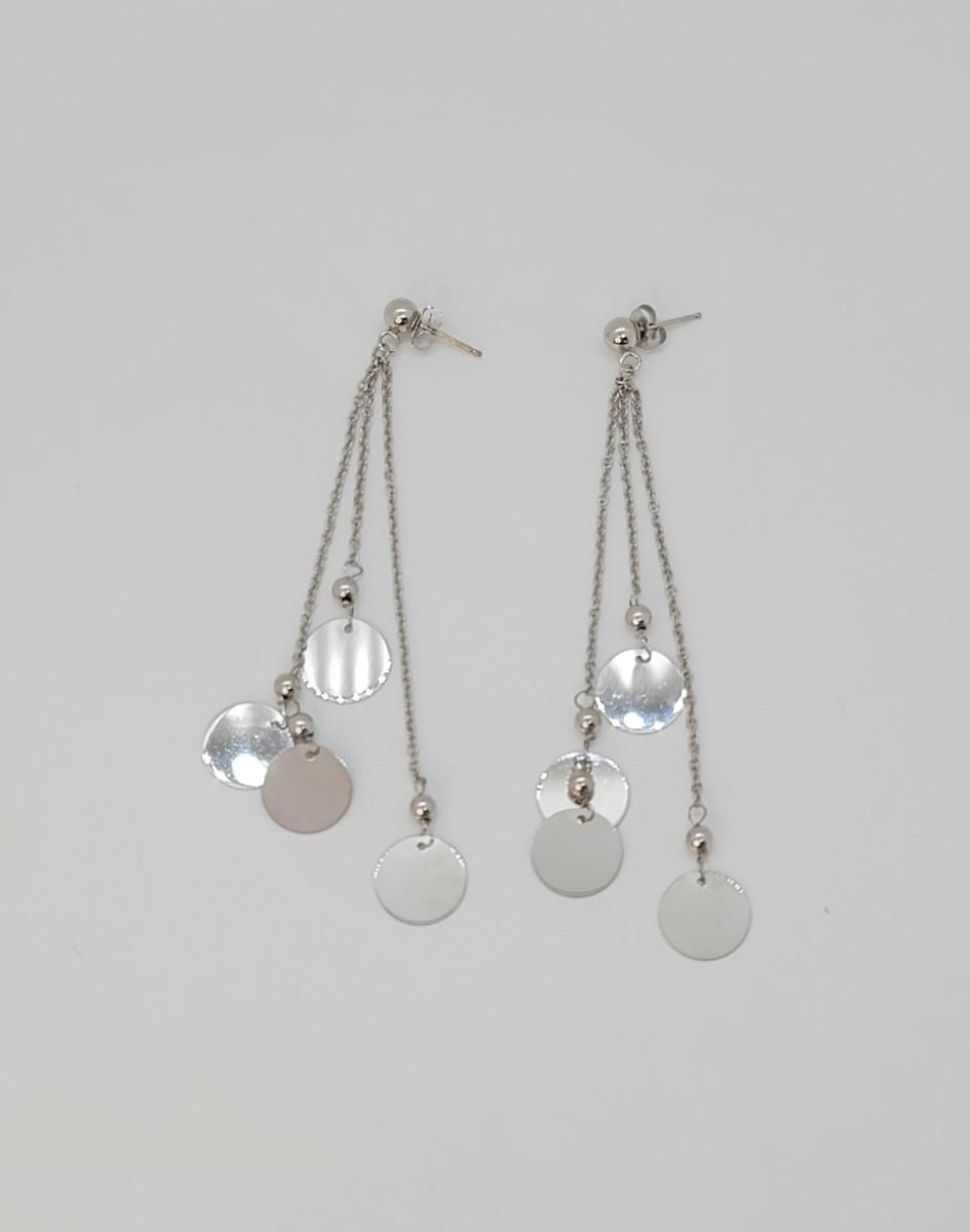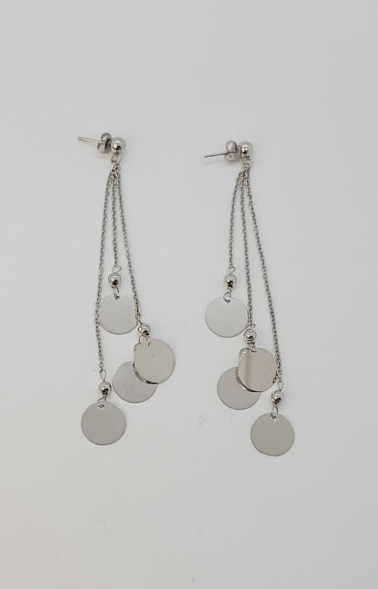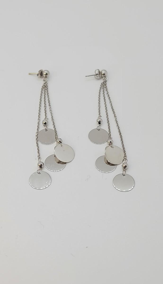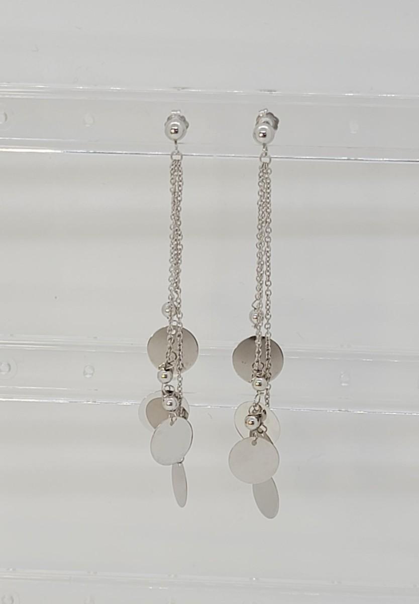 145: 2.1g 14k white gold pierced dangling disc earrings