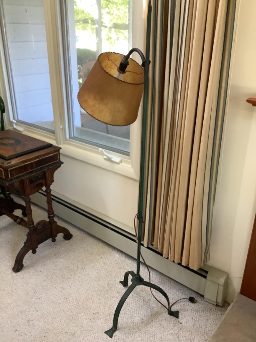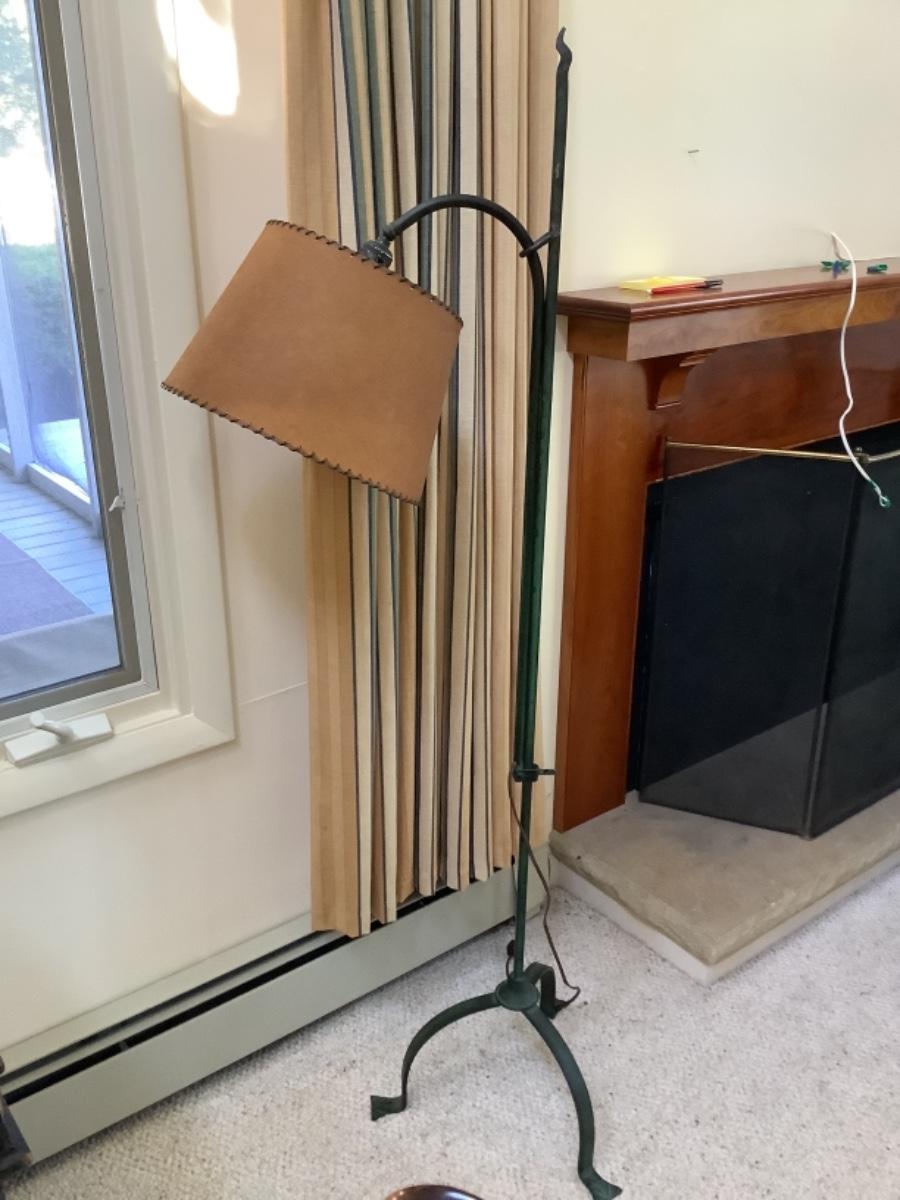 145 Antique Adjustable Floor Lamp with Hide Shade