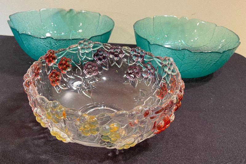 #145 Colorful Glass Serving Bowls (3) (2 green and 1