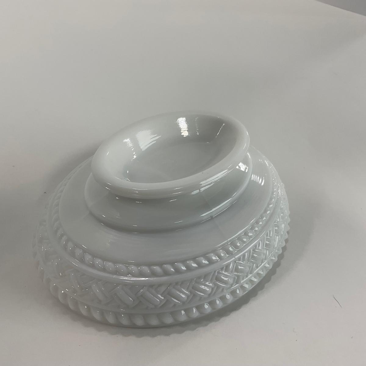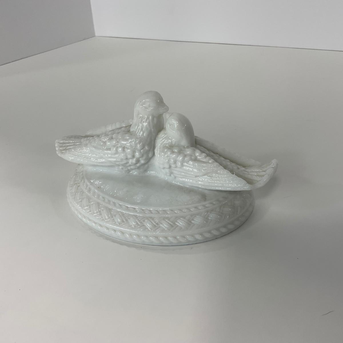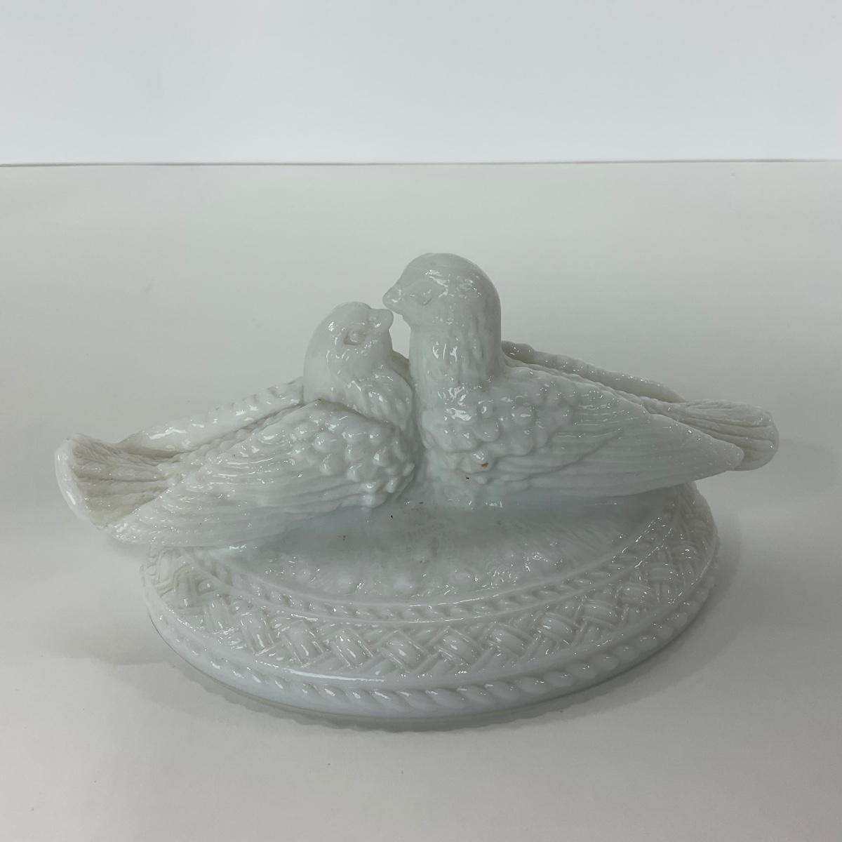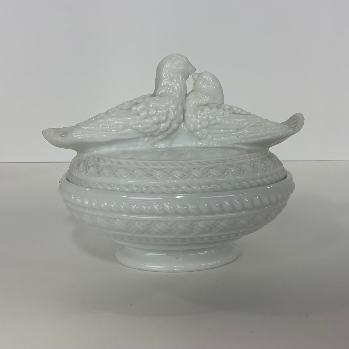 One two piece milk glass covered bird dish. To add your candies or trinkets too! Please see photos for details and condition. ::: Shipping is available on this lot. If you require shipping you must let us know at the close of the auction. We will coordinate with you after the item has been won. Shipping fees will include insurance up to or exceeding the value of all items being mailed. If you have any questions regarding this lot please contact the auctioneer either via this website, by direct email or by phone. PICK UP TIMES and other important information can be found in the TERMS and DESCRIPTION of the auction. Please take a look for pertinent information. Thanks!