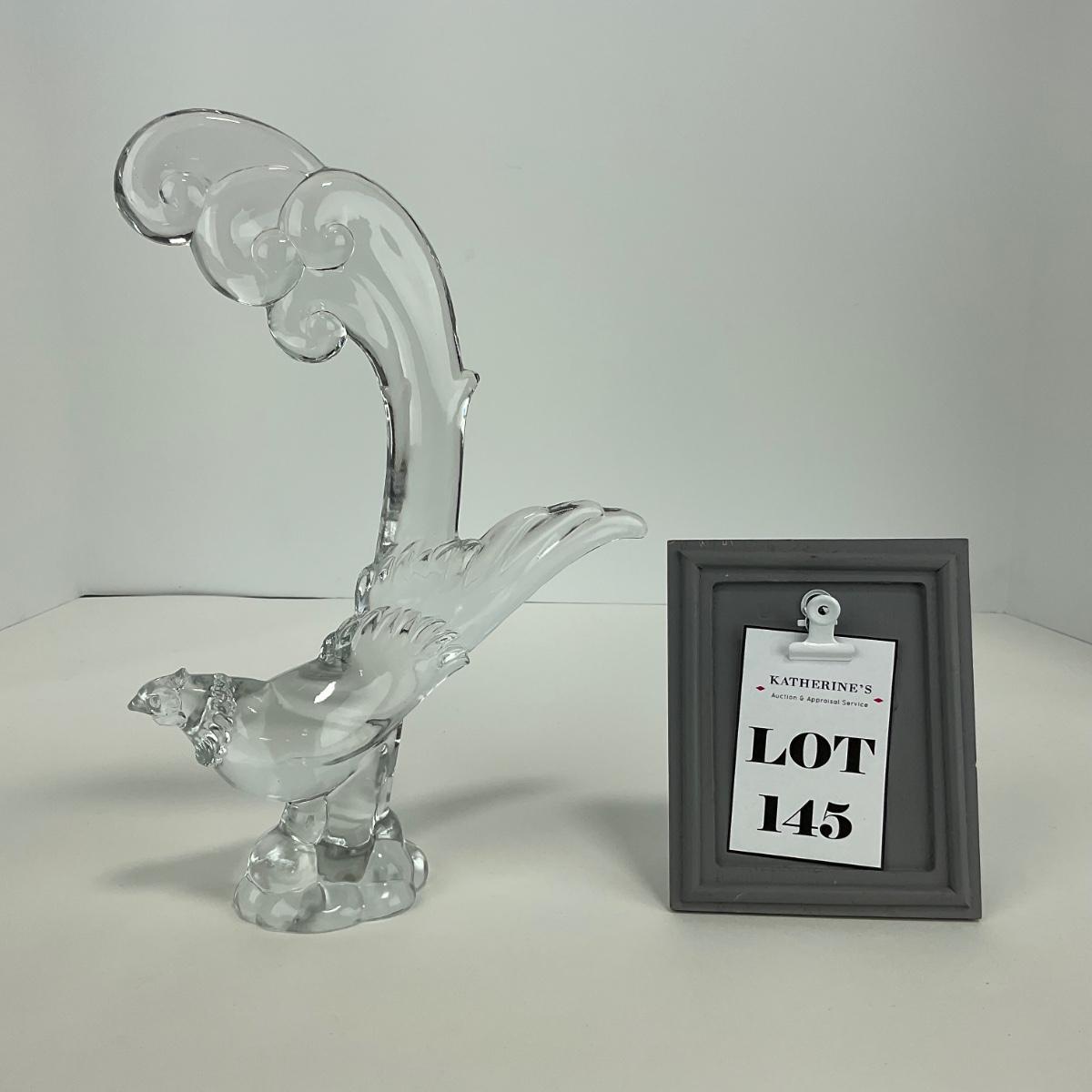 One clear glass Heisey Pheasant figure. This piece does have some scuffs, scratches, marks, or slight damage, but otherwise appears to be in great shape. Please see photos for details and condition. Any condition statement is given as a courtesy to a client, is an opinion, and should not be treated as a statement of fact. Reference to condition written, oral or within a condition report shall not be regarded as a full account of condition and may not include all defects, alterations, or restorations. Absence of a condition report does not imply a lot is flawless or lacking imperfections or damage. Katherine’s Auction & Appraisal Service shall have no responsibility for any error or omission. Returns shall not be accepted on the basis of condition. ::: Shipping is available on this lot. If you require shipping you must let us know at the close of the auction. We will coordinate with you after the item has been won. Shipping fees will include insurance up to or exceeding the value of all items being mailed. If you have any questions regarding this lot please contact the auctioneer either via this website, by direct email or by phone. PICK UP TIMES and other important information can be found in the TERMS and DESCRIPTION of the auction. Please take a look for pertinent information. Thanks!