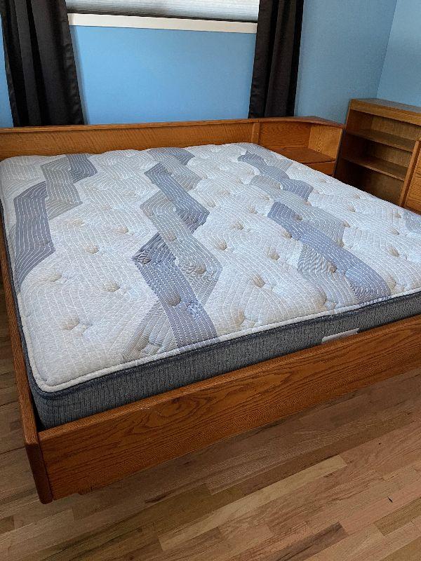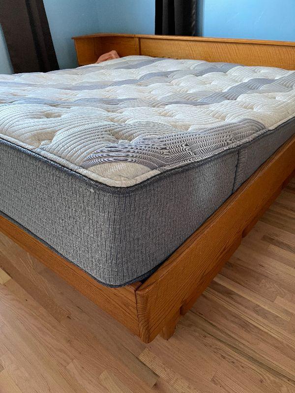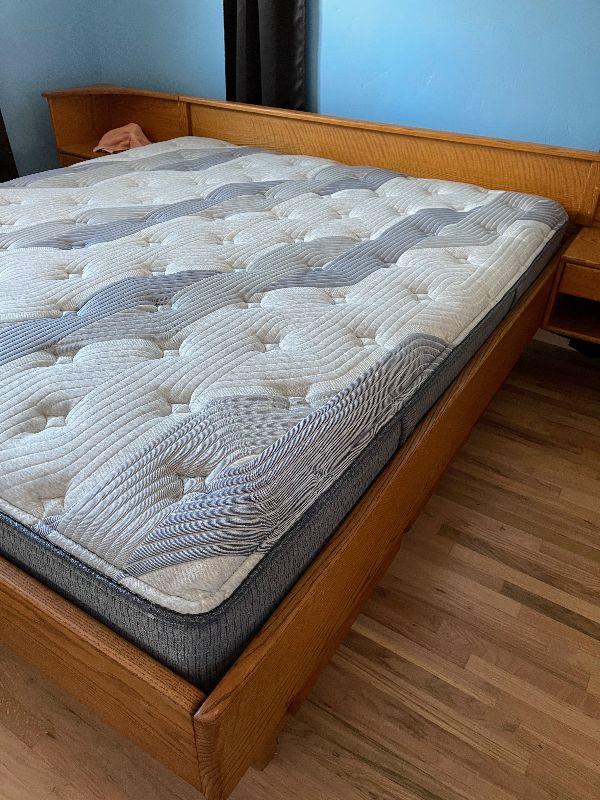 Mattress only, like new clean, wrapped in plastic. Mattress is heavy you will need at least 2 strong people to move and load it, it is not rolled, although you could fold and use ratchet straps. . It is clean and came from a smoke free home, it does not smell.