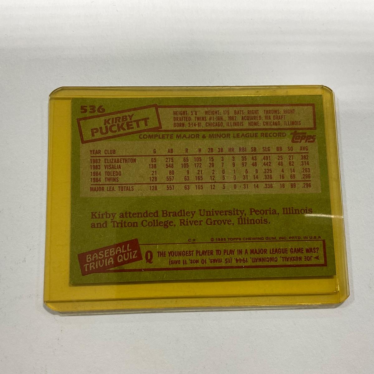 One Kirby Puckett Twins #536 card. Please see photos for details and condition. ::: Shipping is available on this lot. If you require shipping you must let us know at the close of the auction. We will coordinate with you after the item has been won. Shipping fees will include insurance up to or exceeding the value of all items being mailed. If you have any questions regarding this lot please contact the auctioneer either via this website, by direct email or by phone. PICK UP TIMES and other important information can be found in the TERMS and DESCRIPTION of the auction. Please take a look for pertinent information. Thanks!