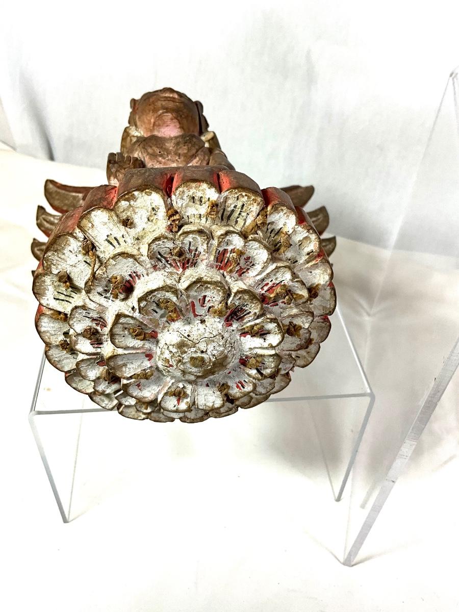 Measuring 7.5" wide x 7.5" high One wing has a seperation crack in the wood