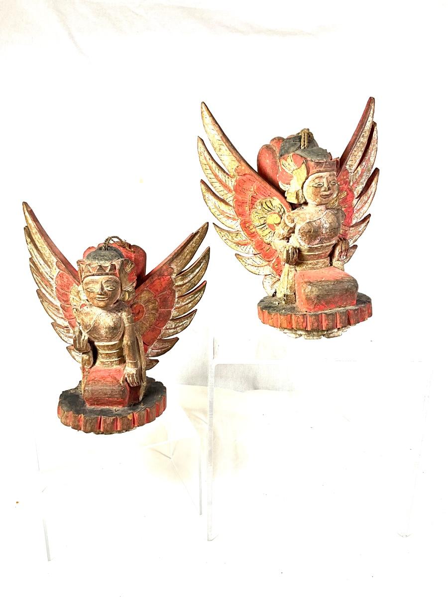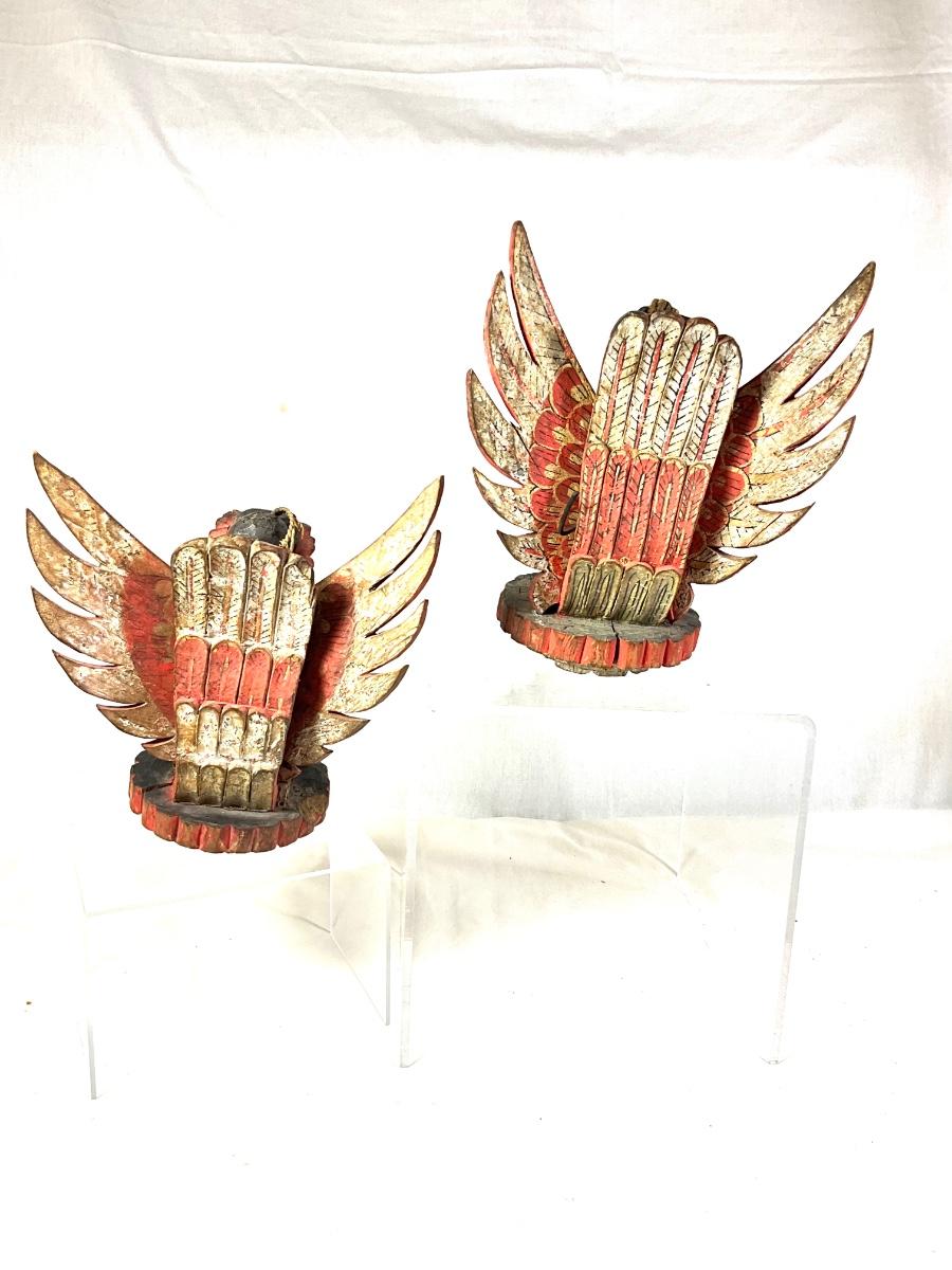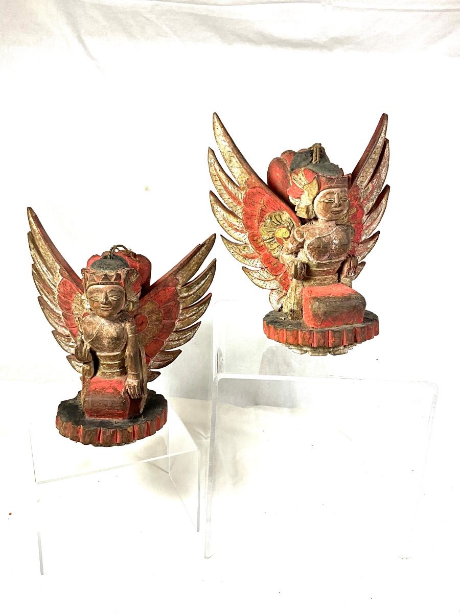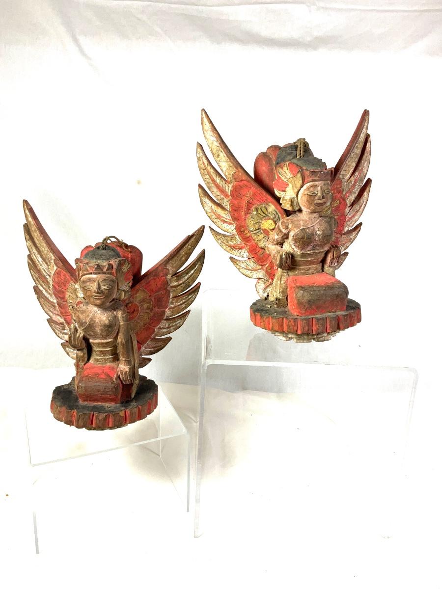 1450 Pair of Antique Wooden Carved Balinese Decorative Hangings