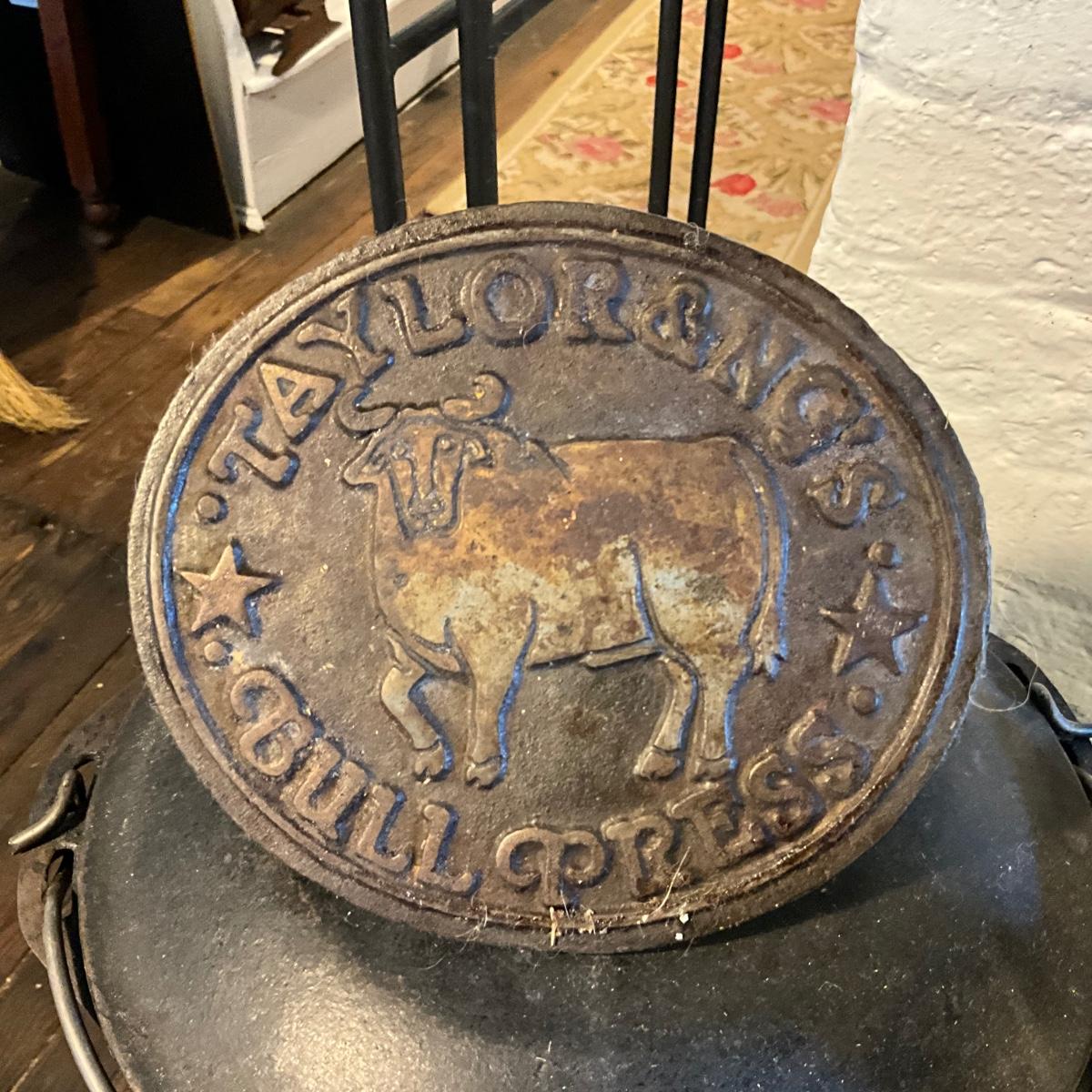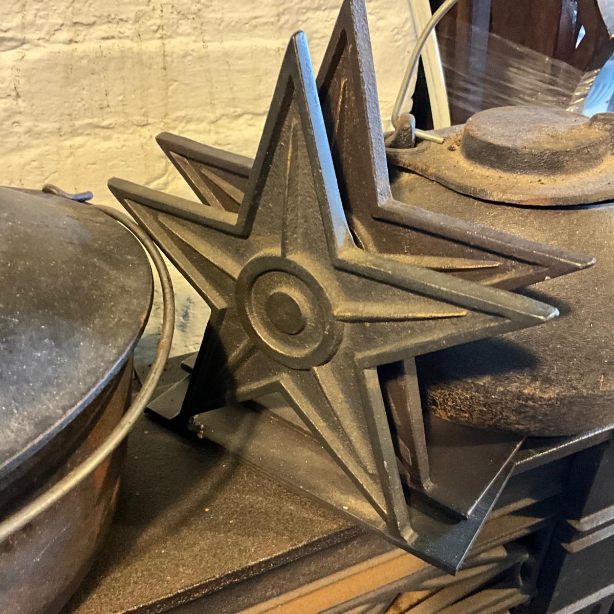 Cast iron roaster #8 measuring 10" diameter, Taylor Bull Press, Star bookends