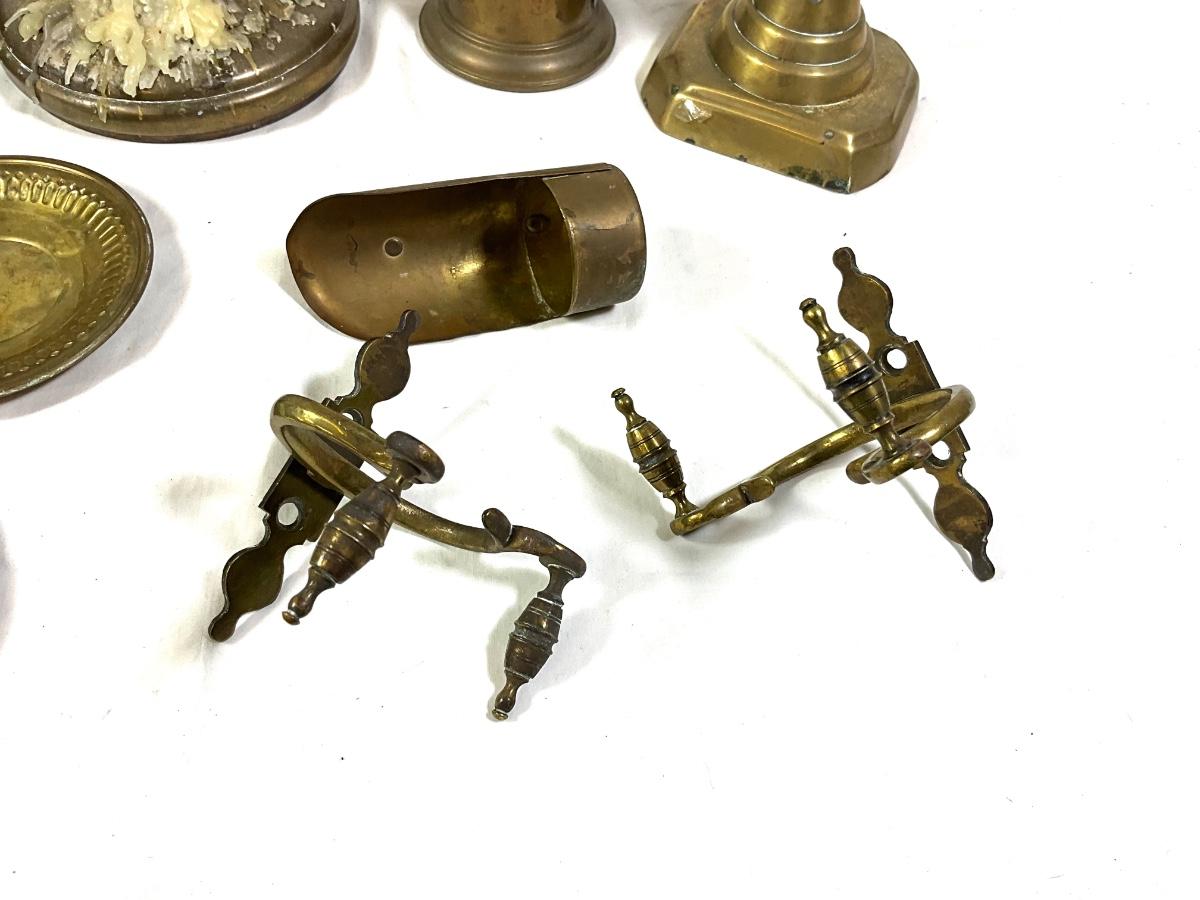 1451 Lot of Vintage Brass Candlesticks , French Pigeon Lamp and more