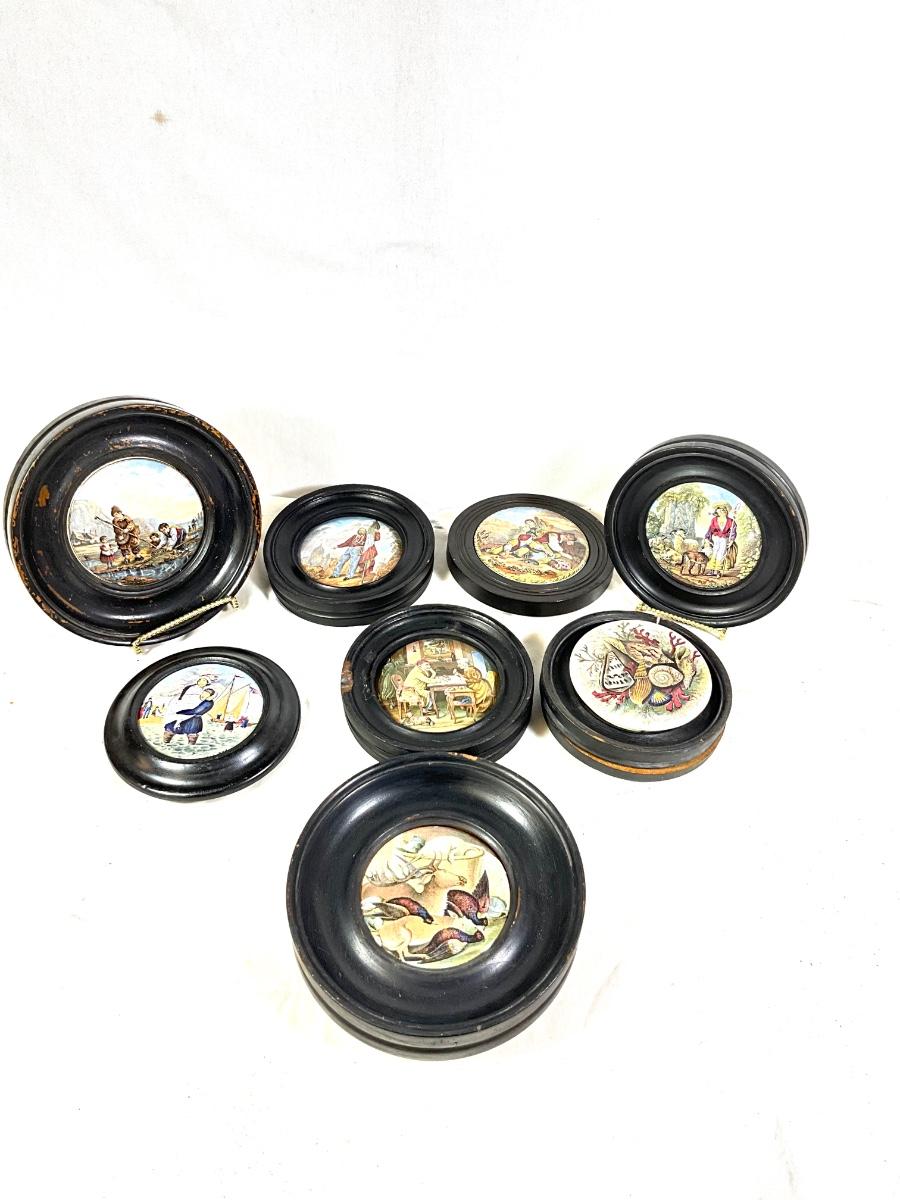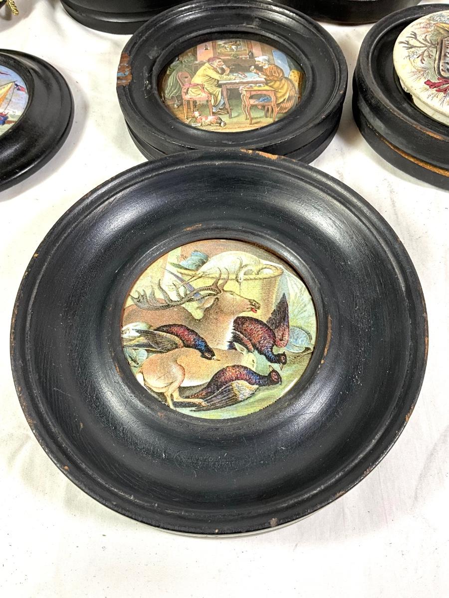 1452 Set of 8 Antique Victorian Prattware Framed Pot Lids