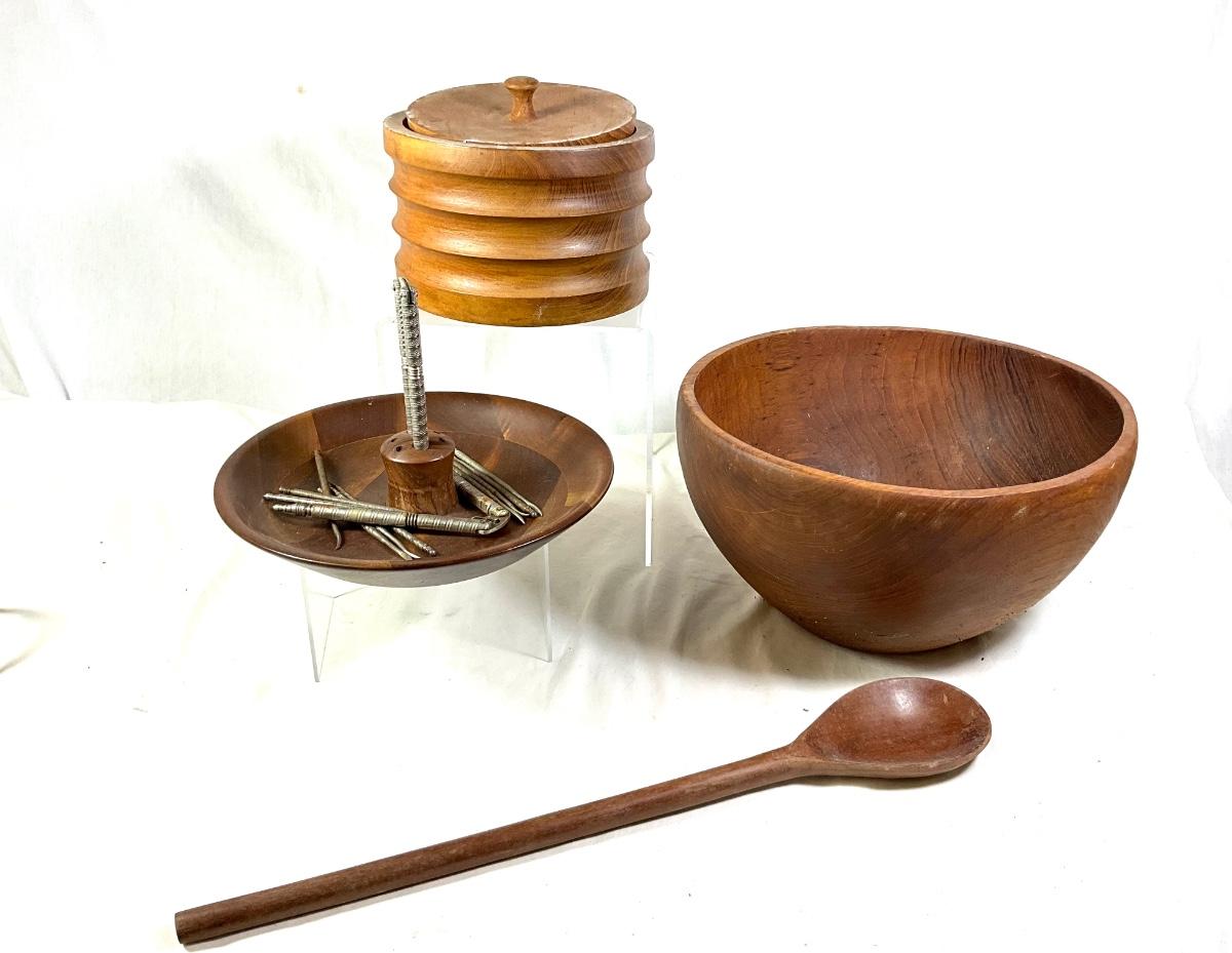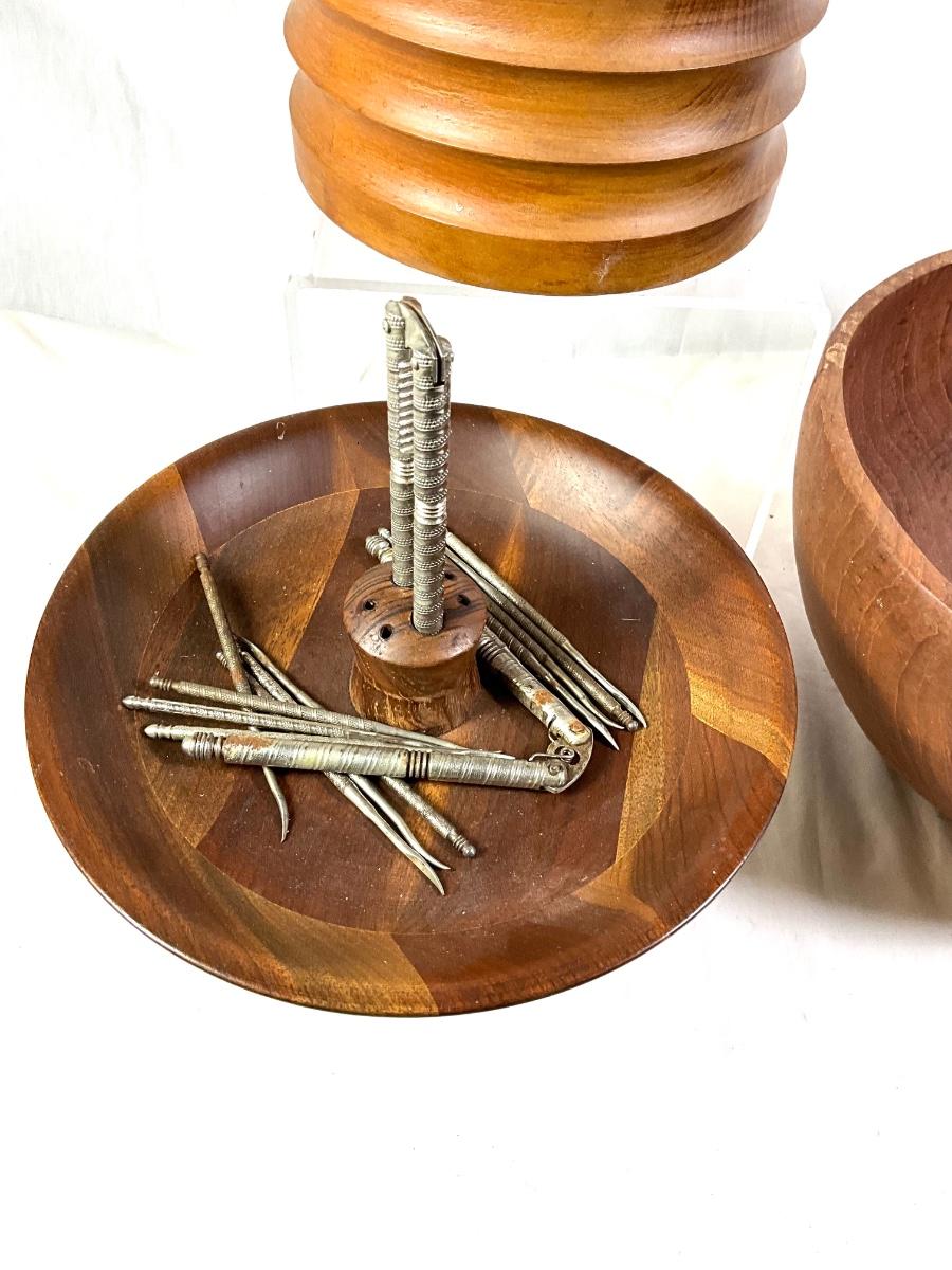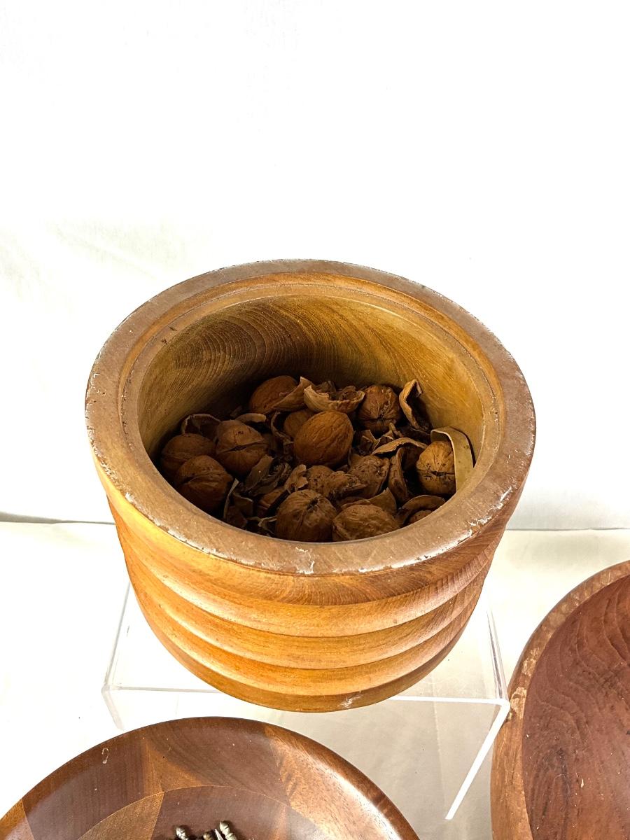 1454 Teak Wooden Bowl with Mid Century Wooden Nut Bowls