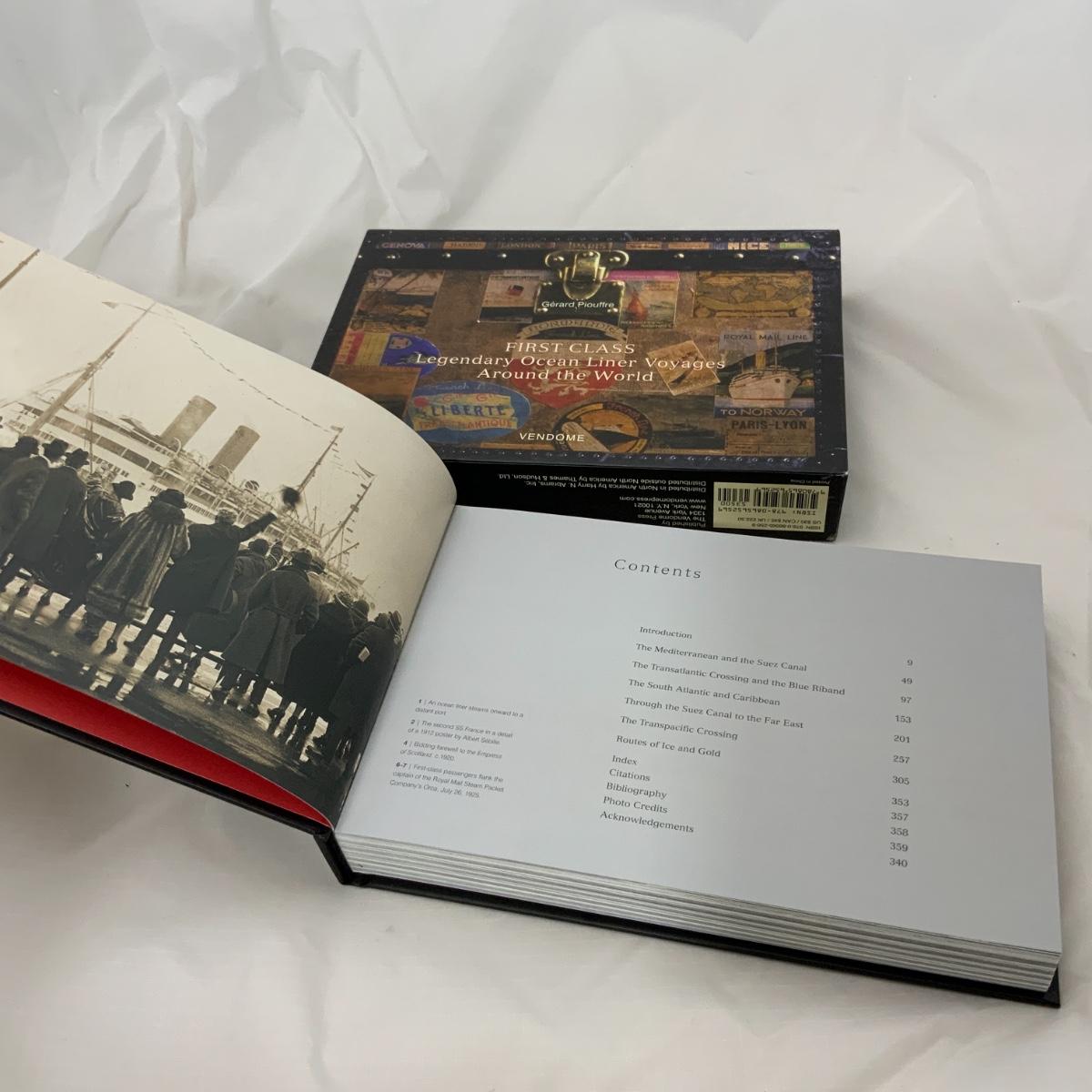 From the Estate of Peter Radovanovich: Ornate Book with display sleeve. Book is titled First Class; Legendary Ocean Liner Voyages Around the World. It features beautiful photos of Ocean Liners and stories accompany them. Please see photos for details and condition. ::: Shipping is available on this lot. If you require shipping you must let us know at the close of the auction. We will coordinate with you after the item has been won. Shipping fees will include insurance up to or exceeding the value of all items being mailed. If you have any questions regarding this lot please contact the auctioneer either via this website, by direct email or by phone. PICK UP TIMES and other important information can be found in the TERMS and DESCRIPTION of the auction. Please take a look for pertinent information. Thanks!