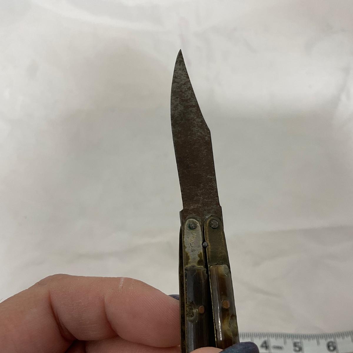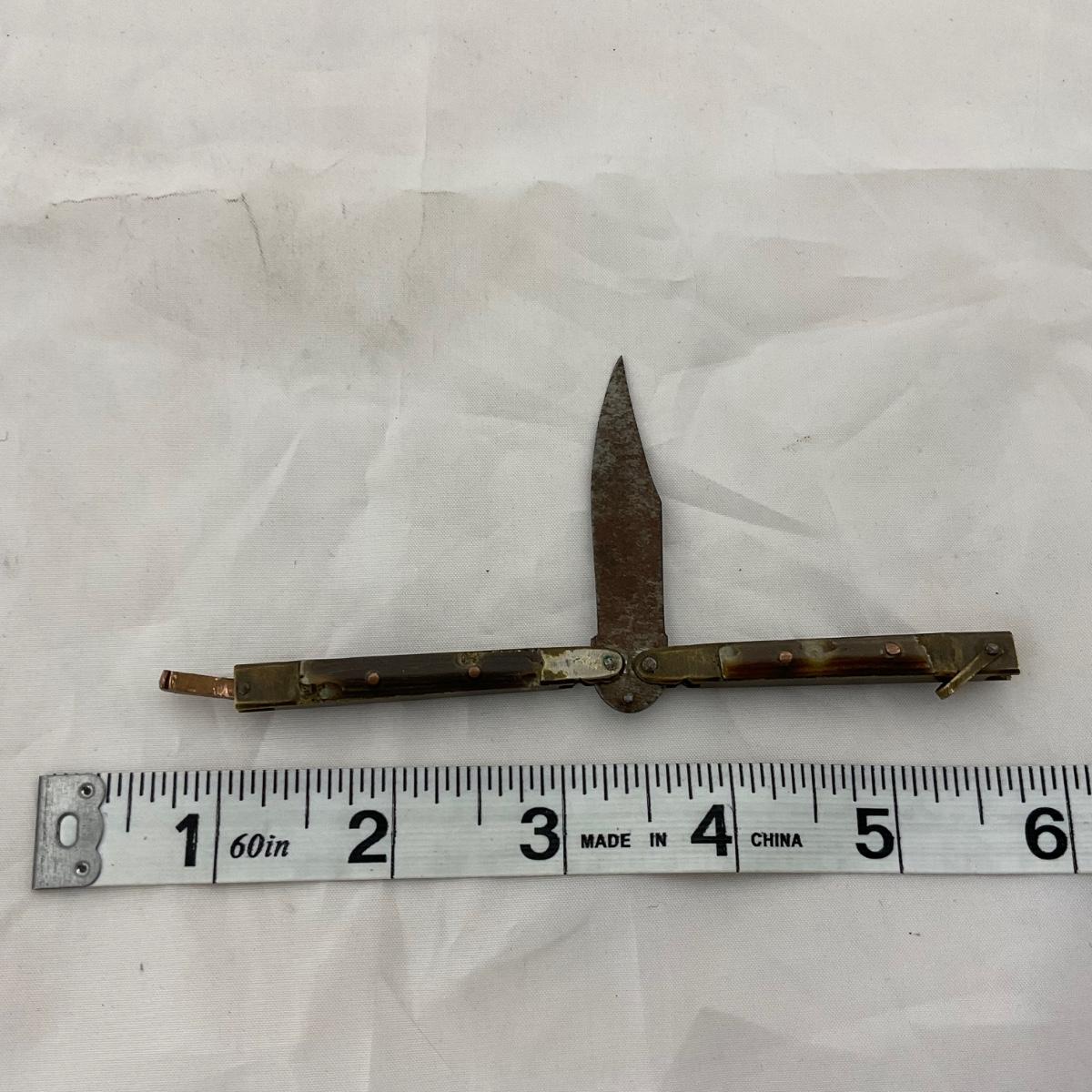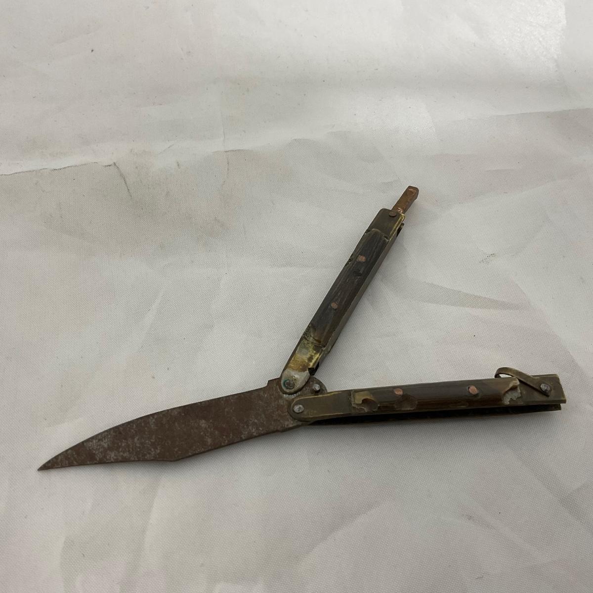 One small size World War II paratrooper knife, has some damage. Please see photos for details and condition. ::: Shipping is available on this lot. If you require shipping you must let us know at the close of the auction. We will coordinate with you after the item has been won. Shipping fees will include insurance up to or exceeding the value of all items being mailed. If you have any questions regarding this lot please contact the auctioneer either via this website, by direct email or by phone. PICK UP TIMES and other important information can be found in the TERMS and DESCRIPTION of the auction. Please take a look for pertinent information. Thanks!