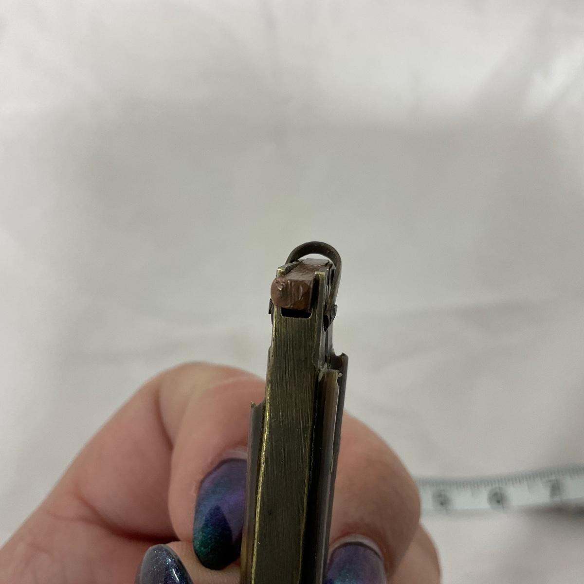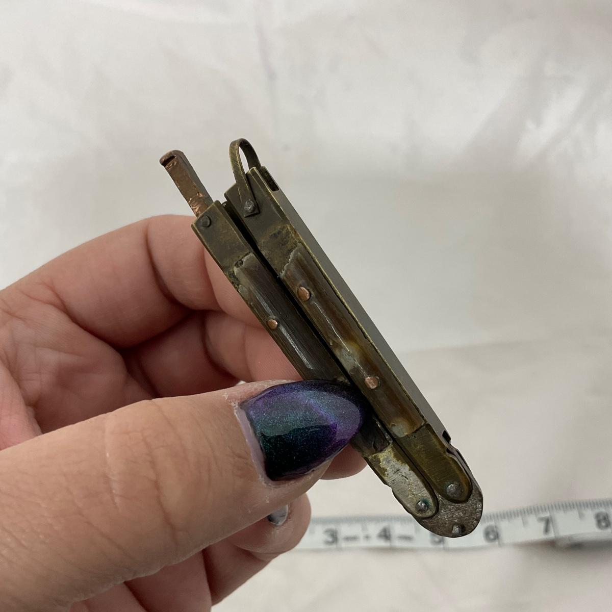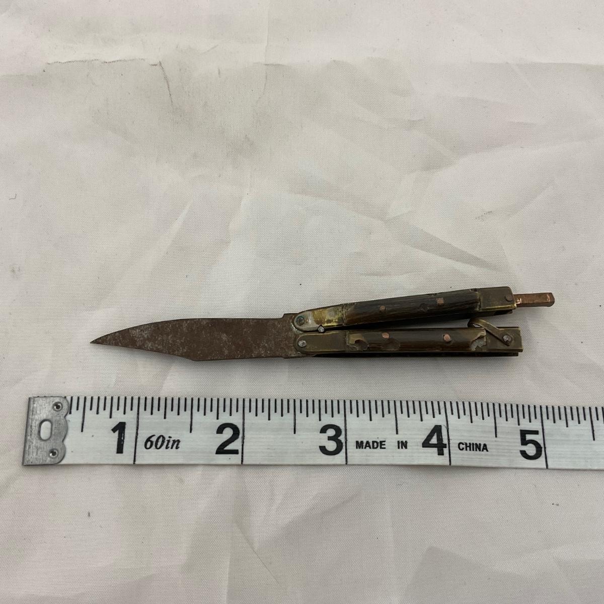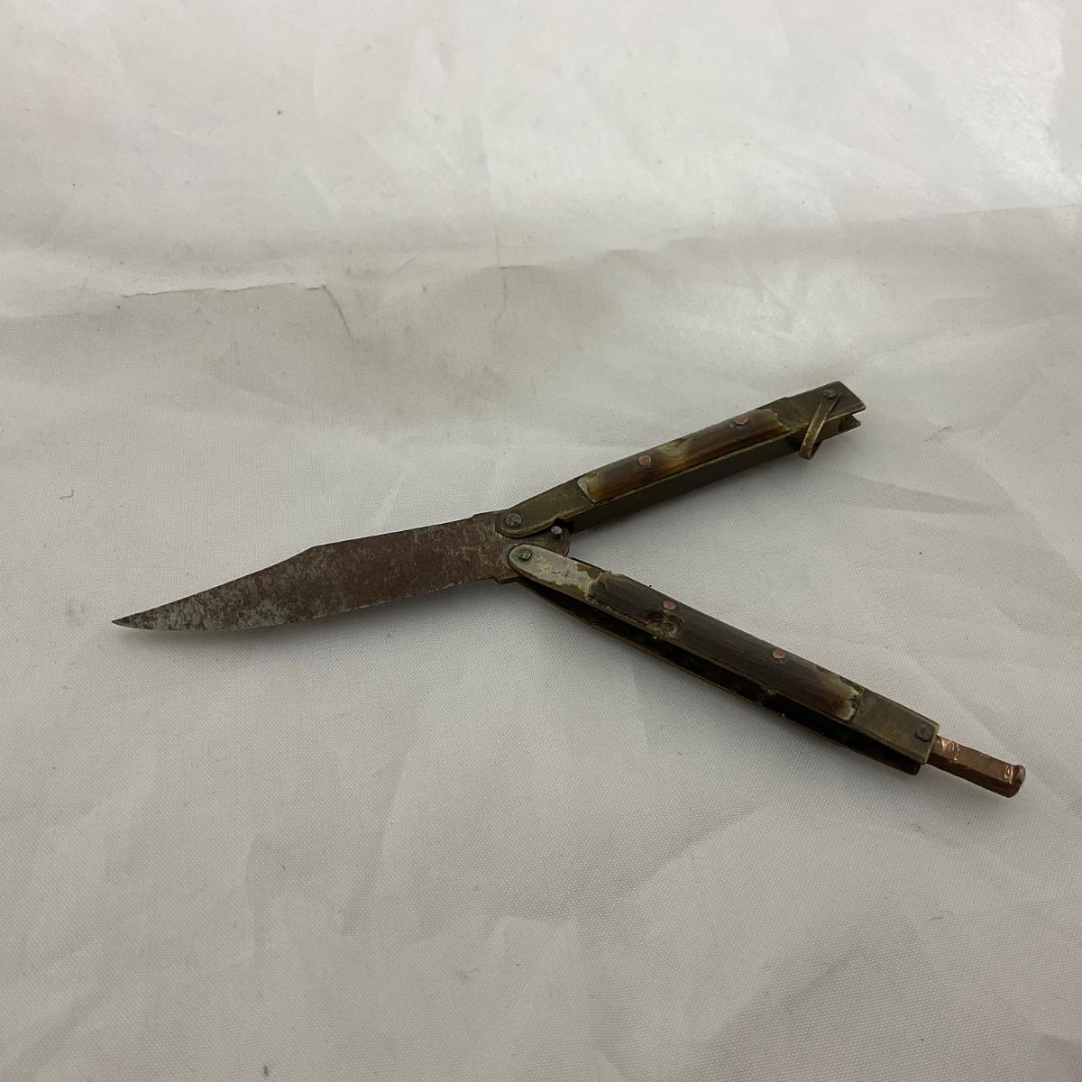 One small size World War II paratrooper knife, has some damage. Please see photos for details and condition. ::: Shipping is available on this lot. If you require shipping you must let us know at the close of the auction. We will coordinate with you after the item has been won. Shipping fees will include insurance up to or exceeding the value of all items being mailed. If you have any questions regarding this lot please contact the auctioneer either via this website, by direct email or by phone. PICK UP TIMES and other important information can be found in the TERMS and DESCRIPTION of the auction. Please take a look for pertinent information. Thanks!