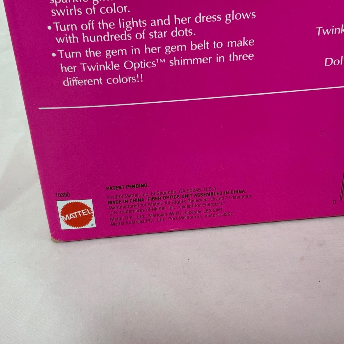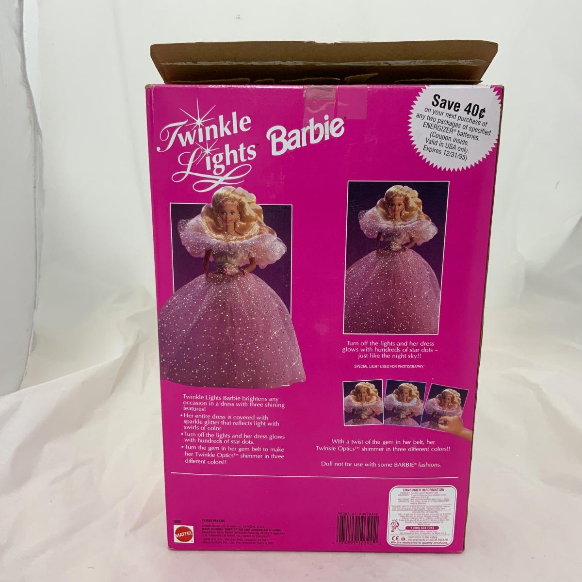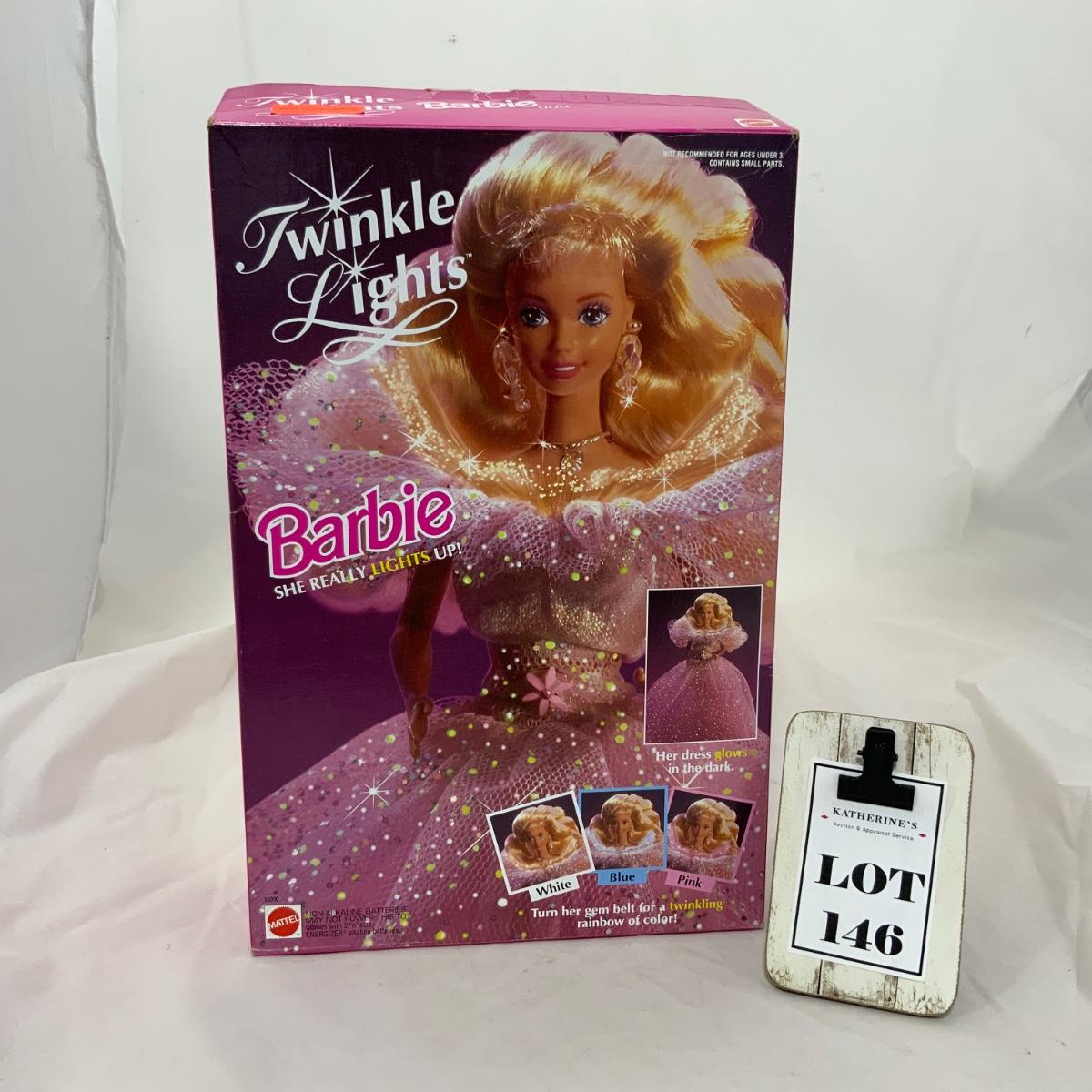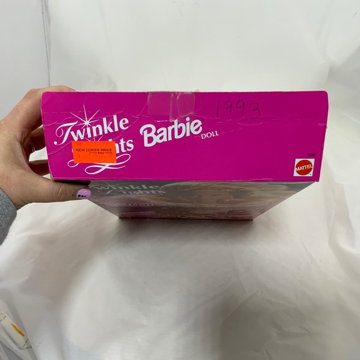 Twinkle Lights Barbie. She has clearly been opened, and her box is worn. She is also missing a shoe - but she has two hairbrushes! So life isn’t all that bad. Produced by Mattel in 1993. Untested. Please see photos for details and condition. !!! Proceeds from this auction will be donated to the NEW COMMUNITY SHELTER in Green Bay, Wisconsin. Please see Sale Description to the Left for more information. !!! ::: Shipping is available on this lot. If you require shipping you must let us know at the close of the auction. We will coordinate with you after the item has been won. Shipping fees will include insurance up to or exceeding the value of all items being mailed. If you have any questions regarding this lot please contact the auctioneer either via this website, by direct email or by phone. PICK UP TIMES and other important information can be found in the TERMS and DESCRIPTION of the auction. Please take a look for pertinent information. Thanks!
