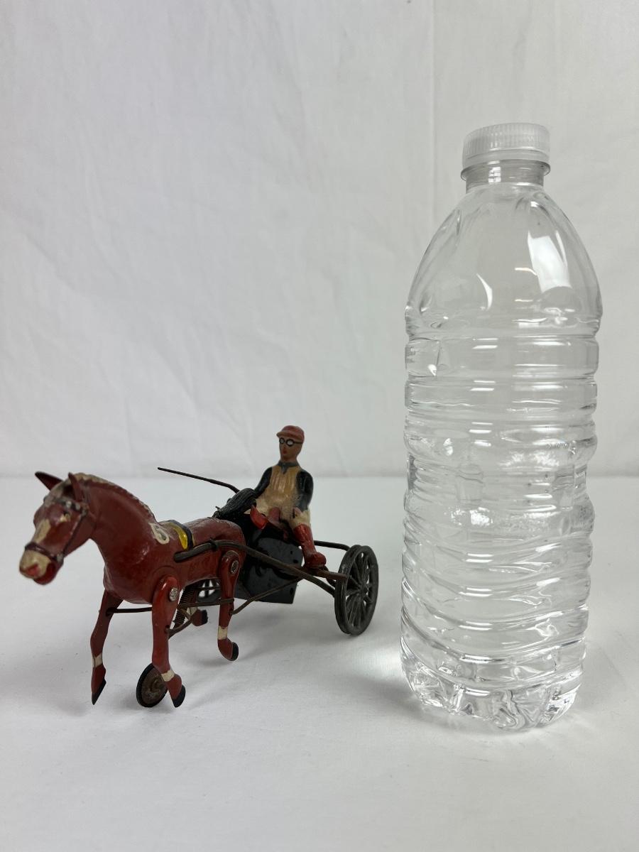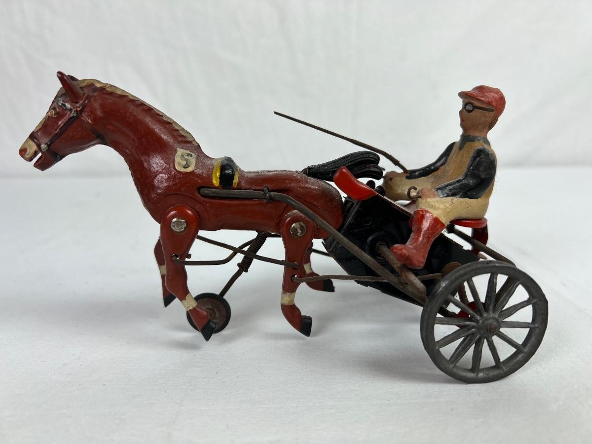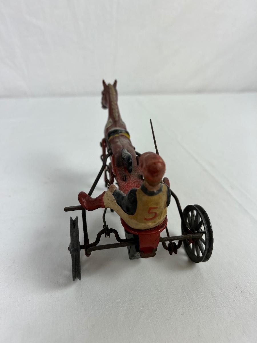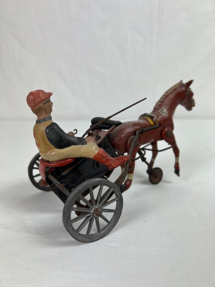 146 Vintage Tin Wind up Horse Drawn Sulky Racing Toy