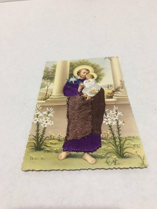 Silk Embroidered St. Joseph Spanish Christian Post Card